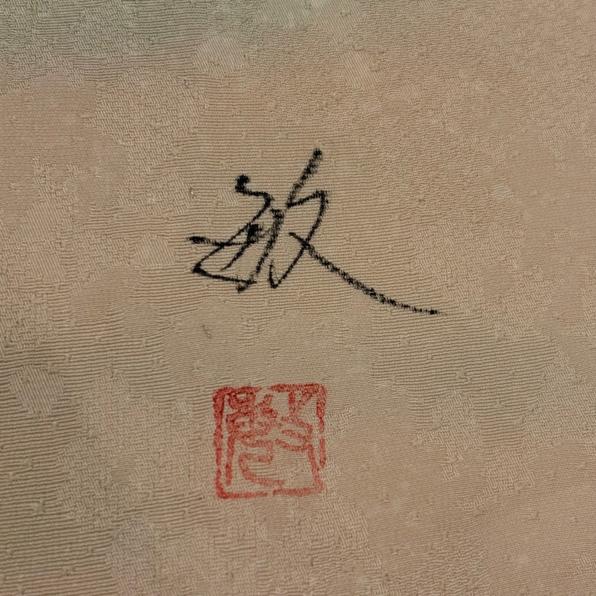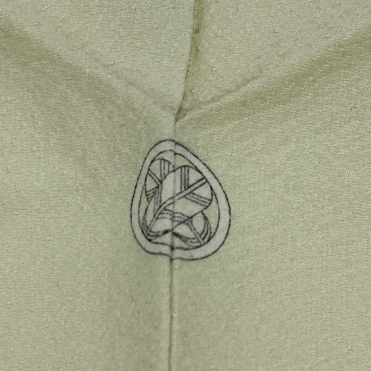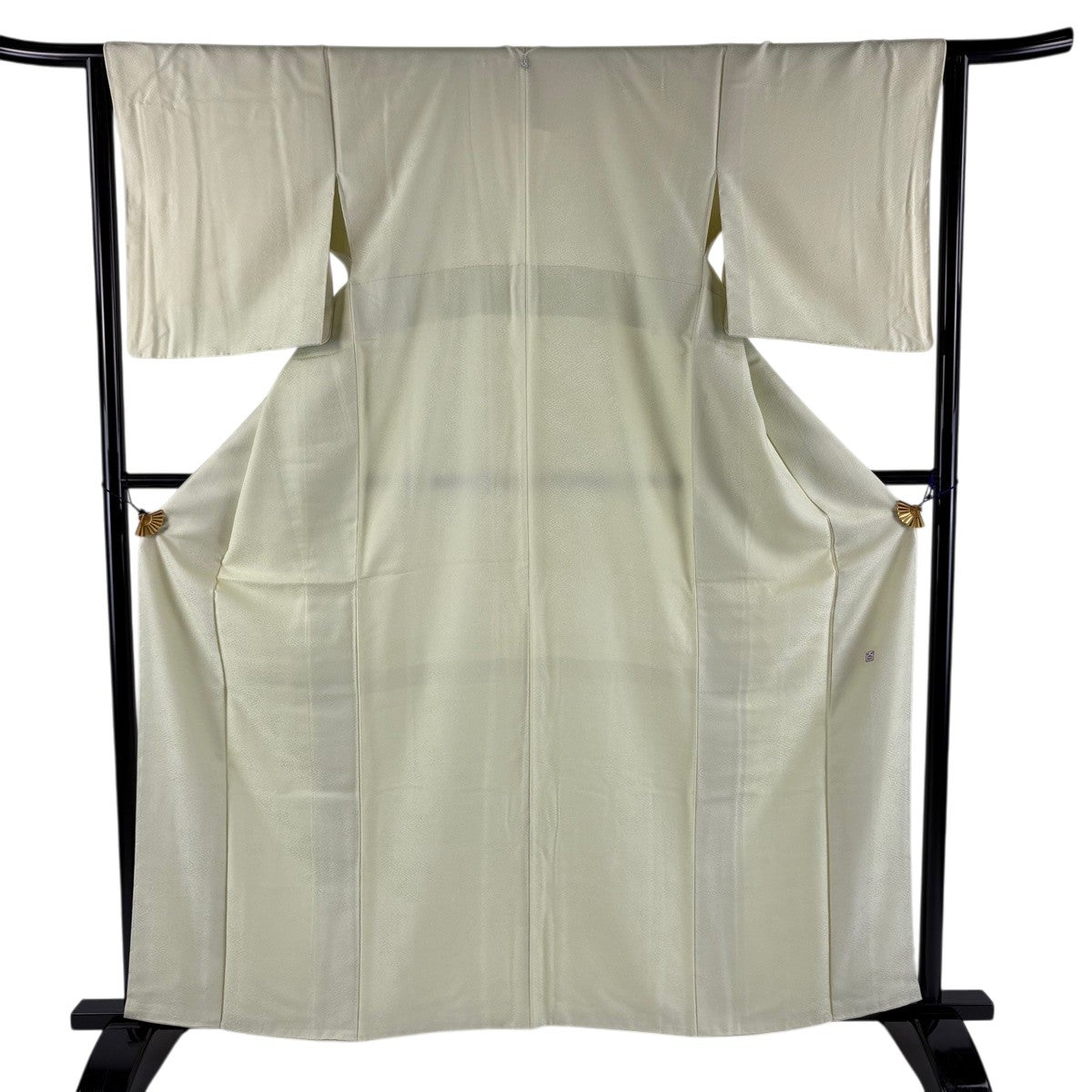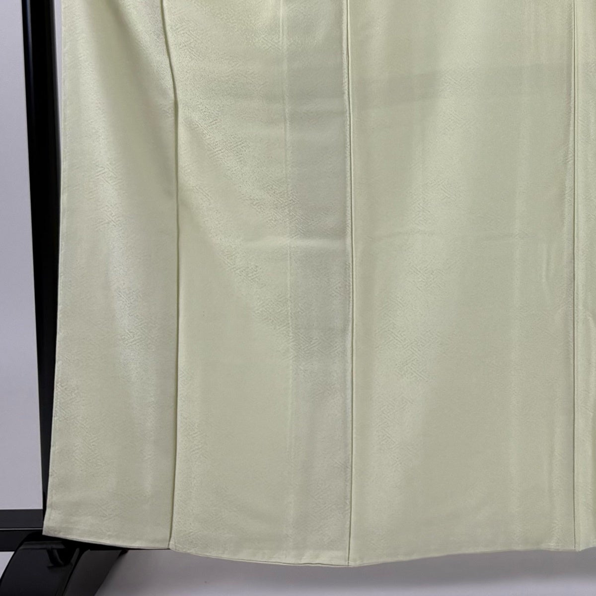色無地 身丈161cm 裄丈64cm M 袷 百貫 落款あり 地紋 黄緑色 正絹 秀品 一つ紋