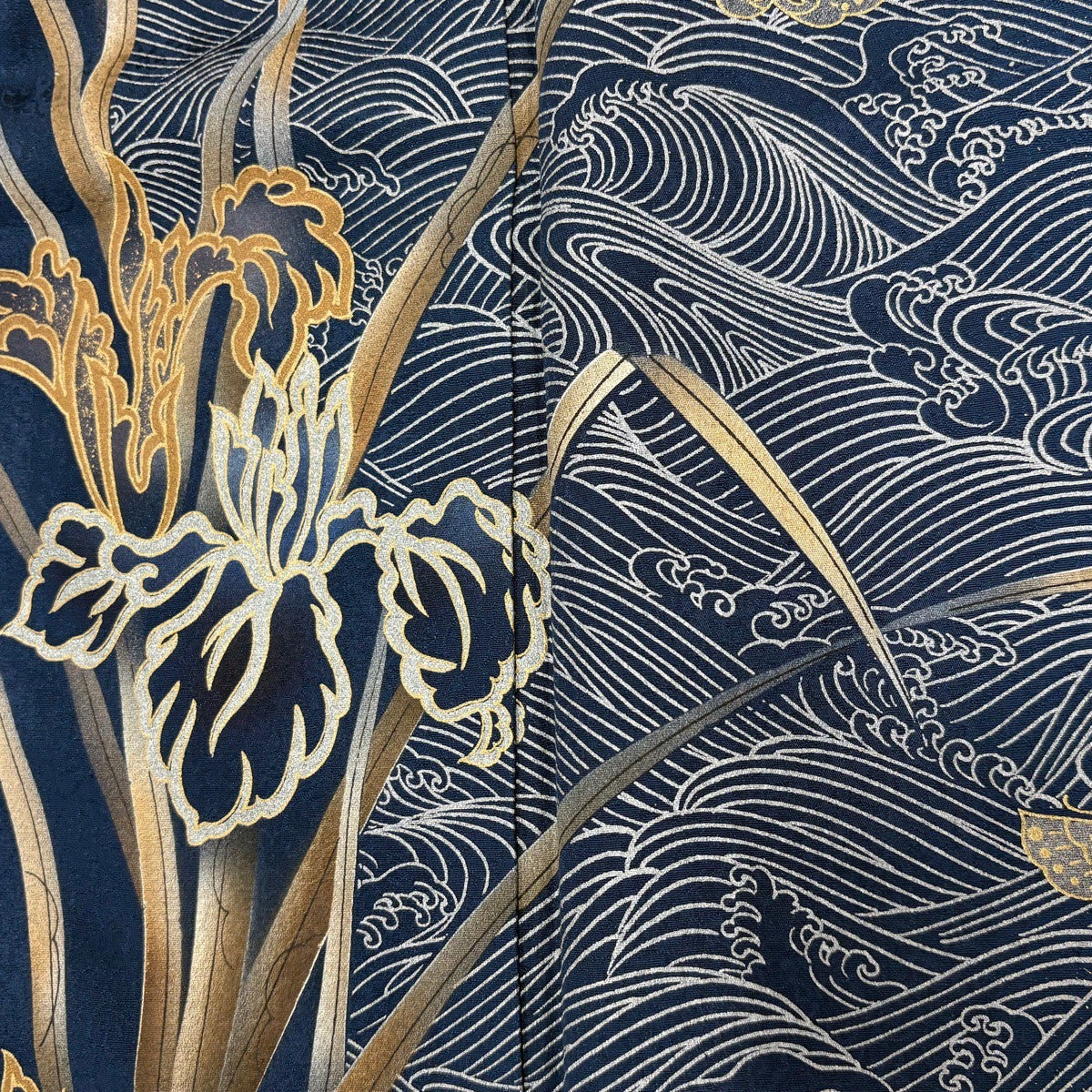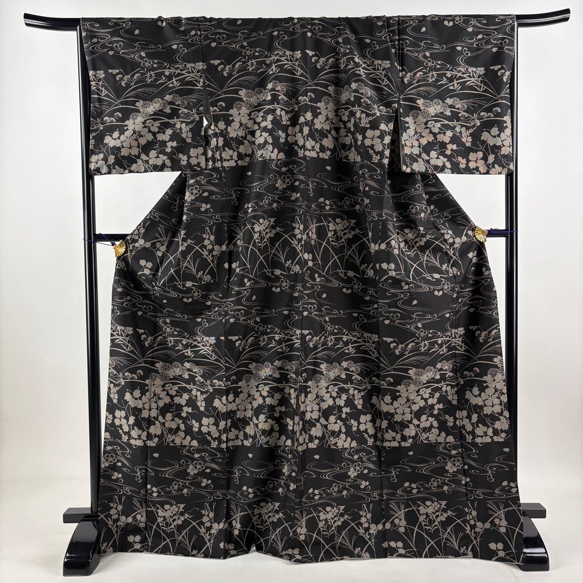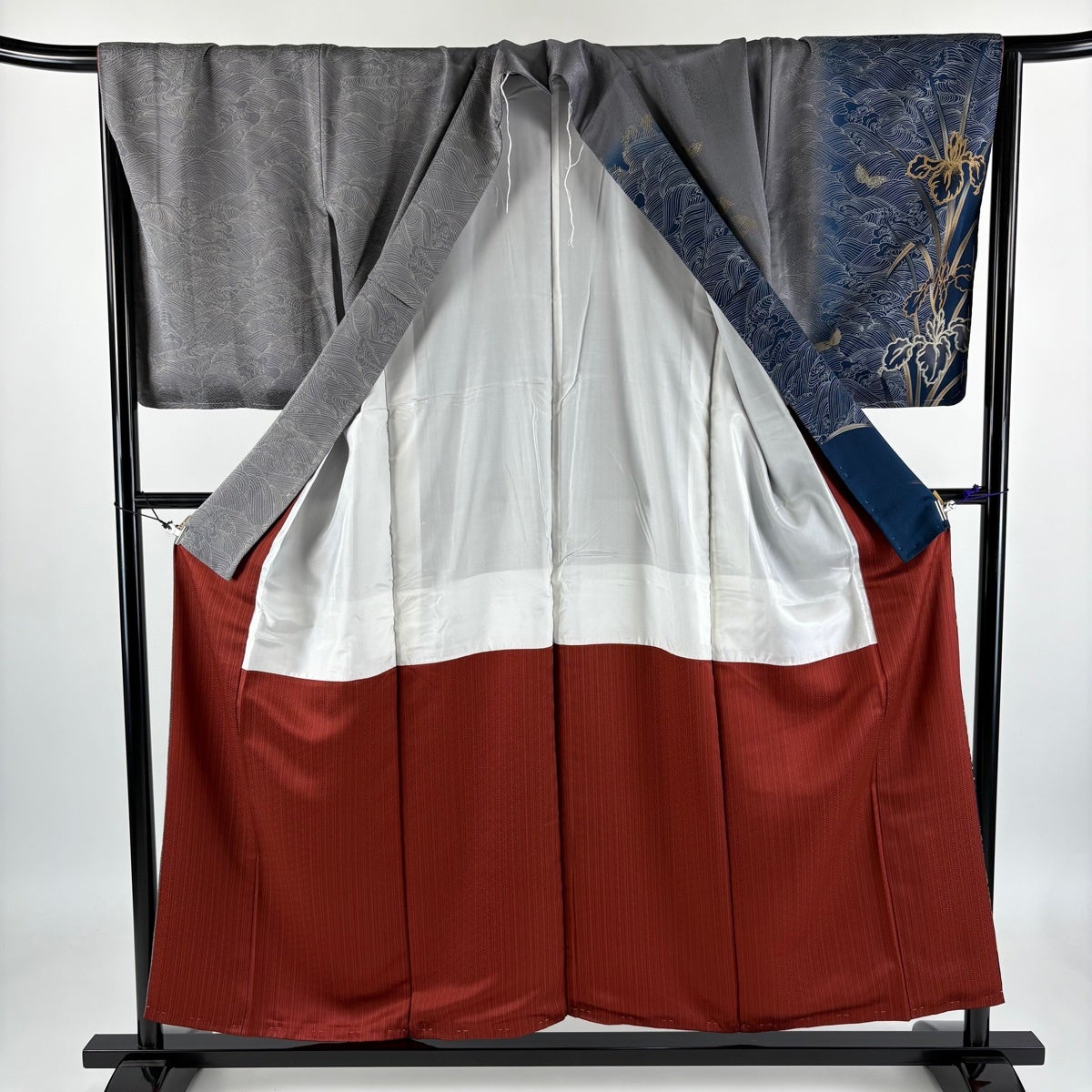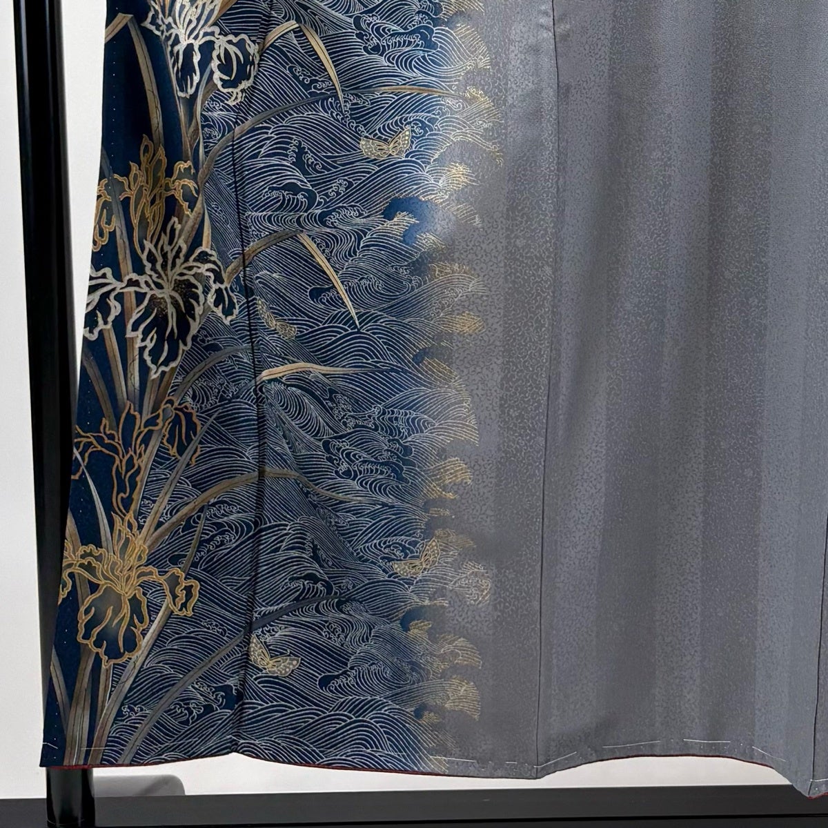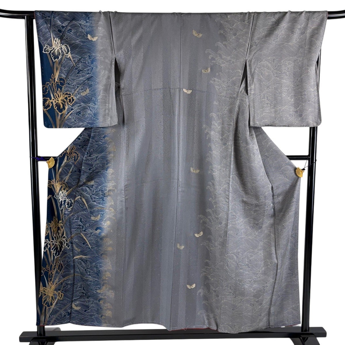 訪問着 身丈155.5cm 裄丈67cm M 袷 菖蒲 波 金彩 ぼかし 灰色 正絹 秀品
