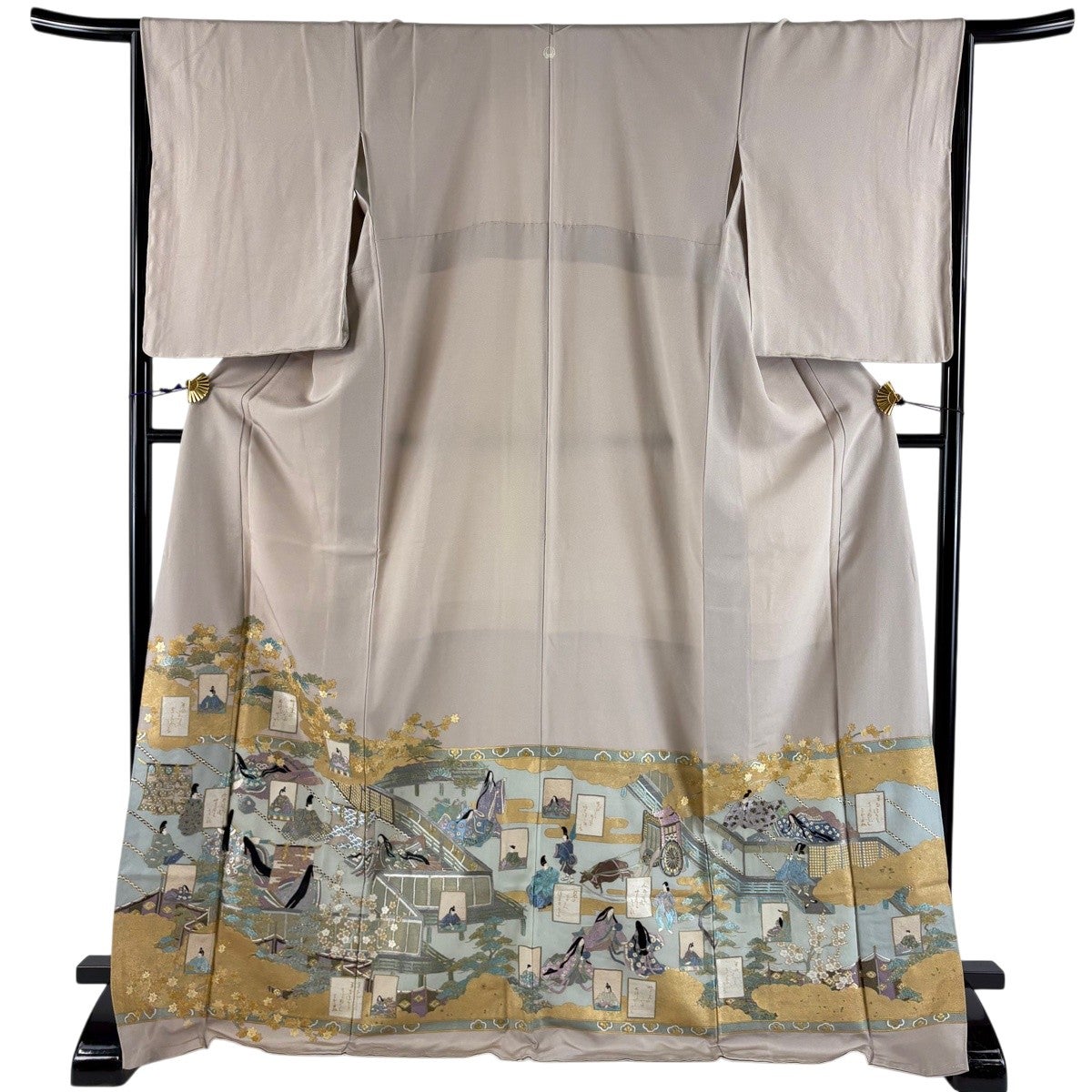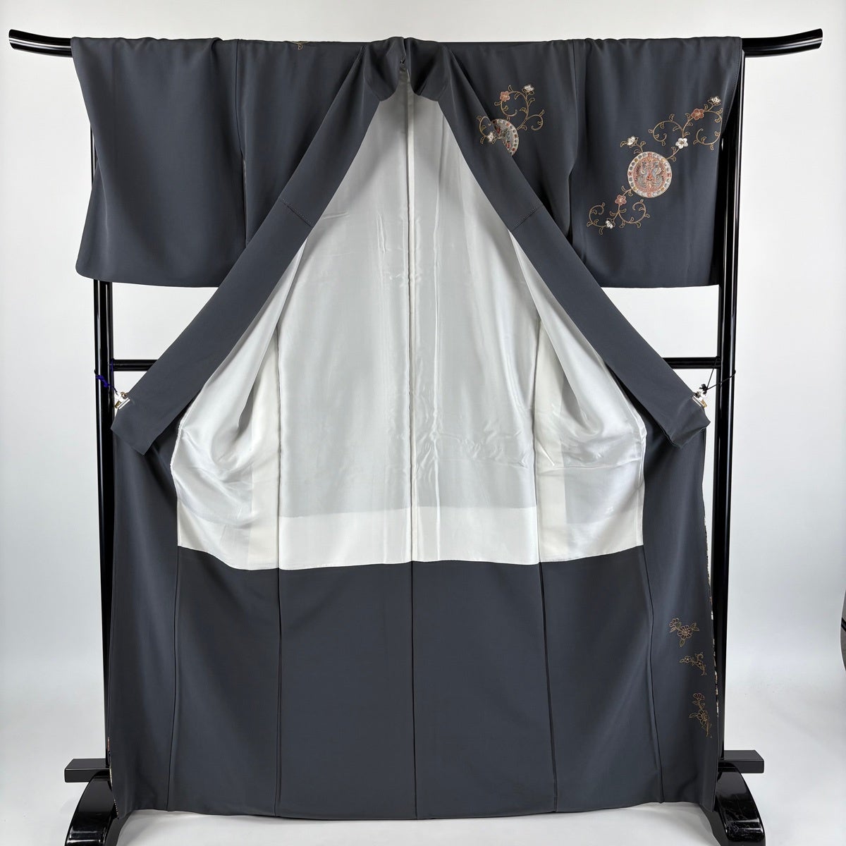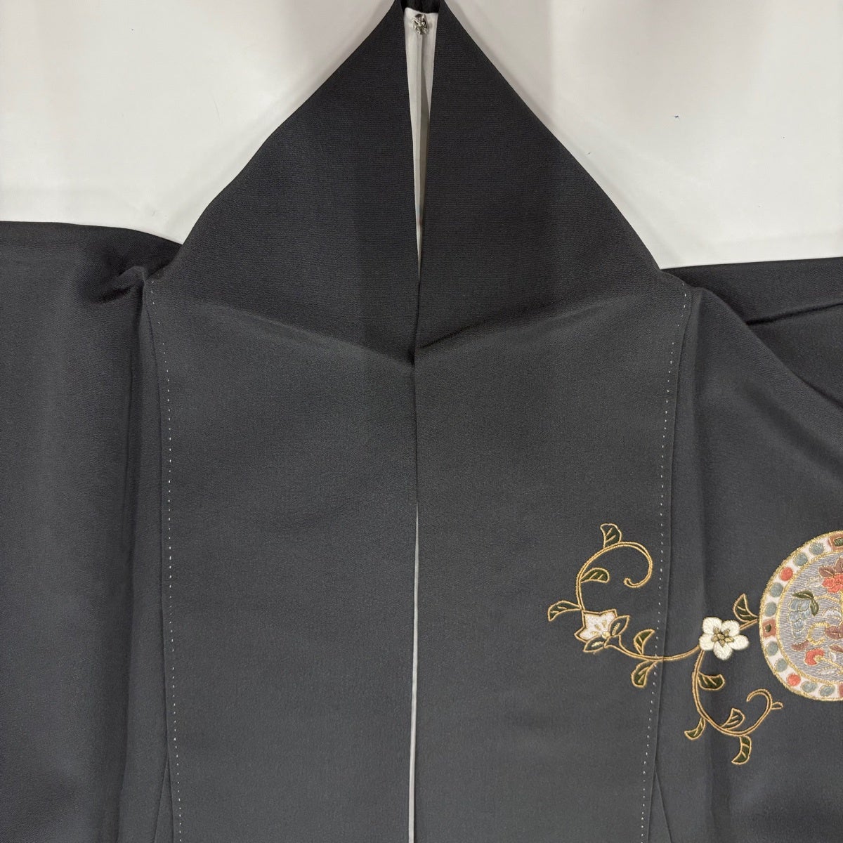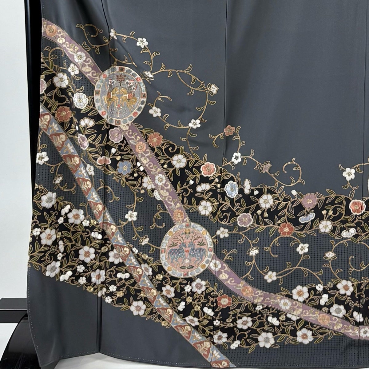 訪問着 身丈171cm 裄丈70cm L 袷 狩猟文 花唐草 刺繍 金糸 灰色 正絹 秀品
