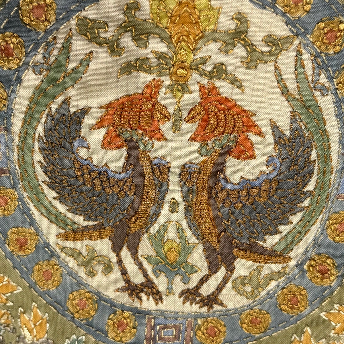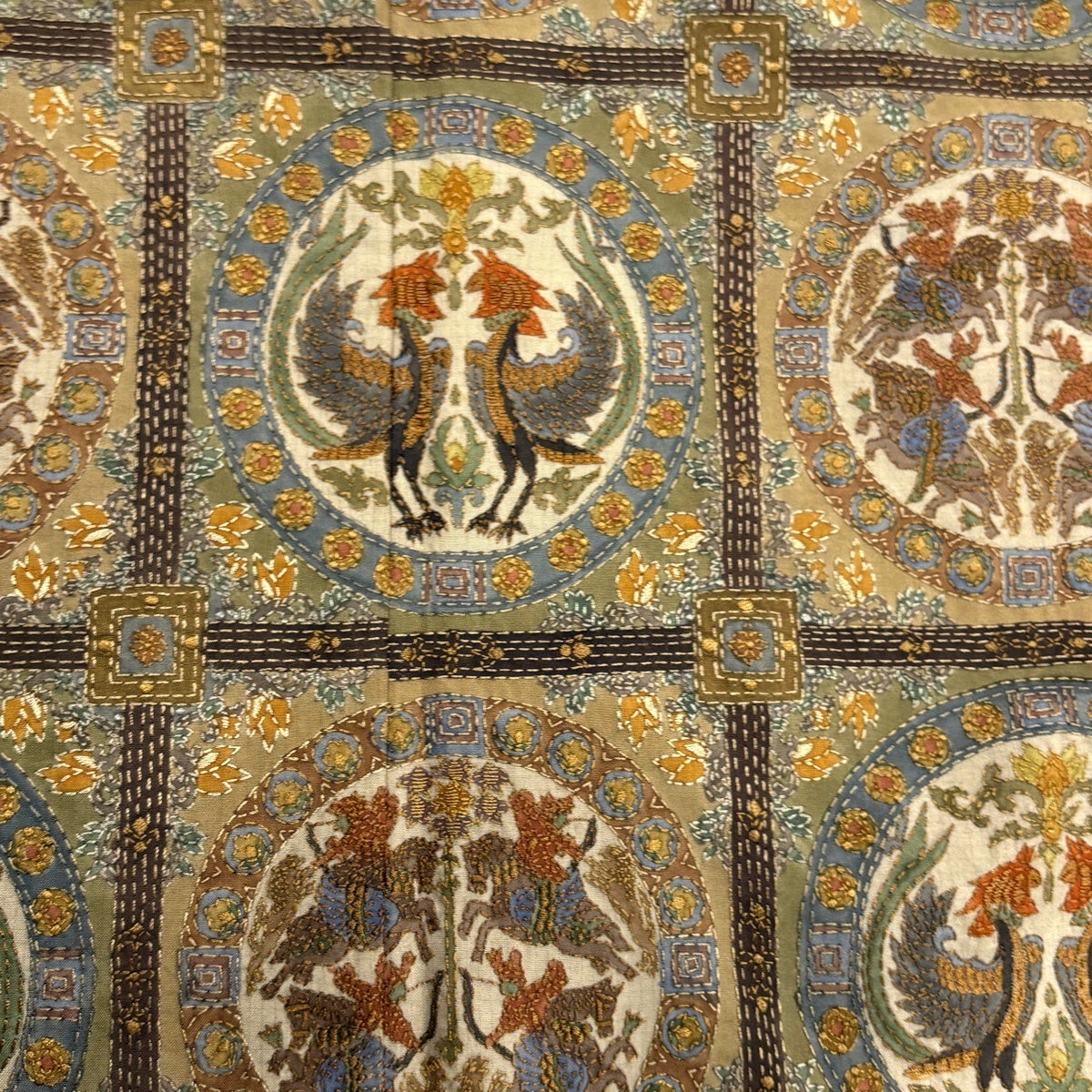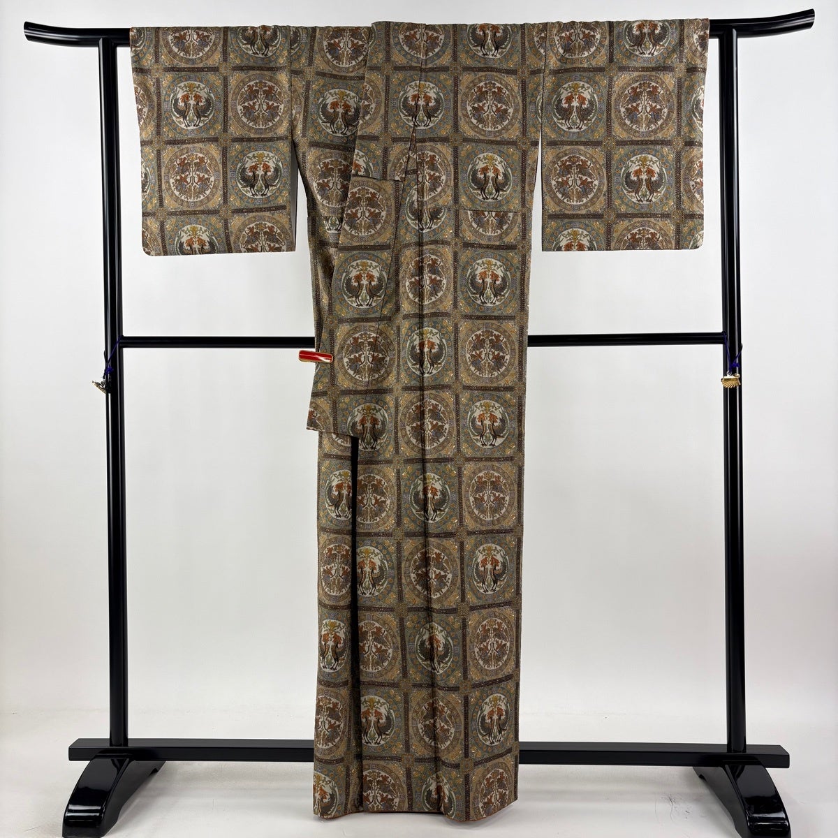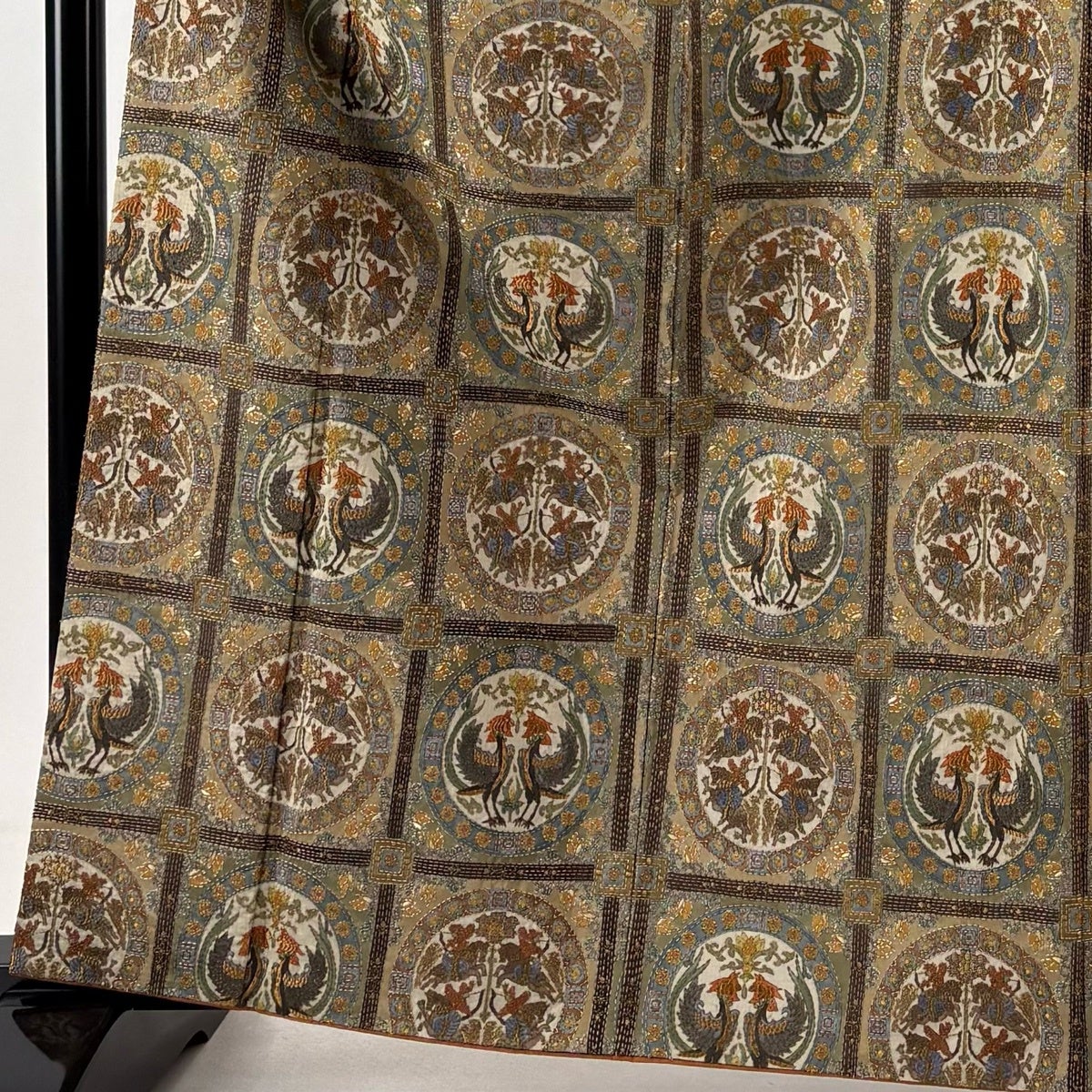 訪問着 身丈171cm 裄丈70cm L 袷 狩猟文 花唐草 刺繍 金糸 灰色 正絹 秀品