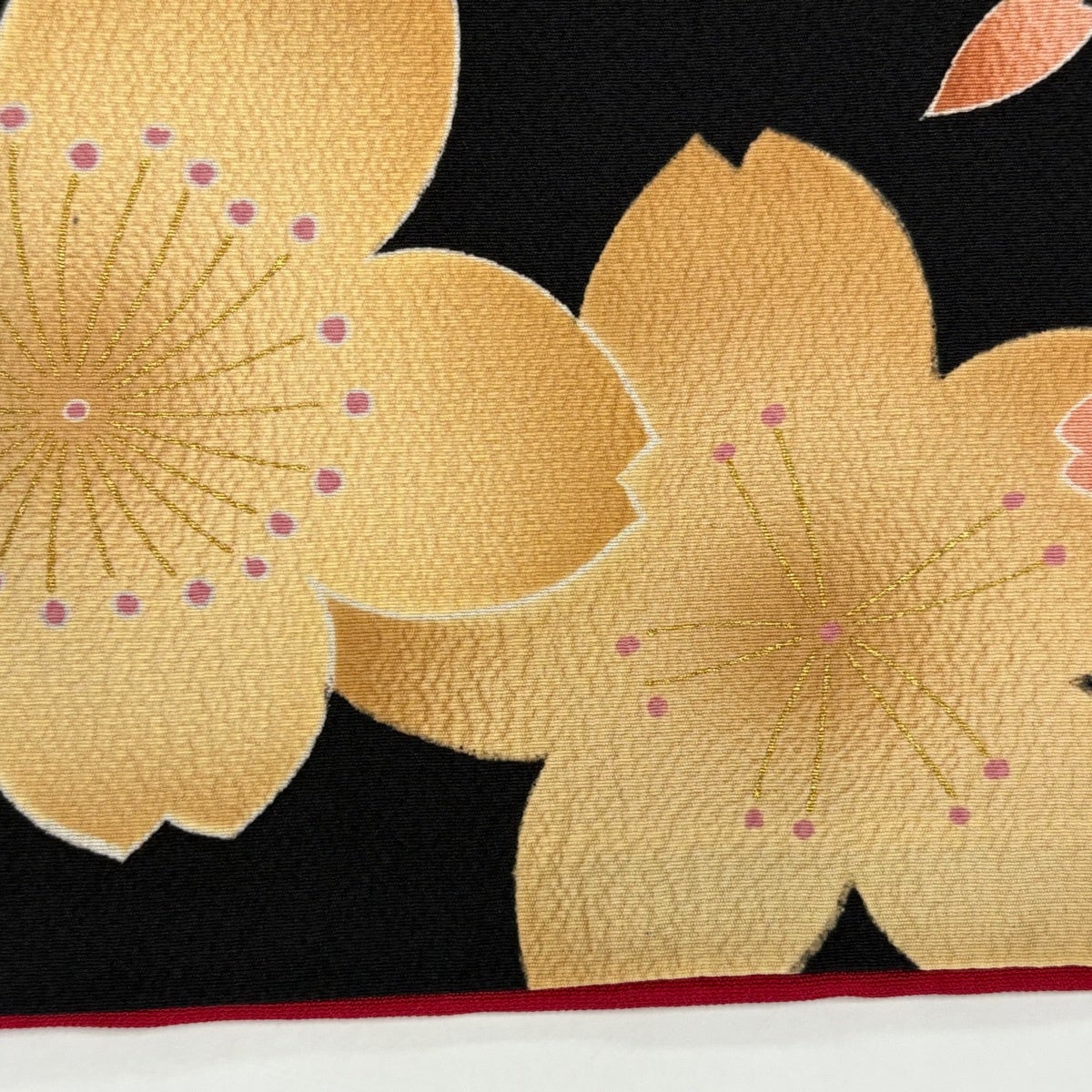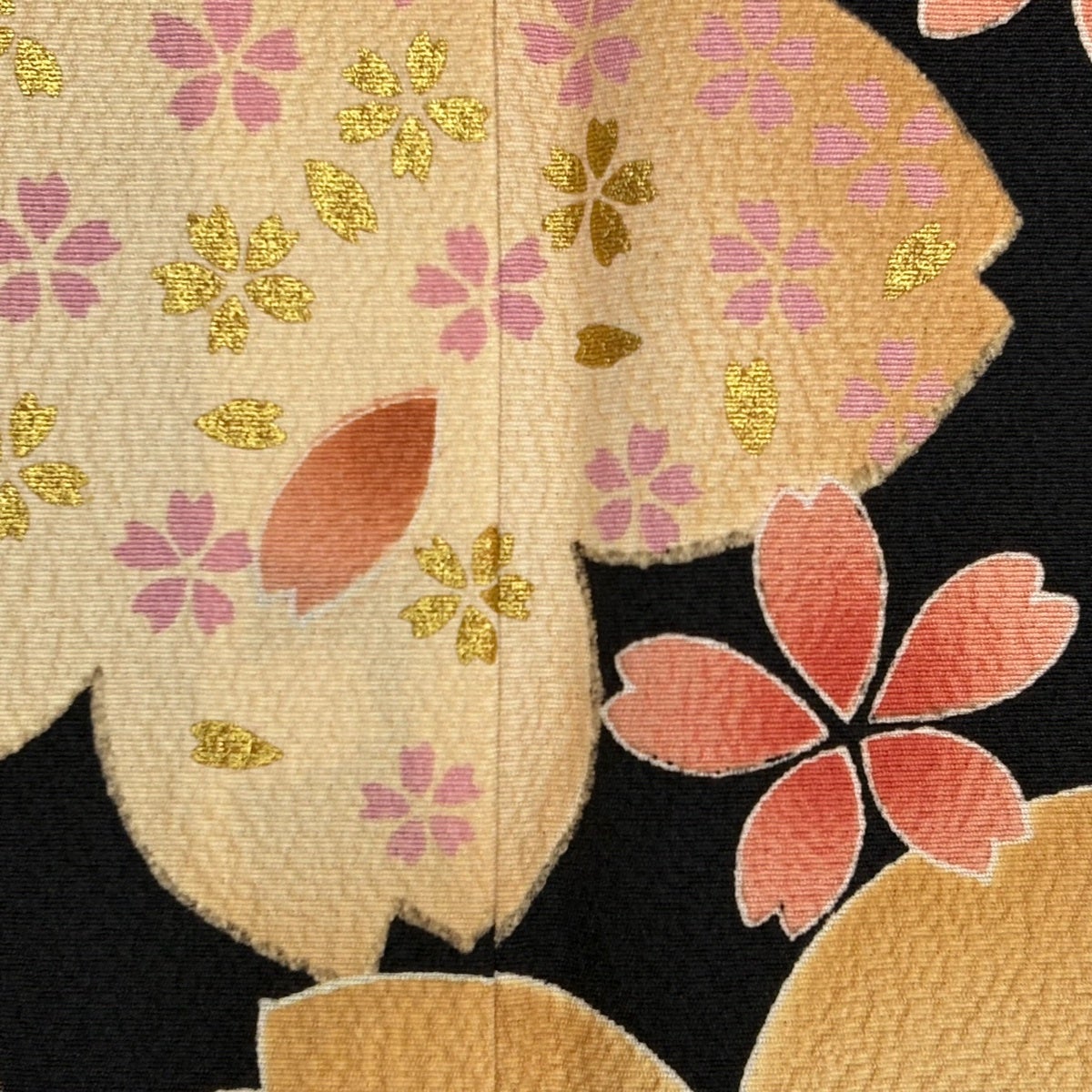 【美品】 振袖 身丈168.5cm 裄丈68.5cm L 袷 洗える着物 桜 花びら 金彩 白 化繊 優品