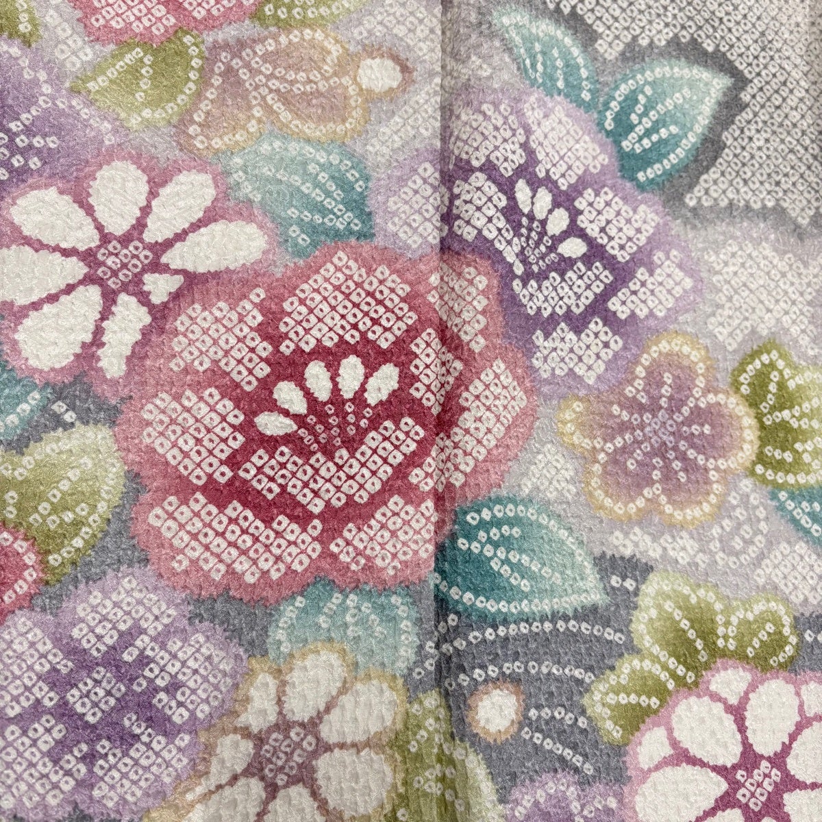 小紋 身丈154.5cm 裄丈62.5cm S 袷 草花 絞り 灰紫 正絹 秀品