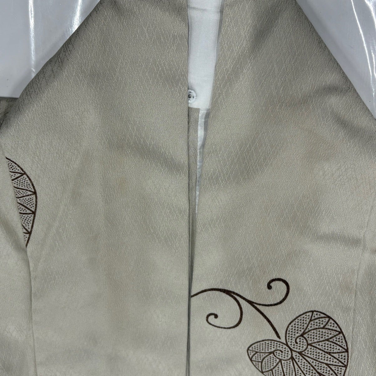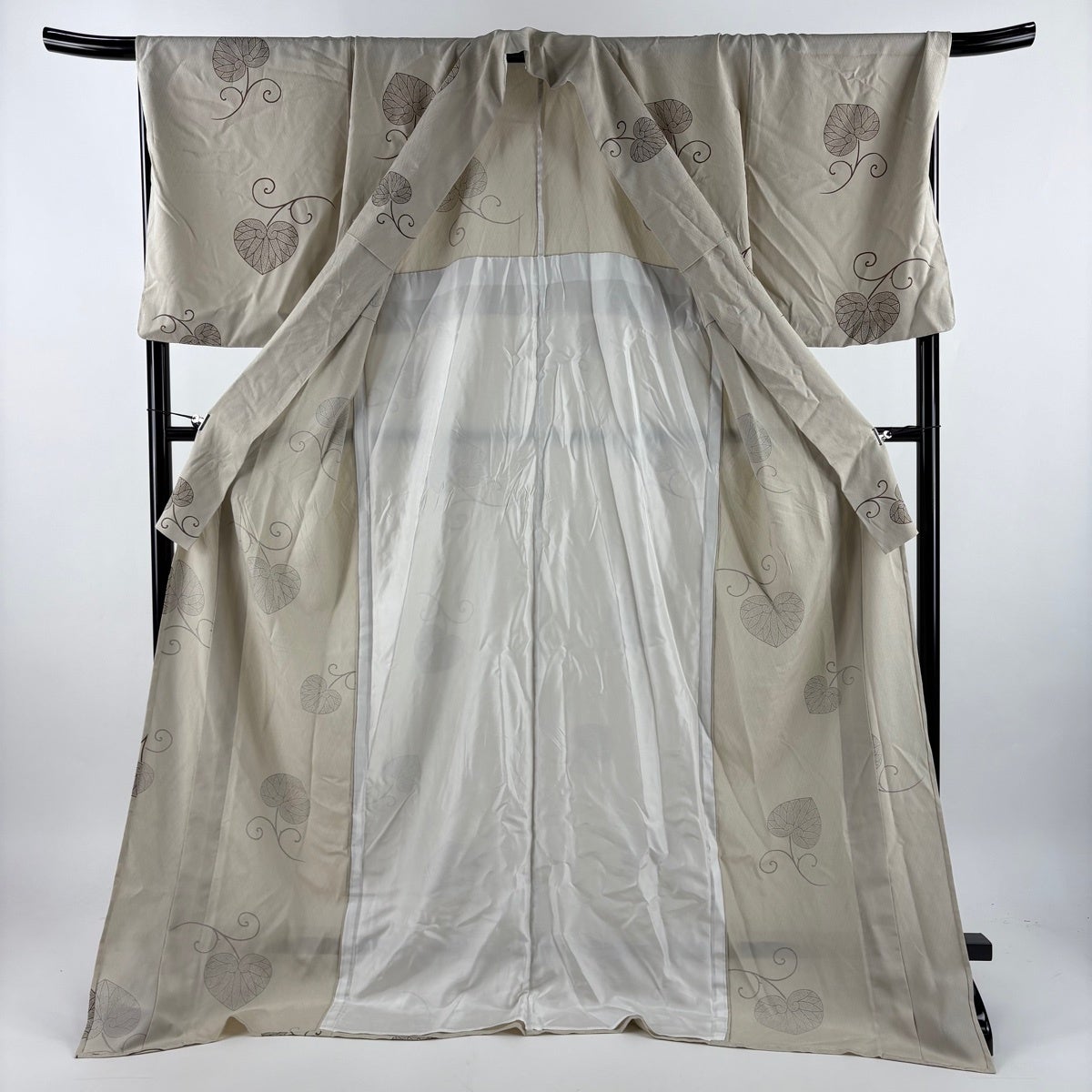 小紋 身丈168.5cm 裄丈69cm L 単衣 丸文 花鳥 ベージュ 正絹 秀品