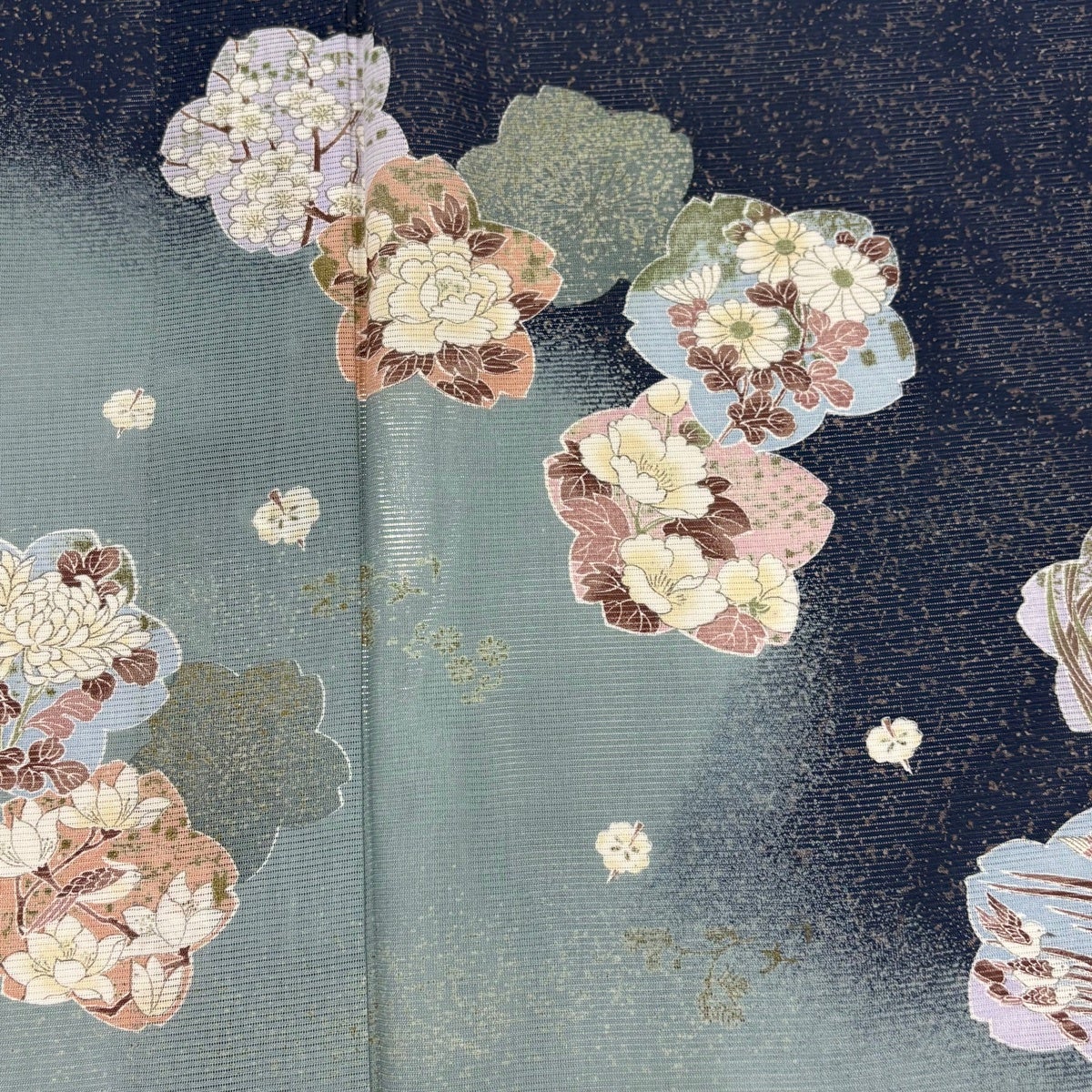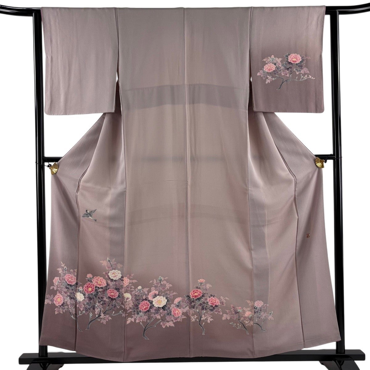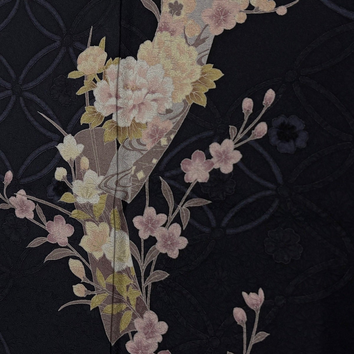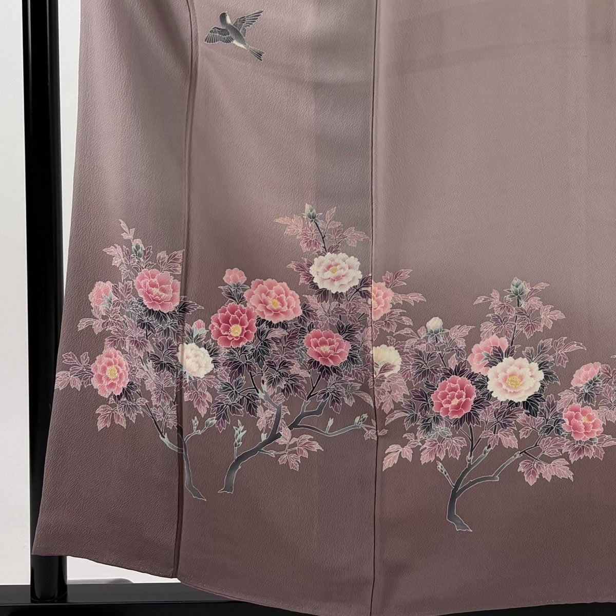 黒留袖 身丈162cm 裄丈64cm M 袷 落款あり 鳥 草花 染め分け 黒 正絹 優品