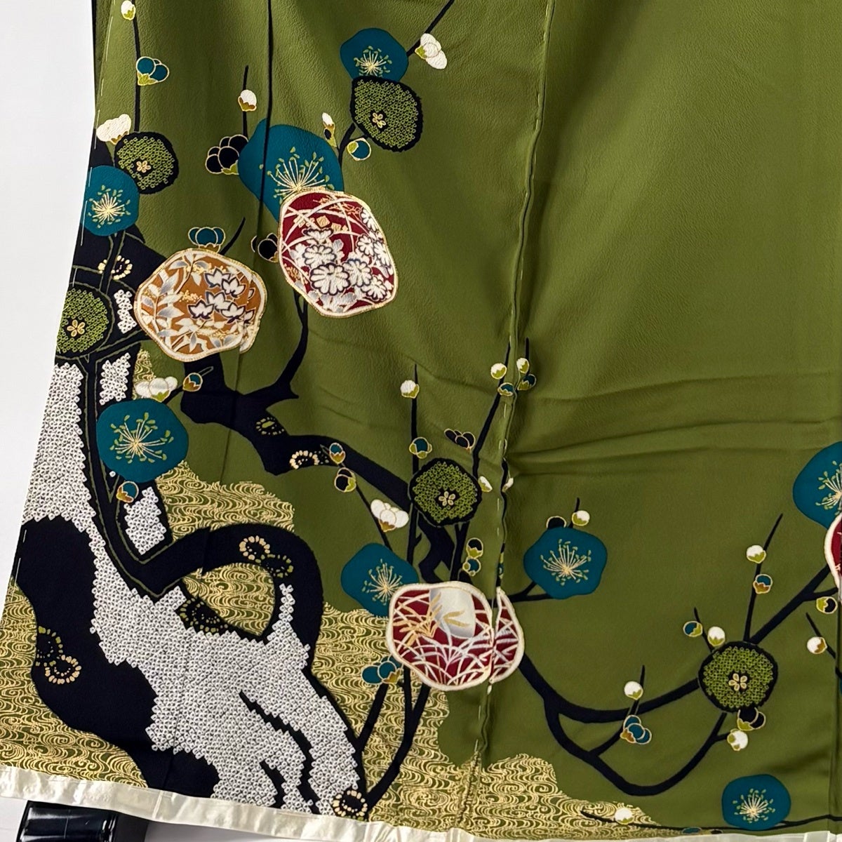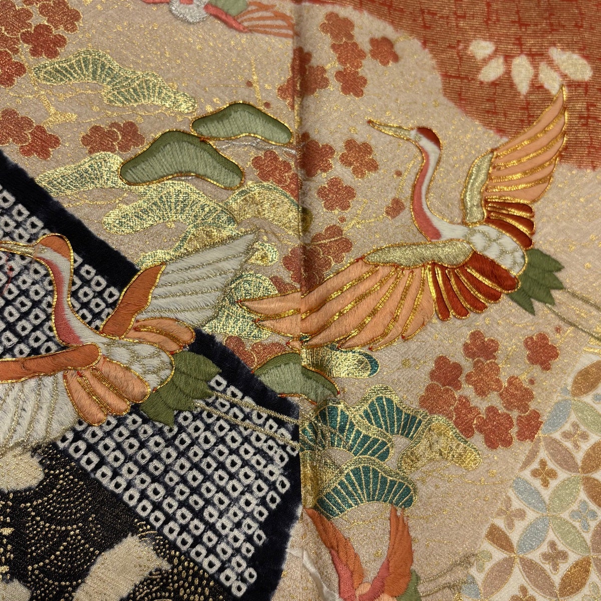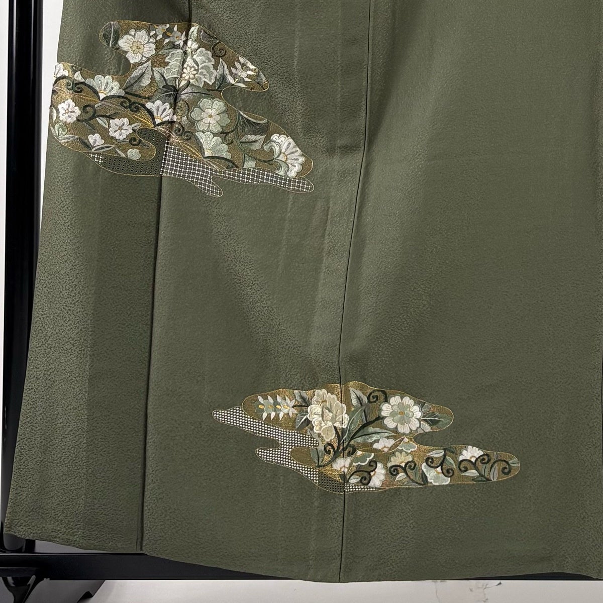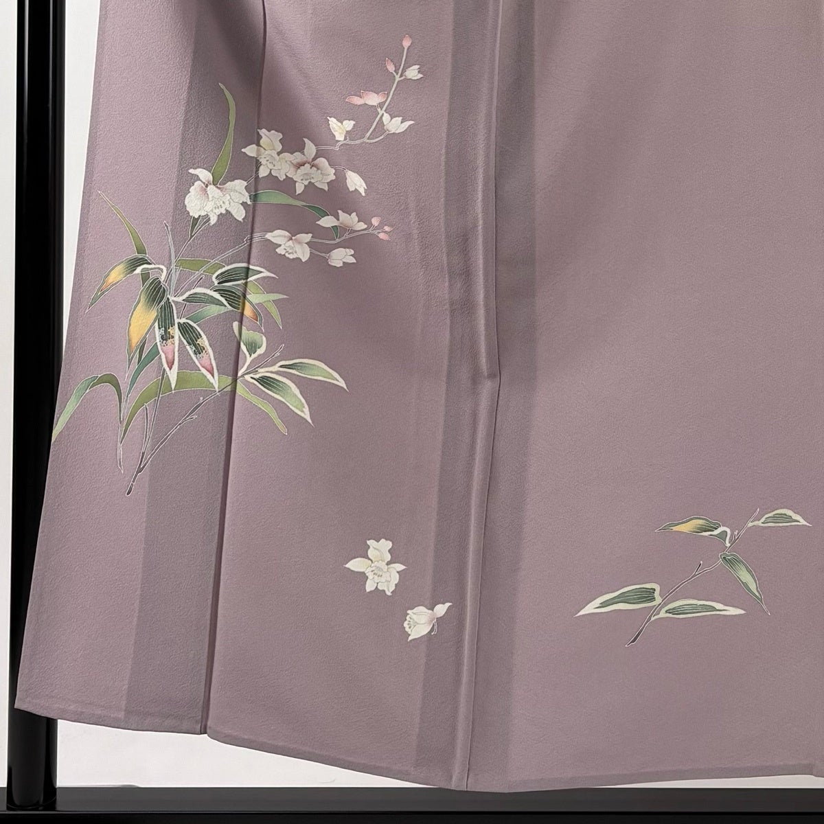 黒留袖 身丈162cm 裄丈64cm M 袷 落款あり 鳥 草花 染め分け 黒 正絹 優品
