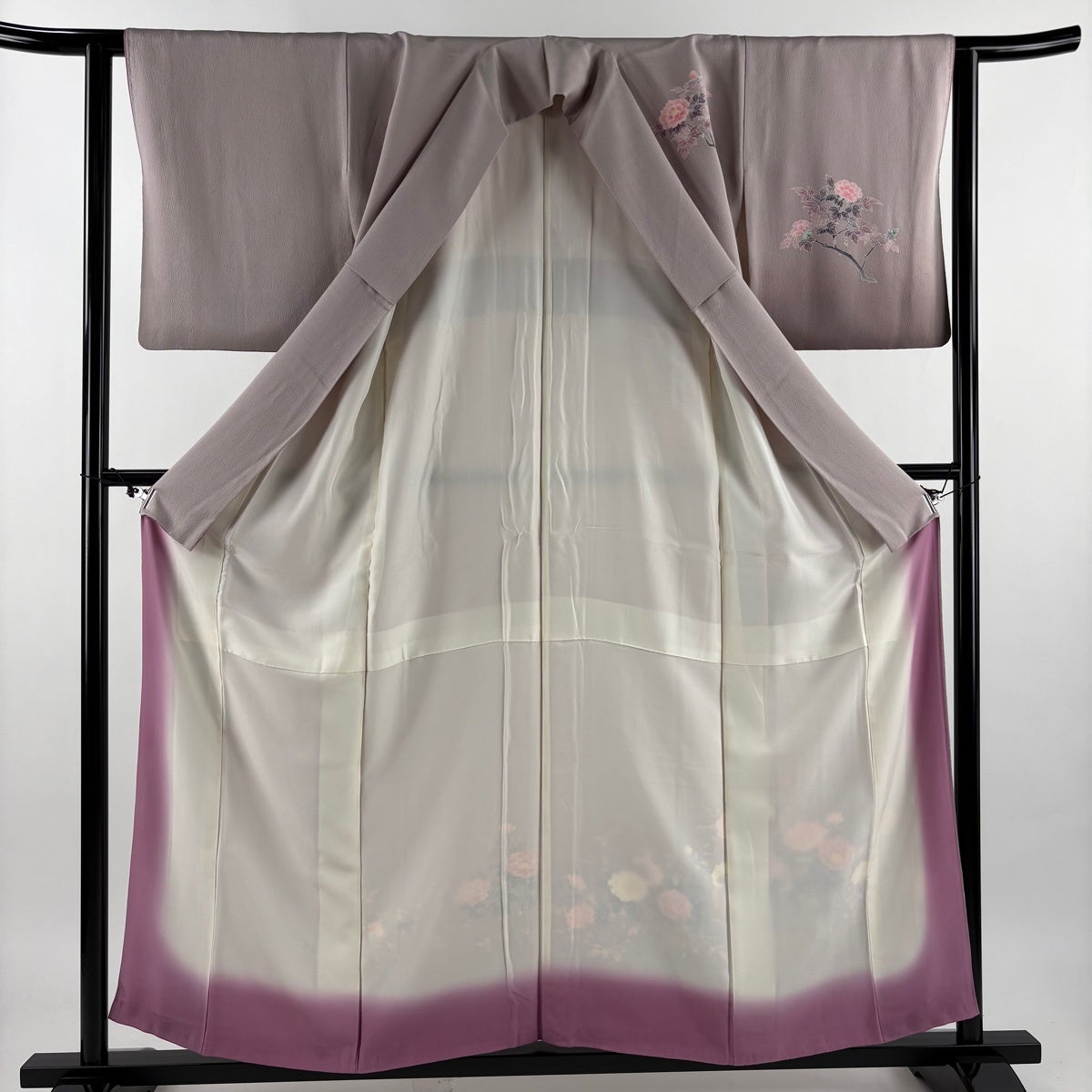 振袖 身丈165cm 裄丈67.5cm L 袷 桜 霞 金糸 金彩 灰紫 正絹 秀品