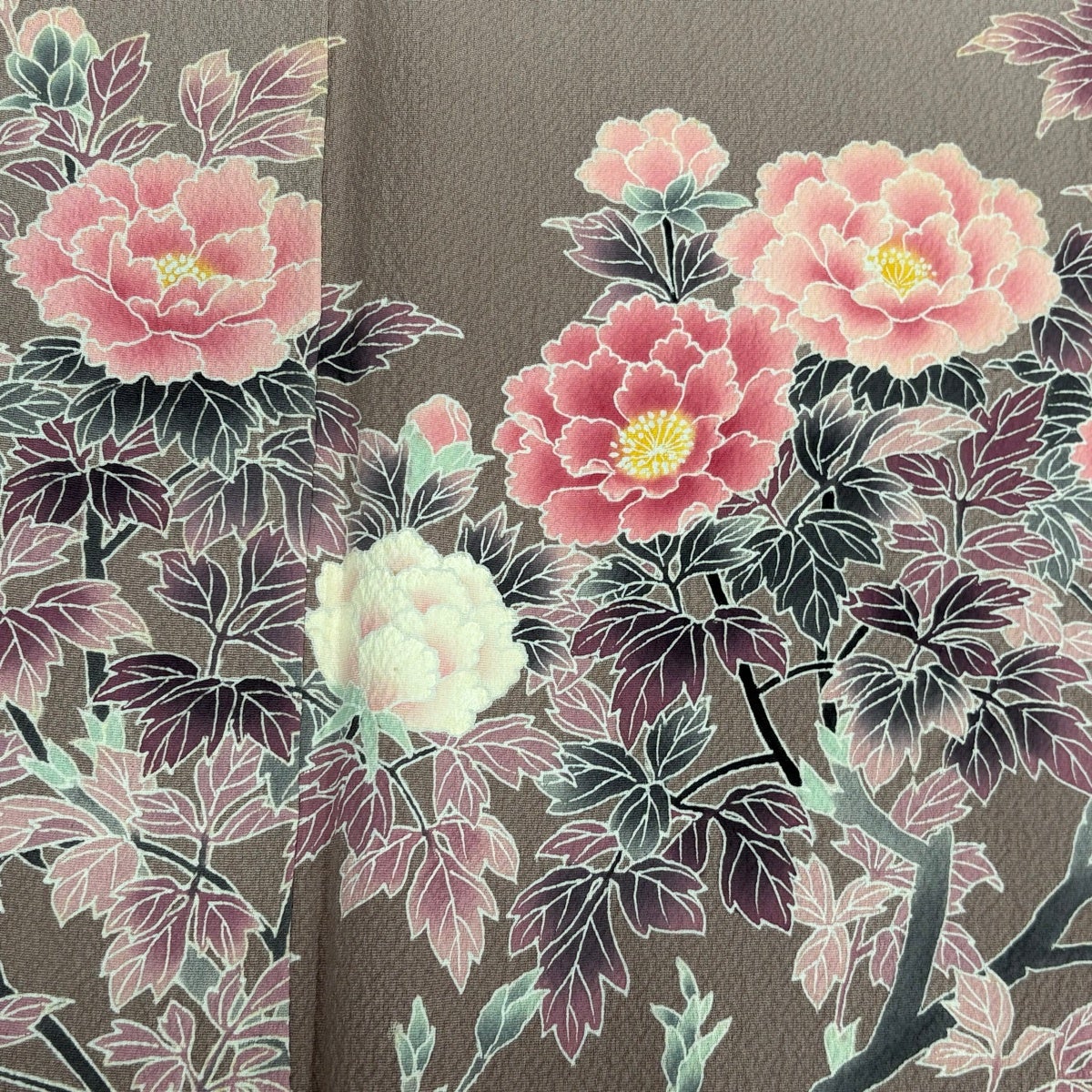 【美品】 紬 身丈164cm 裄丈65cm M 袷 牡丹 ベージュ 正絹 秀品