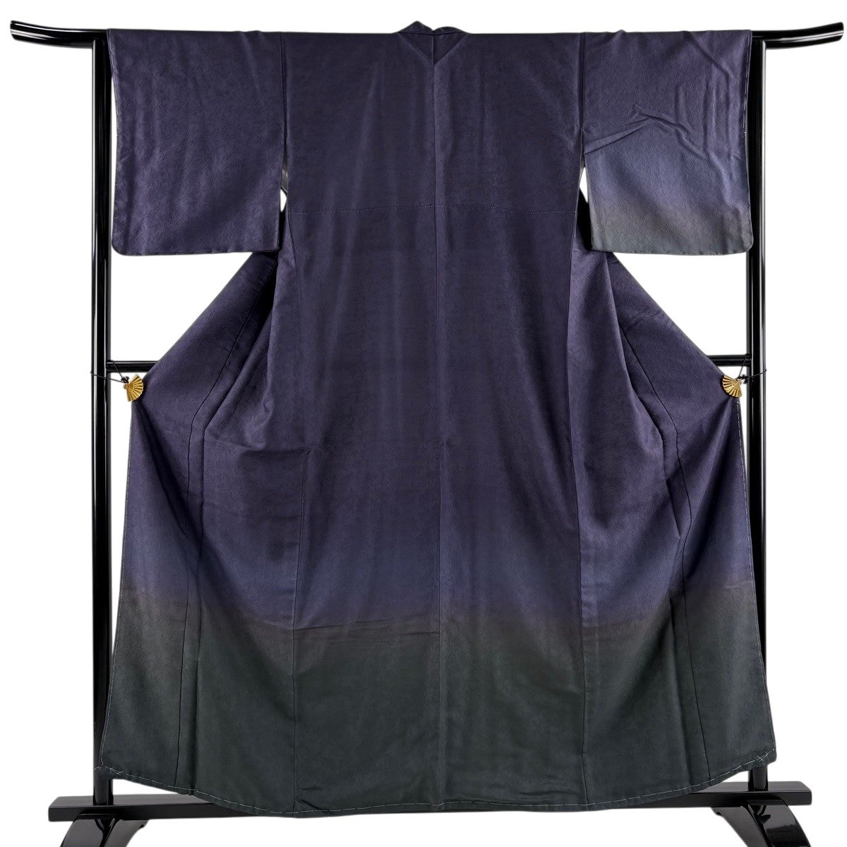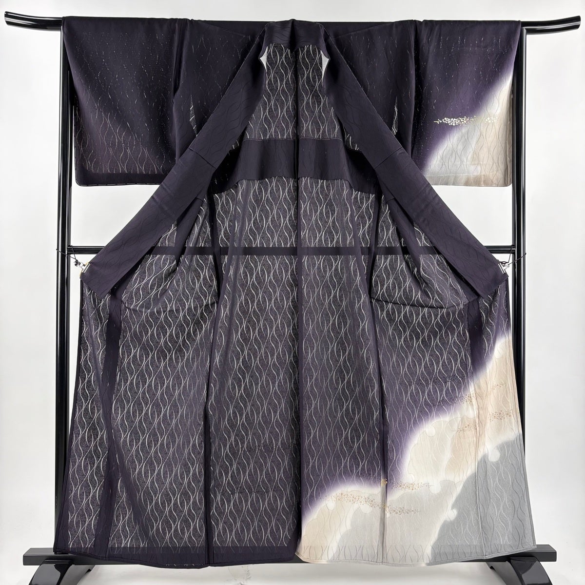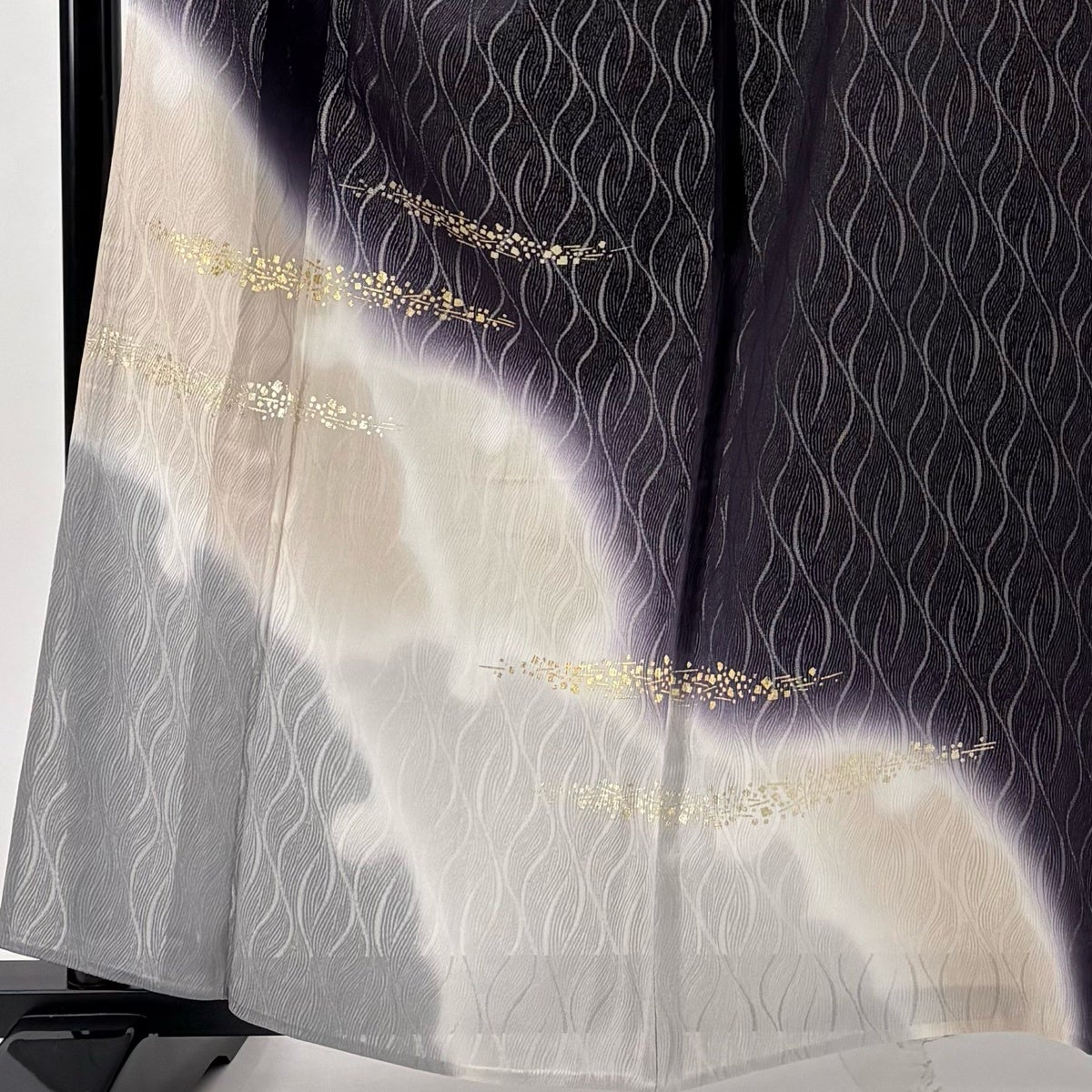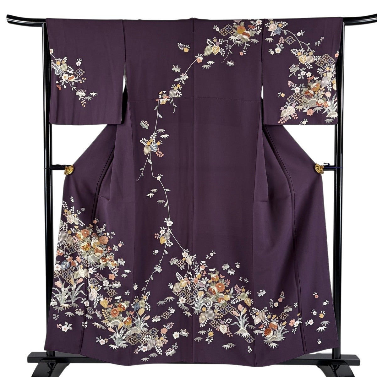 付下げ 身丈164.5cm 裄丈66cm M 袷 やまと 花唐草 金彩 絞り 濃紫 正絹 優品