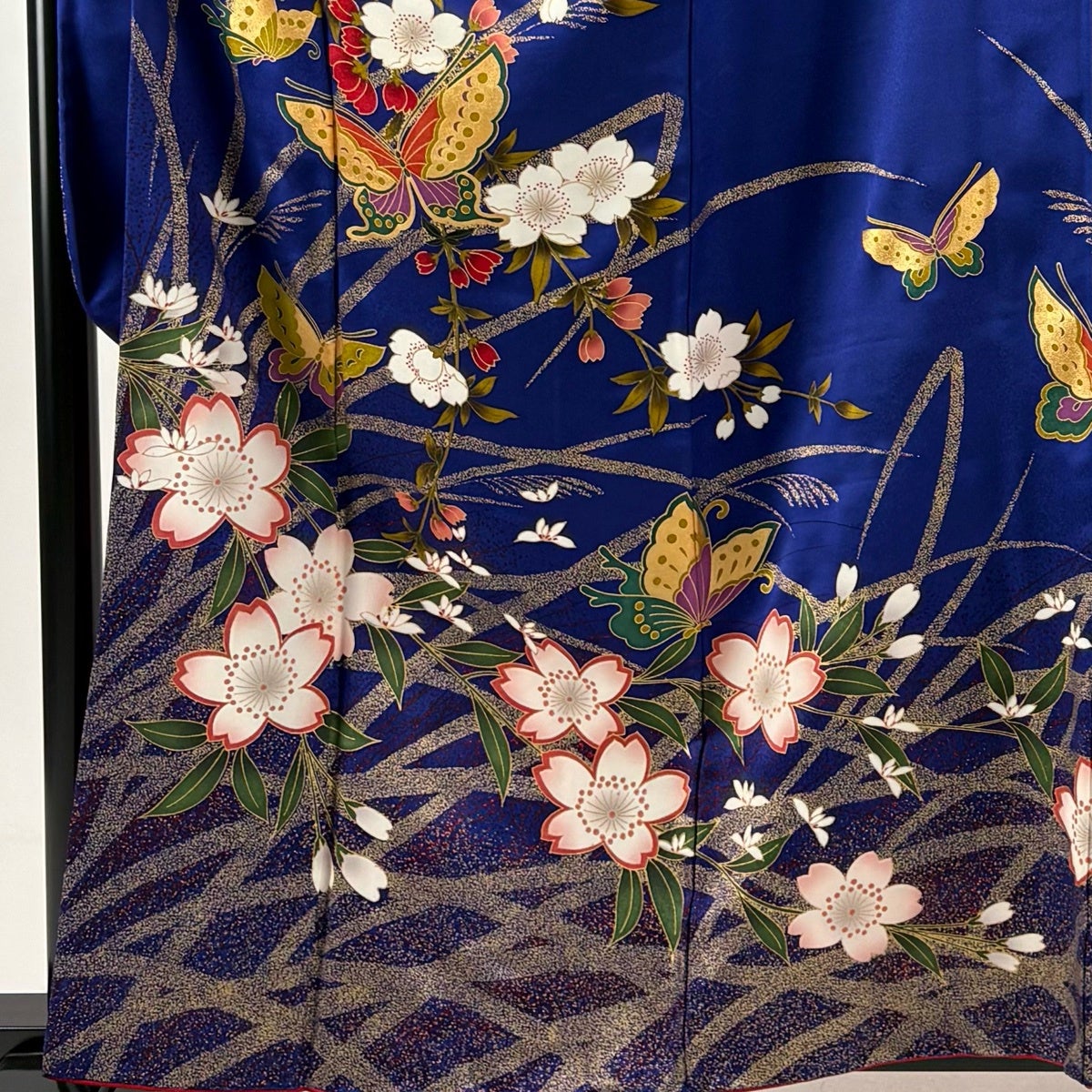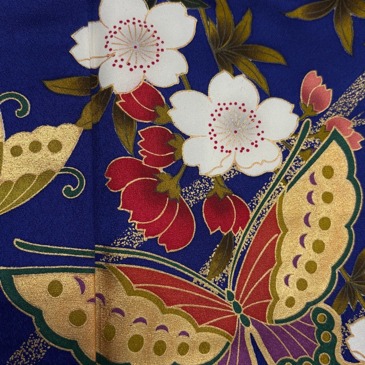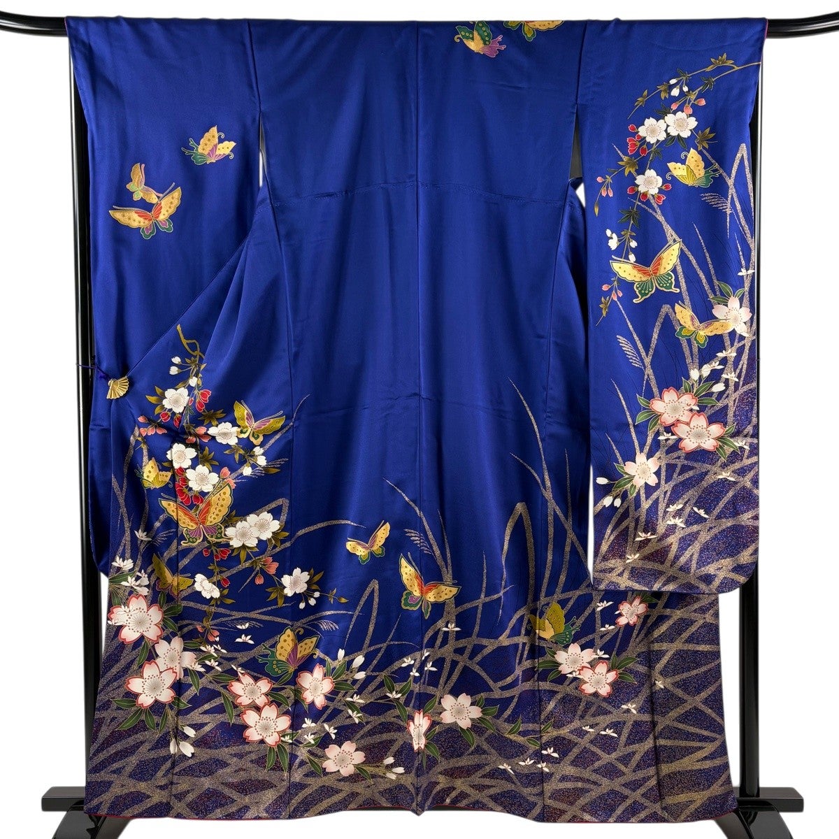 振袖 身丈166cm 裄丈70cm L 袷 蝶 金彩 濃紫 正絹 秀品