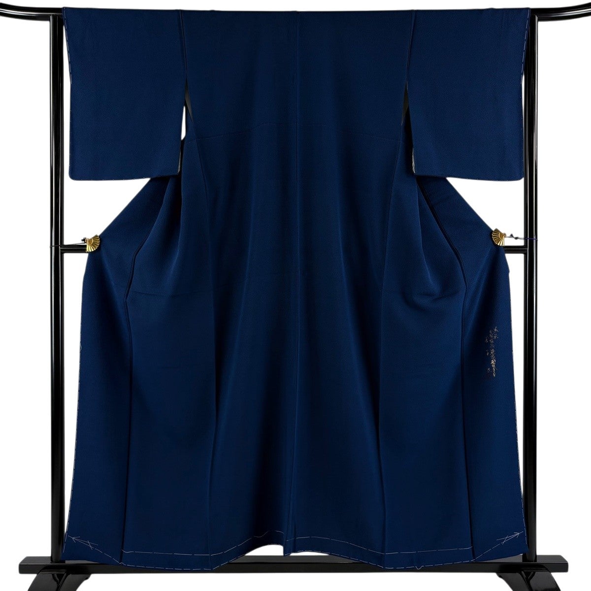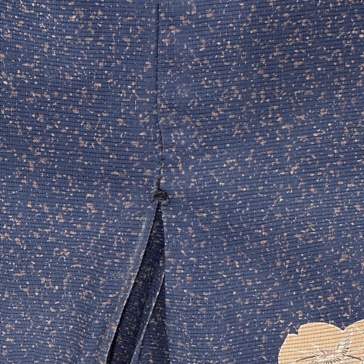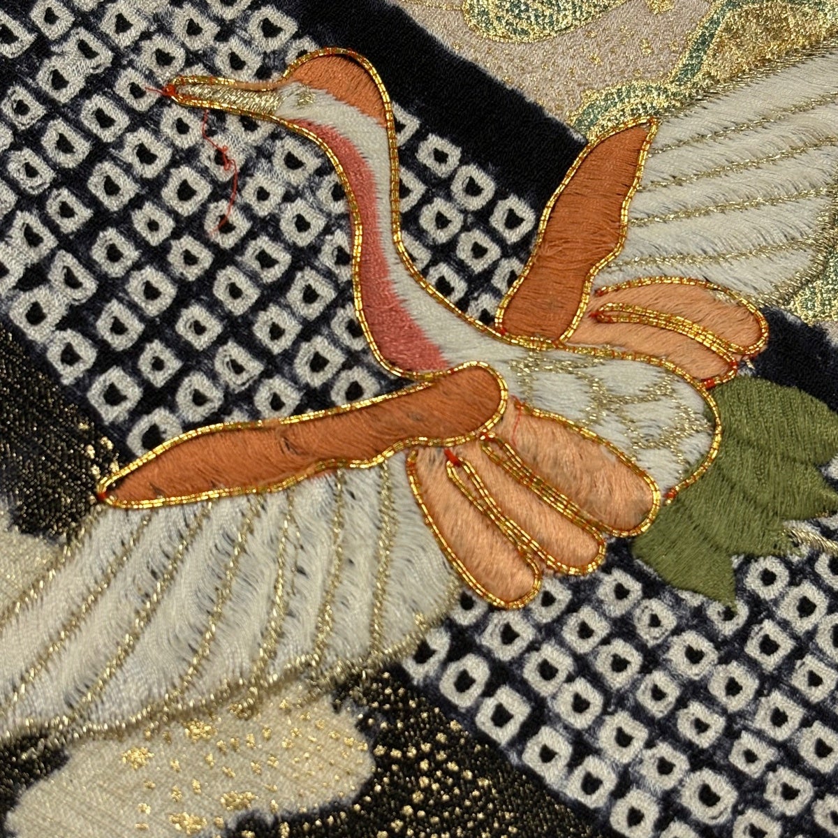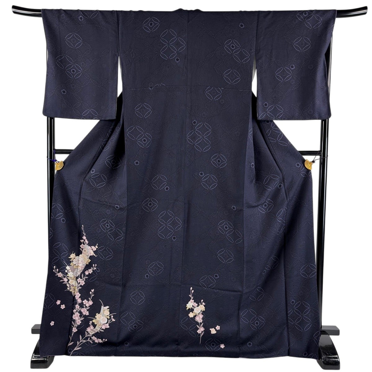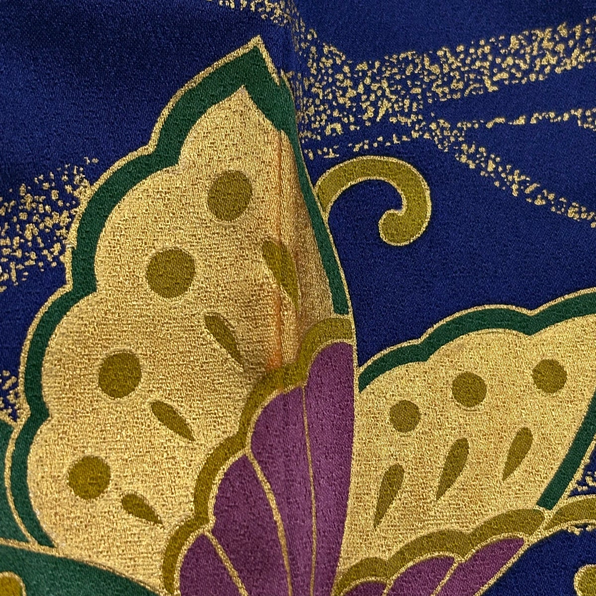 小紋 身丈155.5cm 裄丈66cm M 袷 霞 葉柄 金糸 刺繍 紺色 正絹 優品