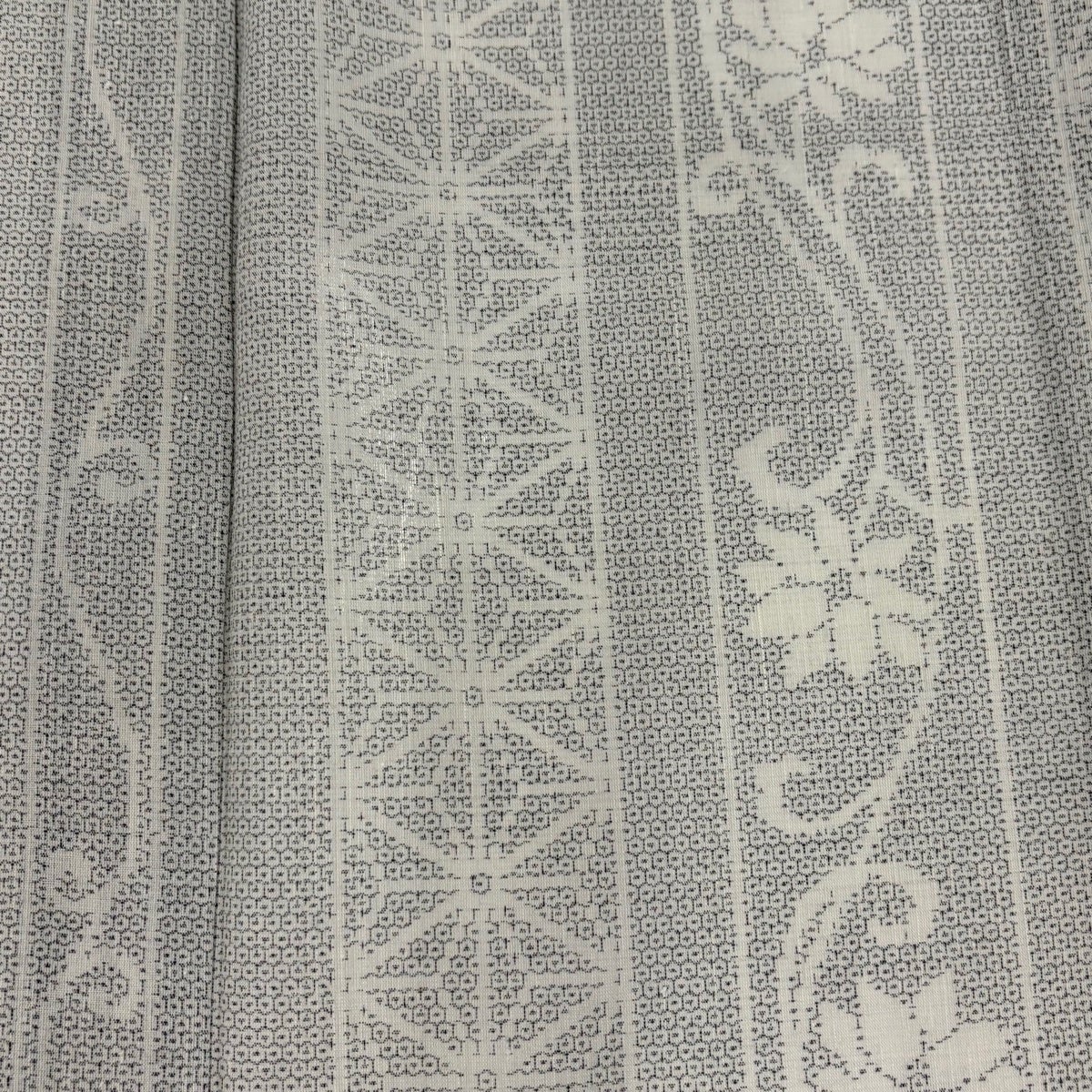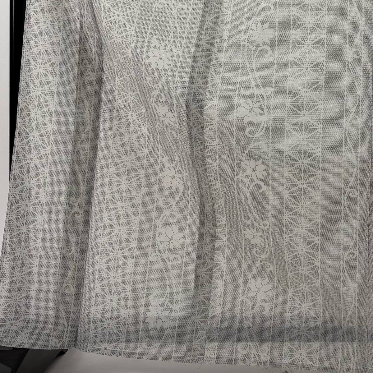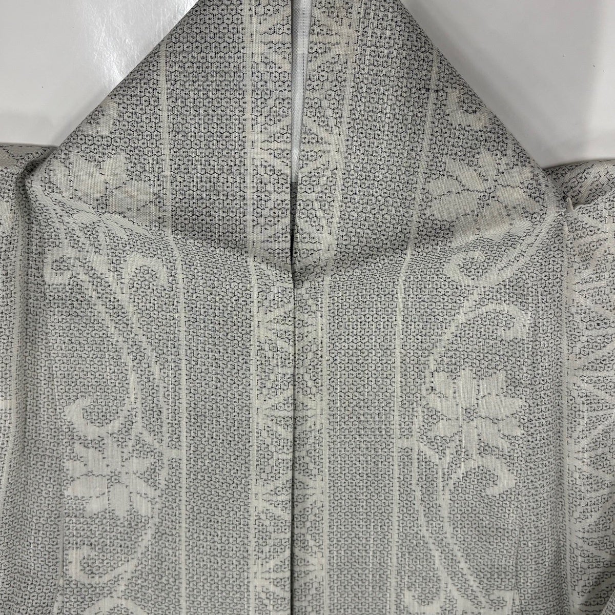 小紋 身丈163cm 裄丈69cm L 薄物 孔雀 紋紗織 灰紫 正絹 秀品