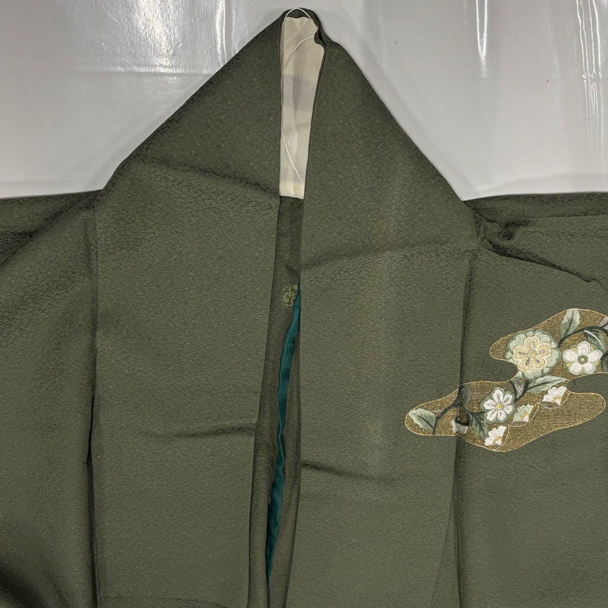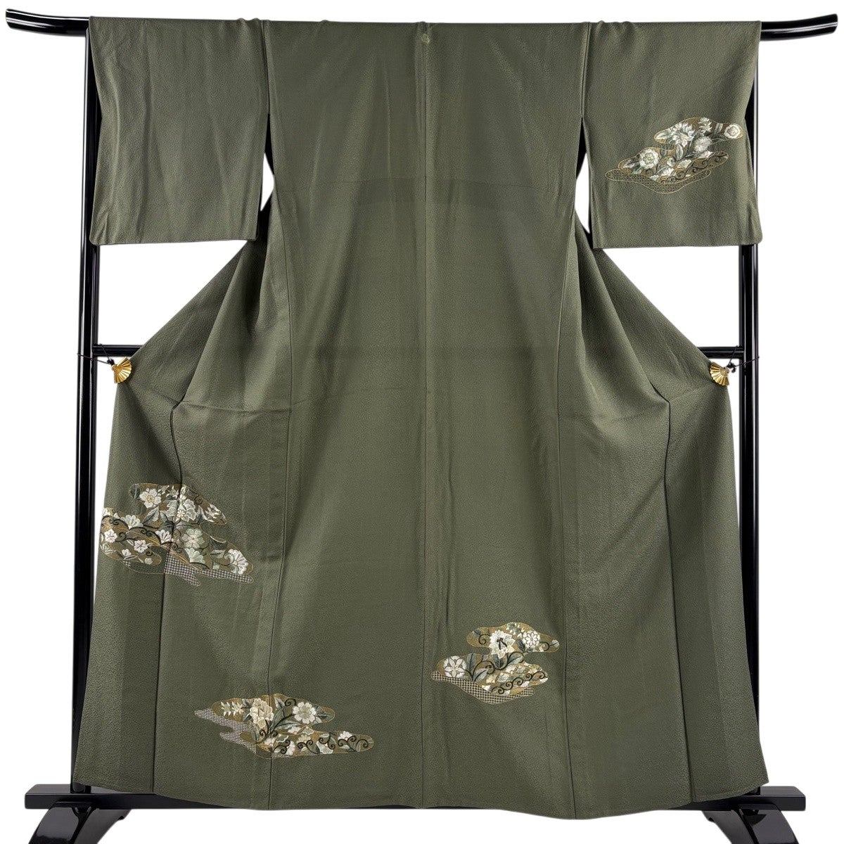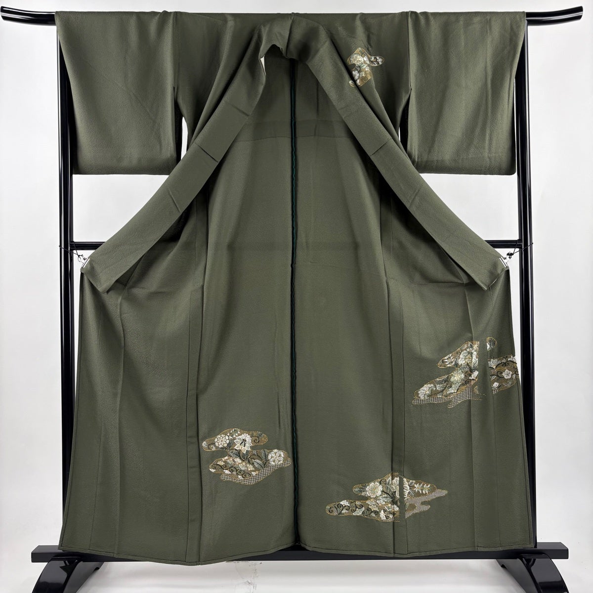 付下げ 身丈163.5cm 裄丈67cm M 袷 落款あり 幾何学模様 よもぎ色 正絹 優品