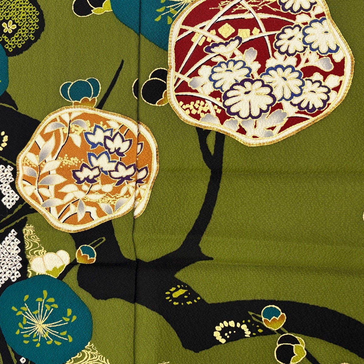 付下げ 身丈165cm 裄丈68cm L 袷 落款あり 花 雪輪 蘇州刺繍 ぼかし 黄土色 正絹 秀品