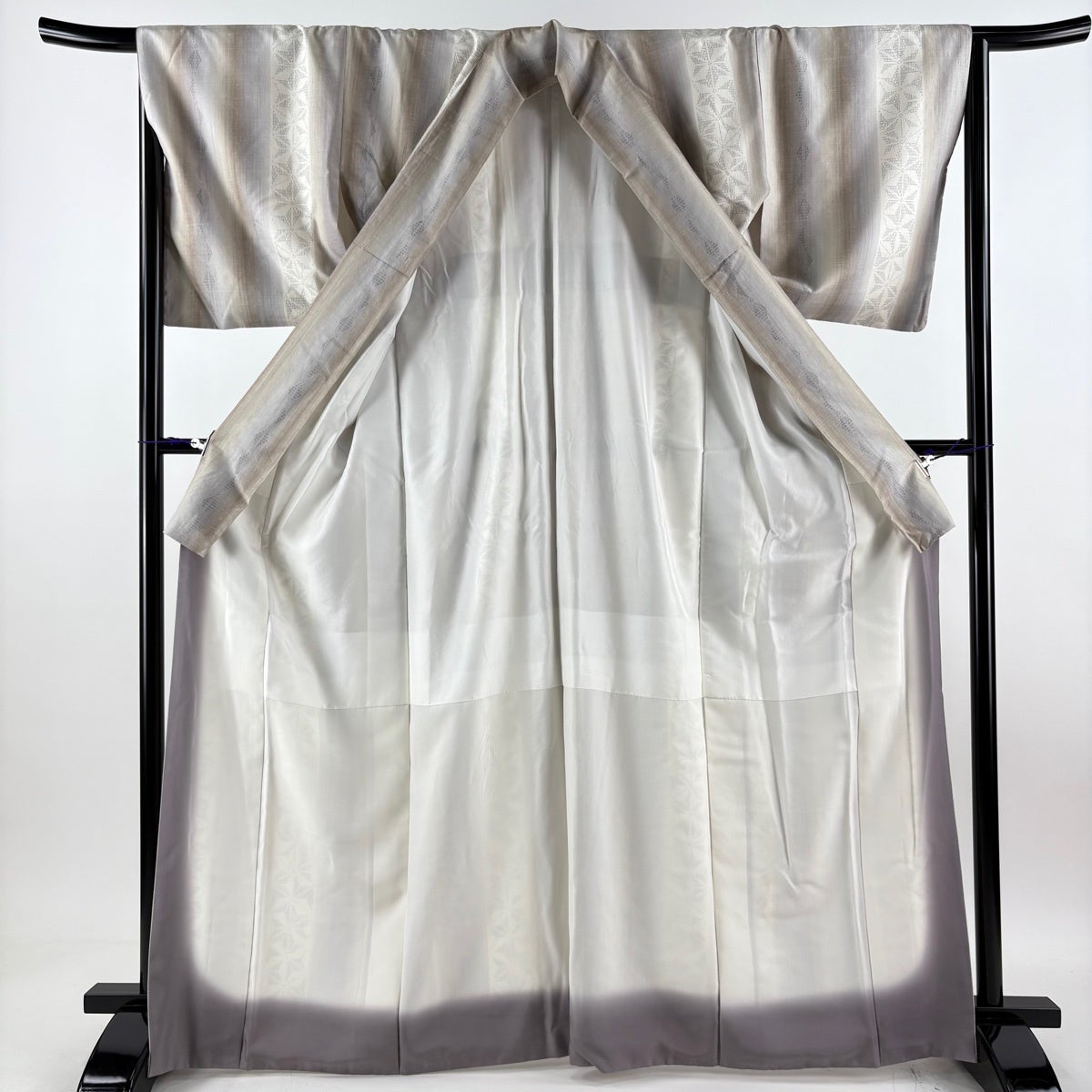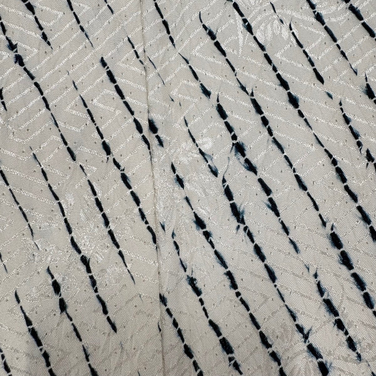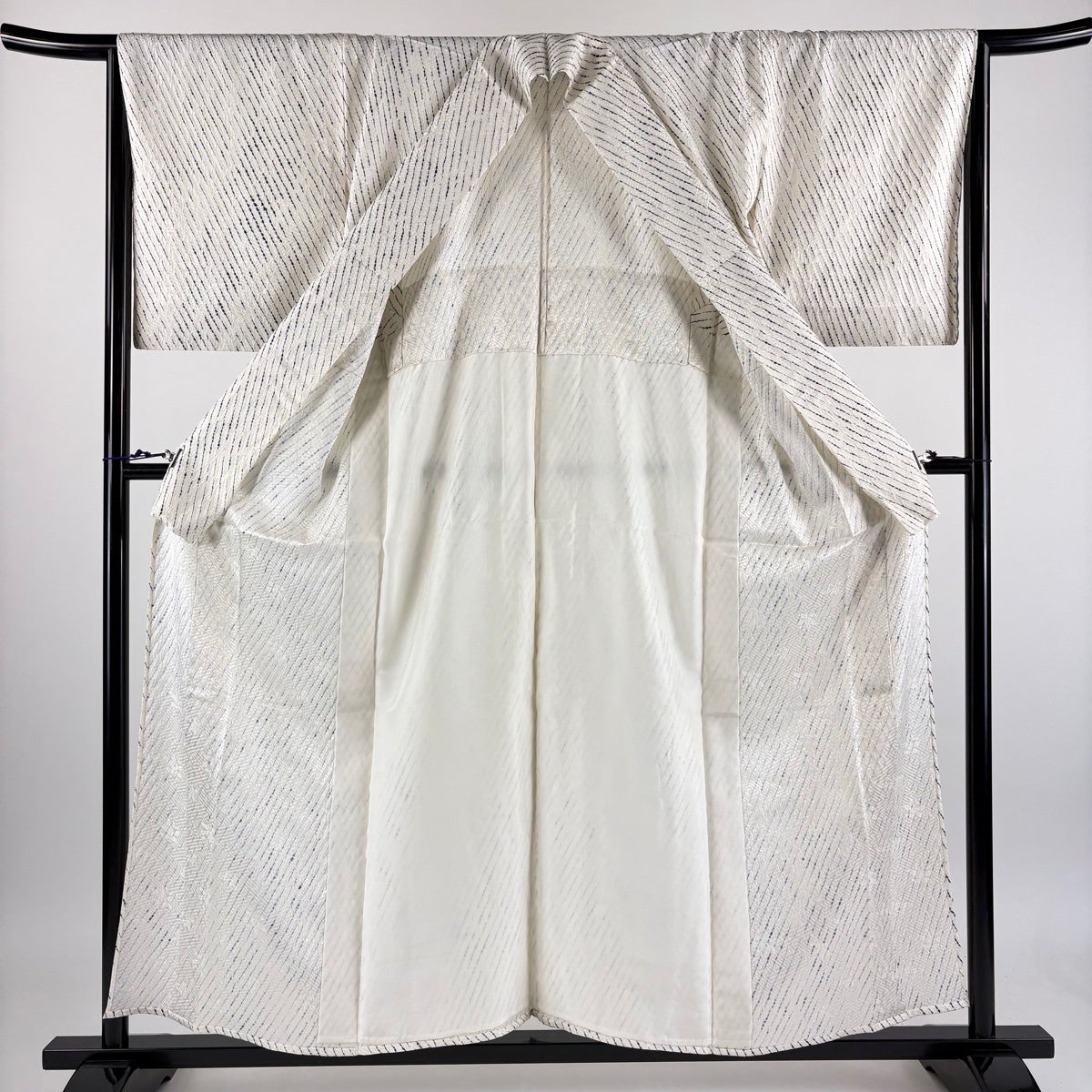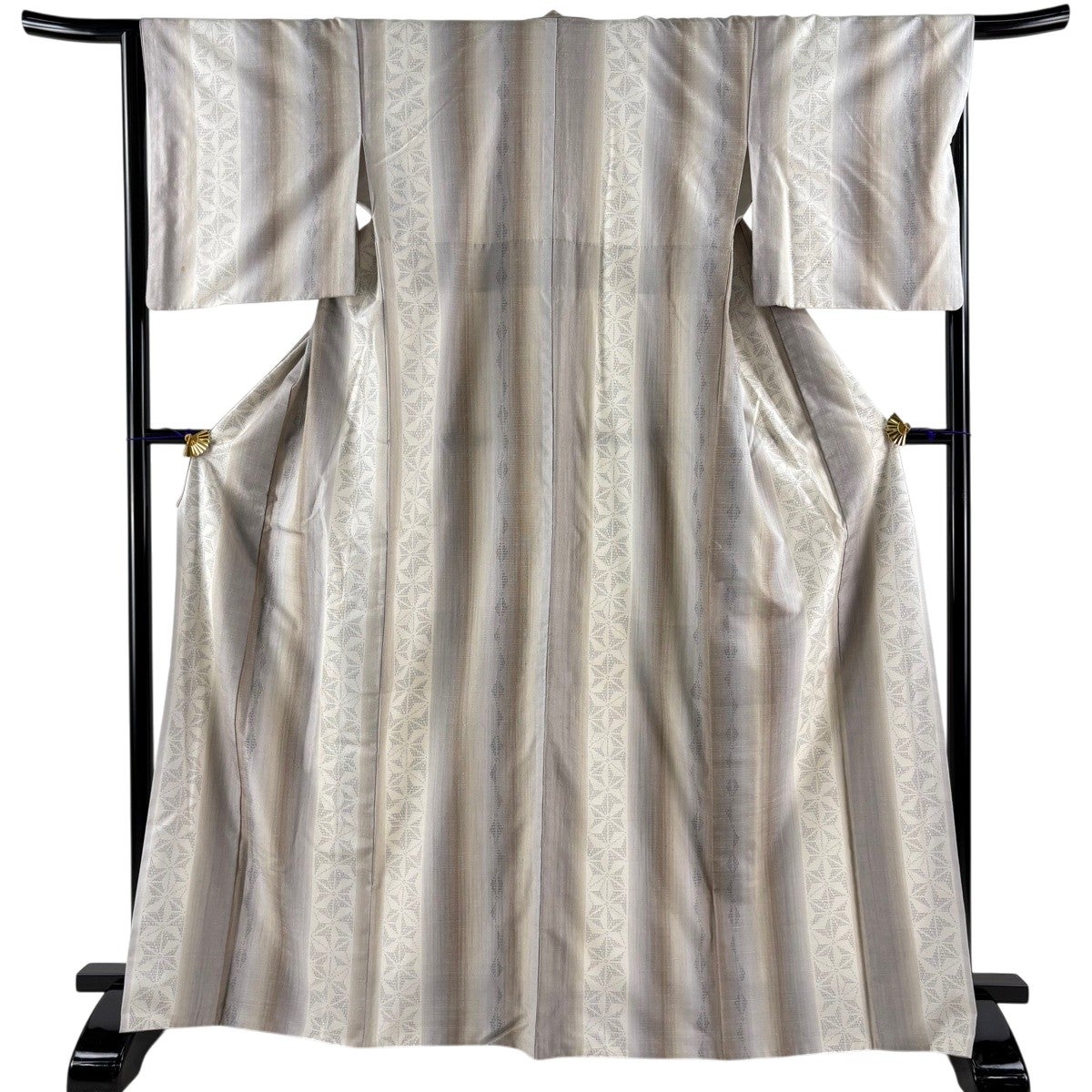 紬 身丈167.5cm 裄丈67cm M 袷 縦縞 麻の葉 灰白 正絹 秀品