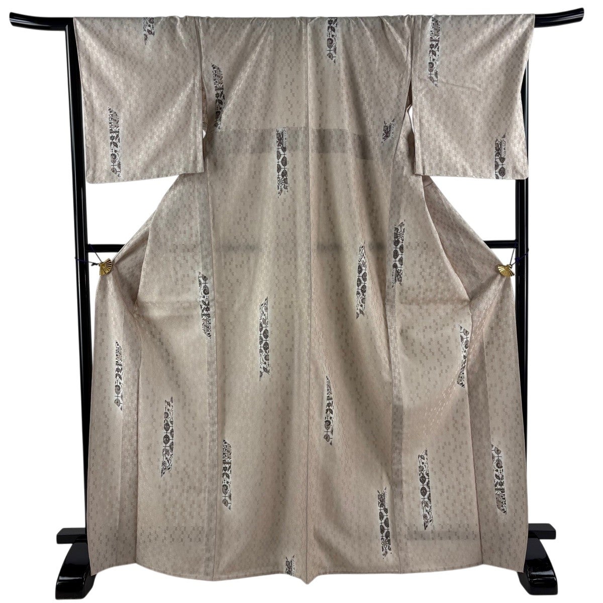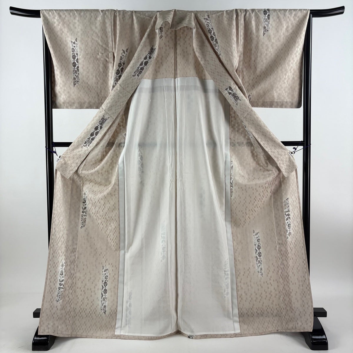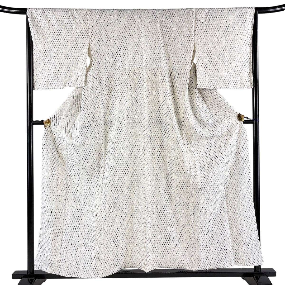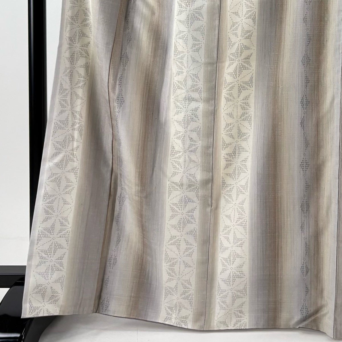 紬 身丈167.5cm 裄丈67cm M 袷 縦縞 麻の葉 灰白 正絹 秀品
