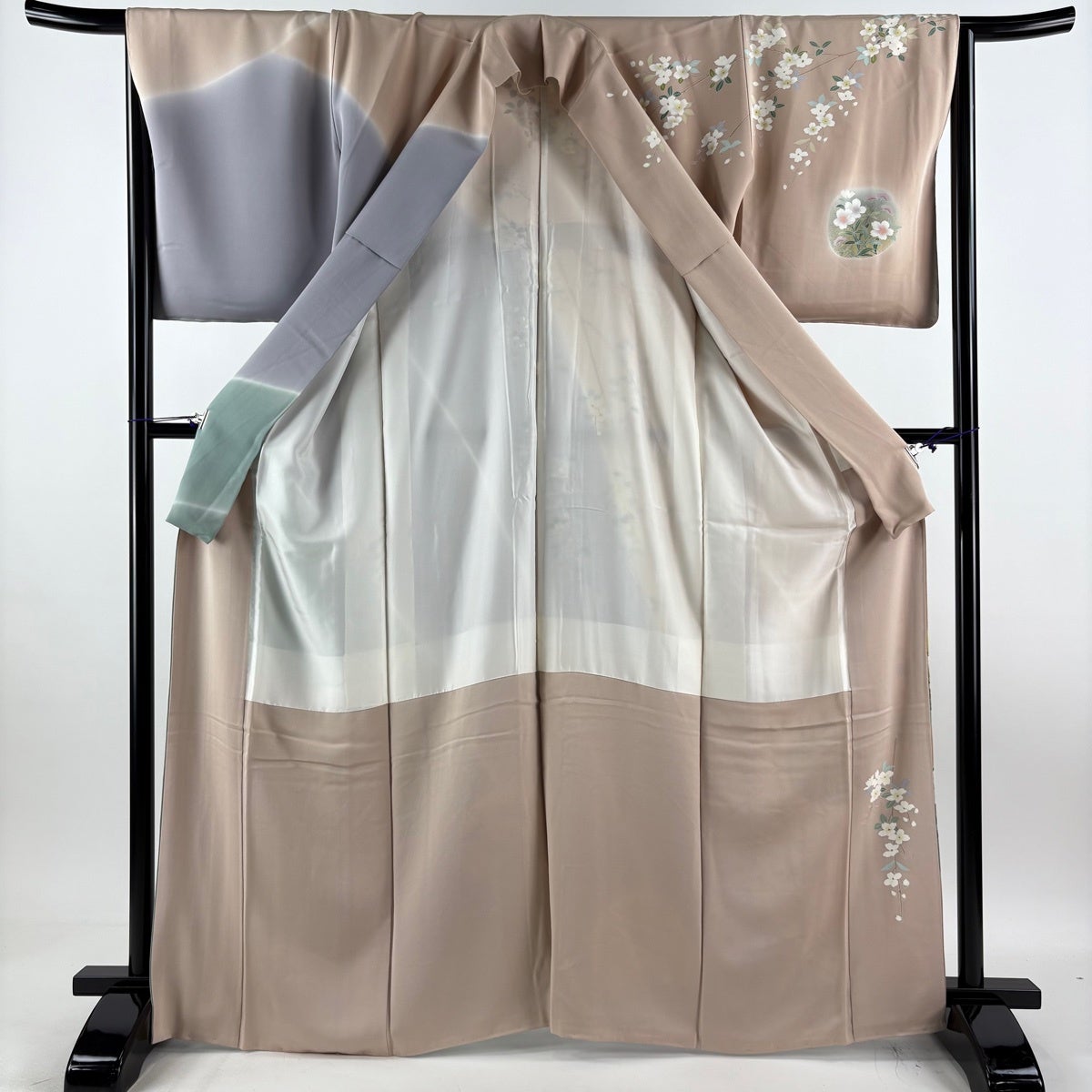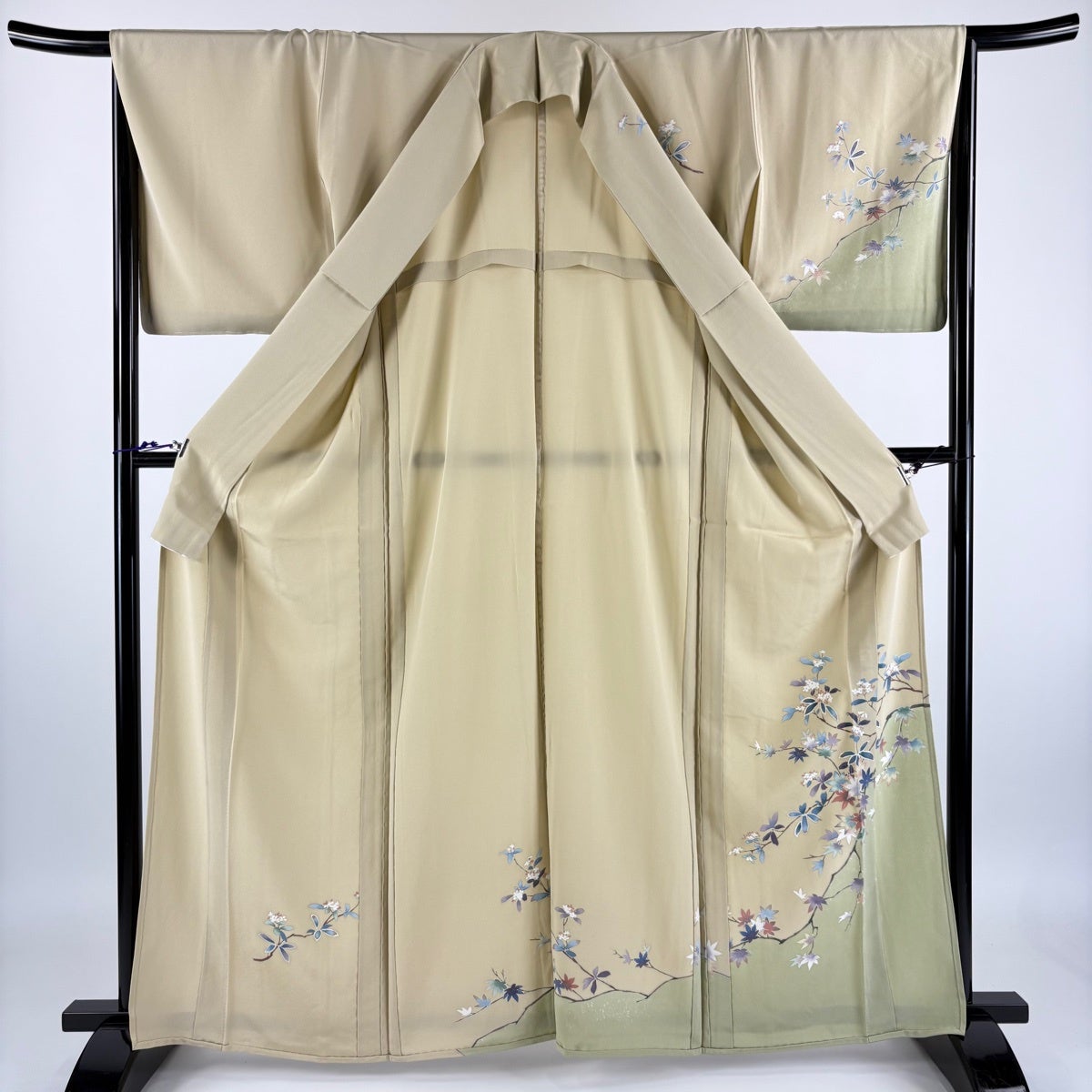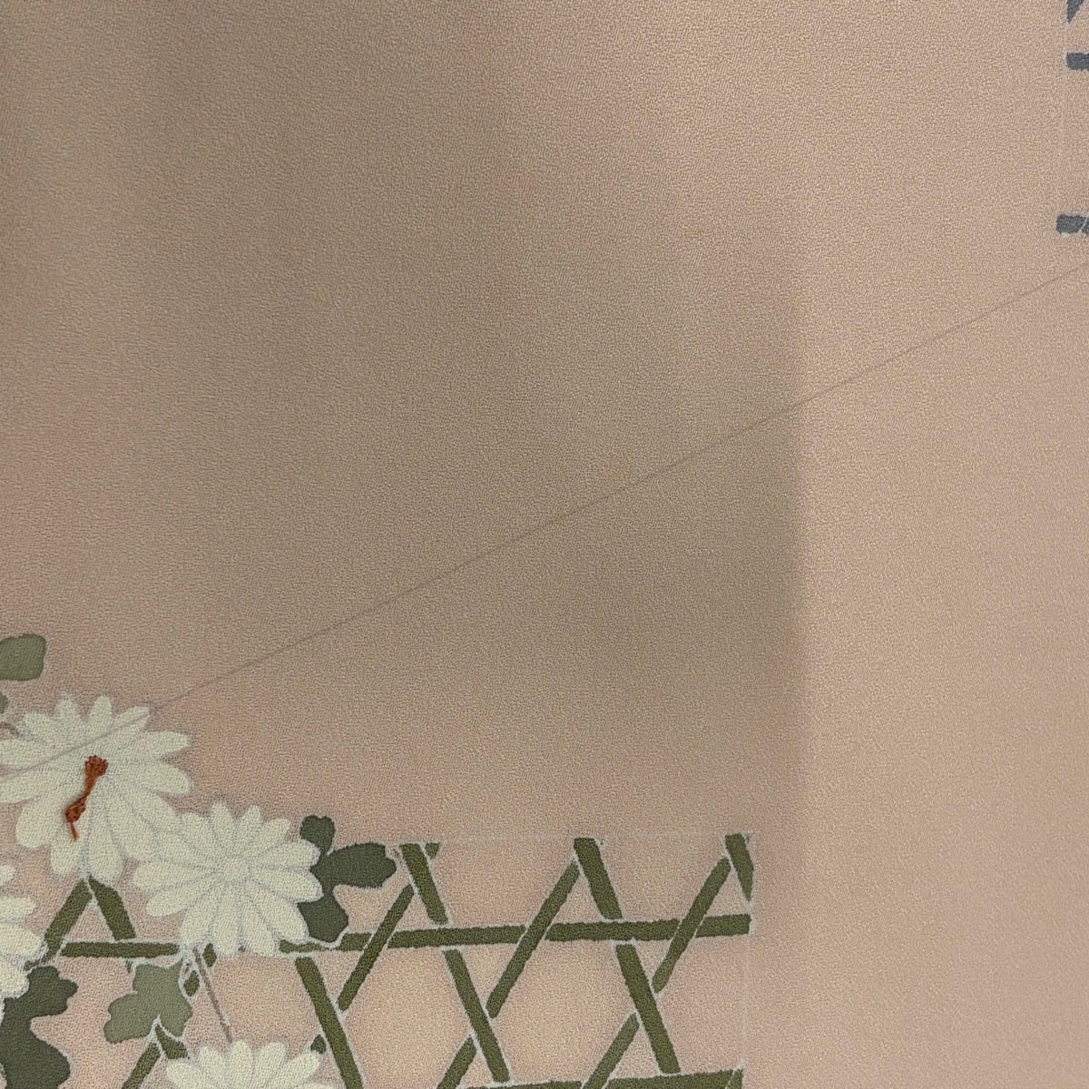 付下げ 身丈158cm 裄丈62.5cm S 単衣 秋草 雲文 刺繍 ぼかし ベージュ 正絹 秀品
