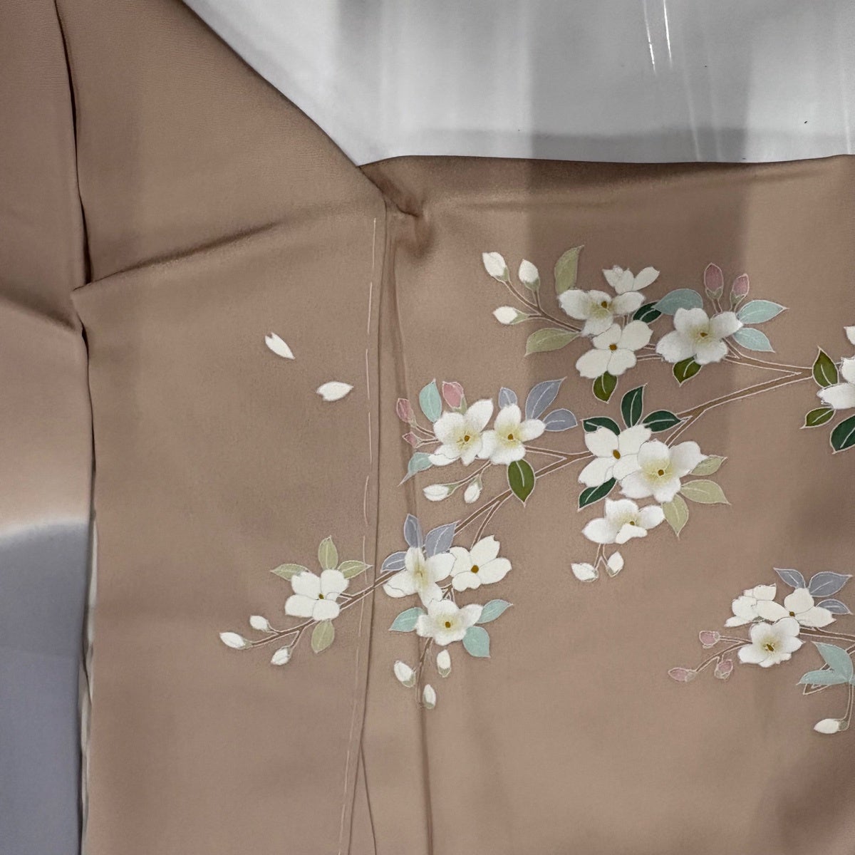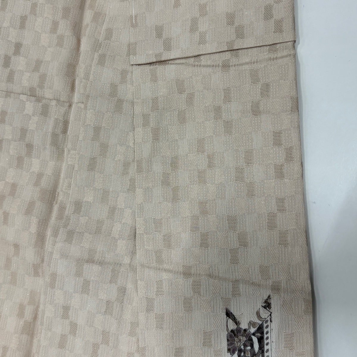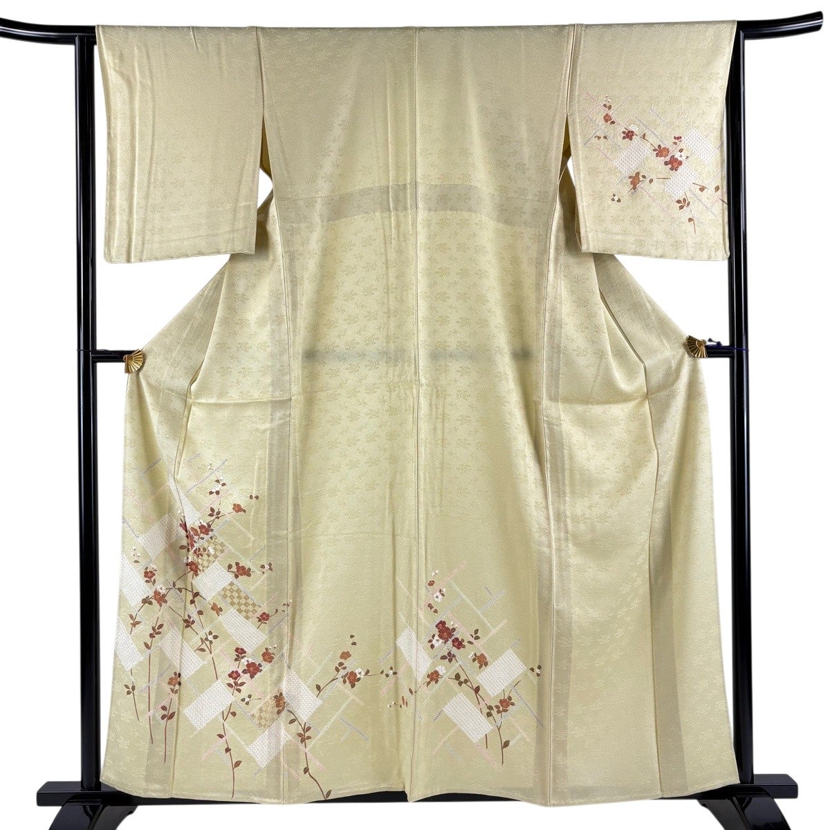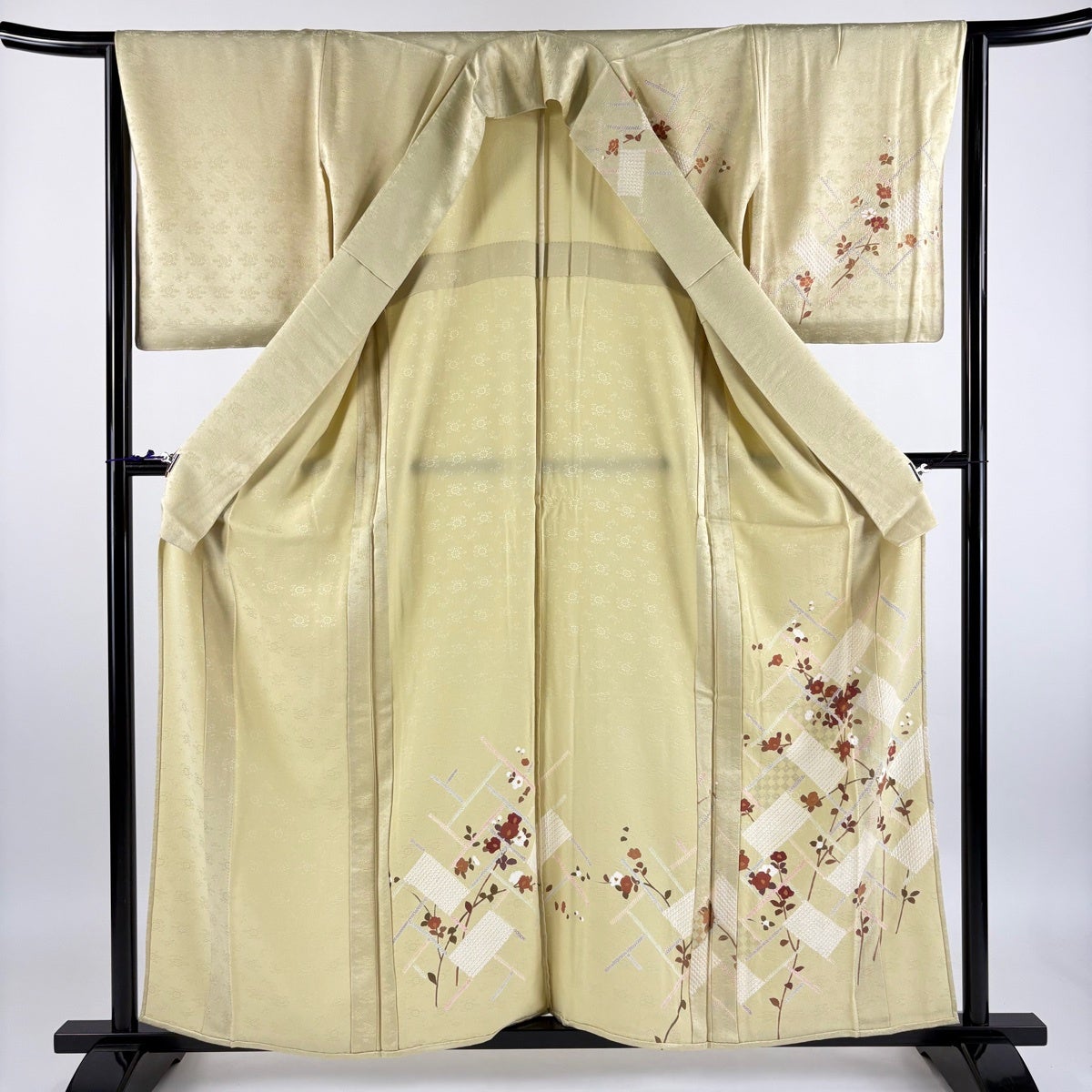 付下げ 身丈158cm 裄丈62.5cm S 単衣 秋草 雲文 刺繍 ぼかし ベージュ 正絹 秀品