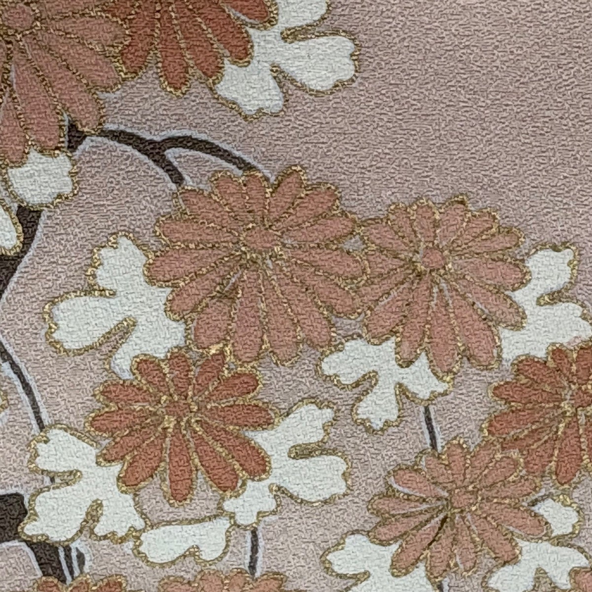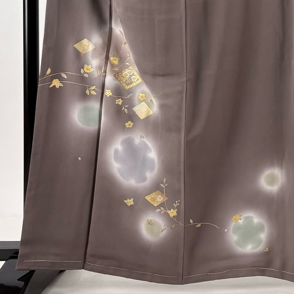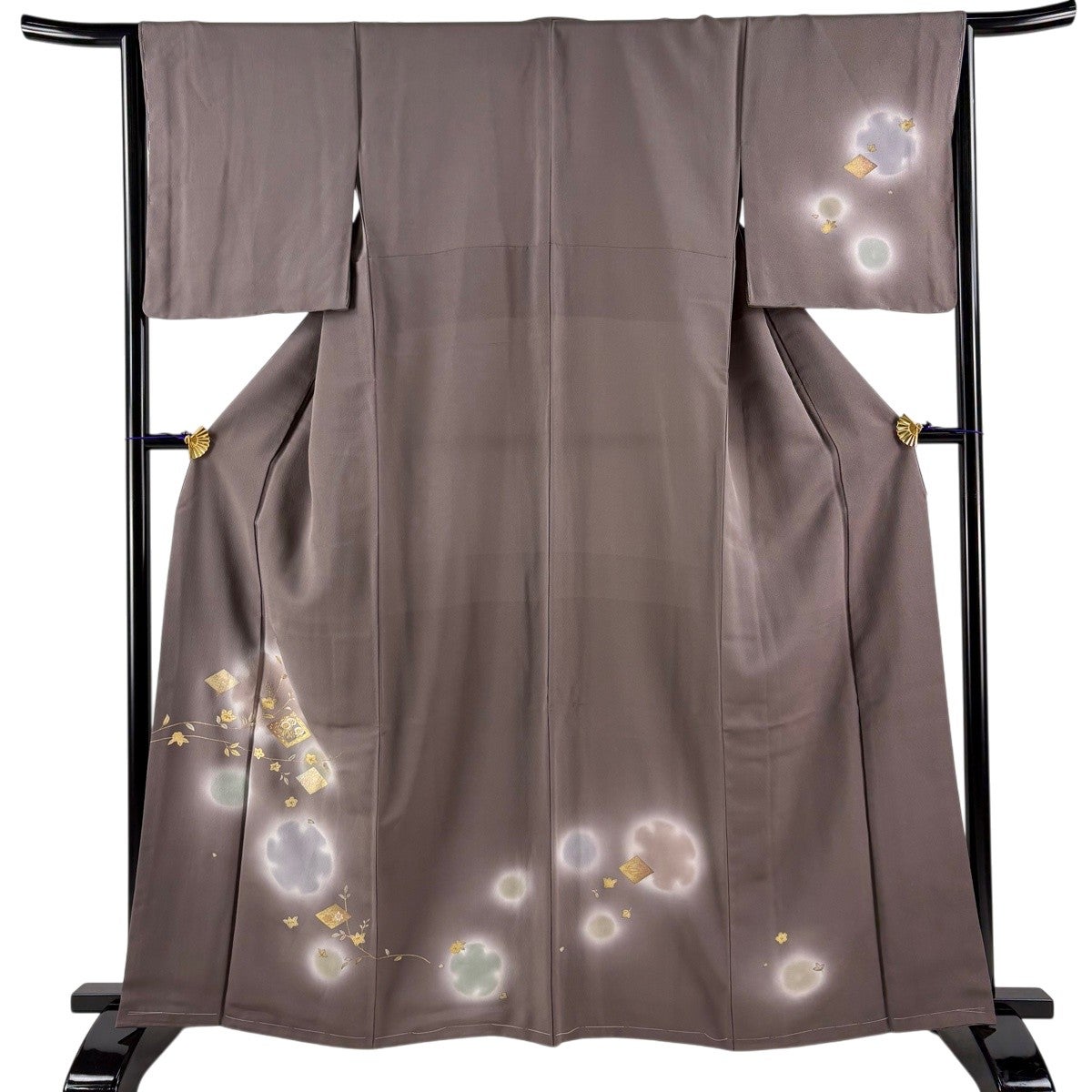 訪問着 身丈161.5cm 裄丈65cm M 単衣 草花 金糸 金彩 薄茶色 正絹 秀品
