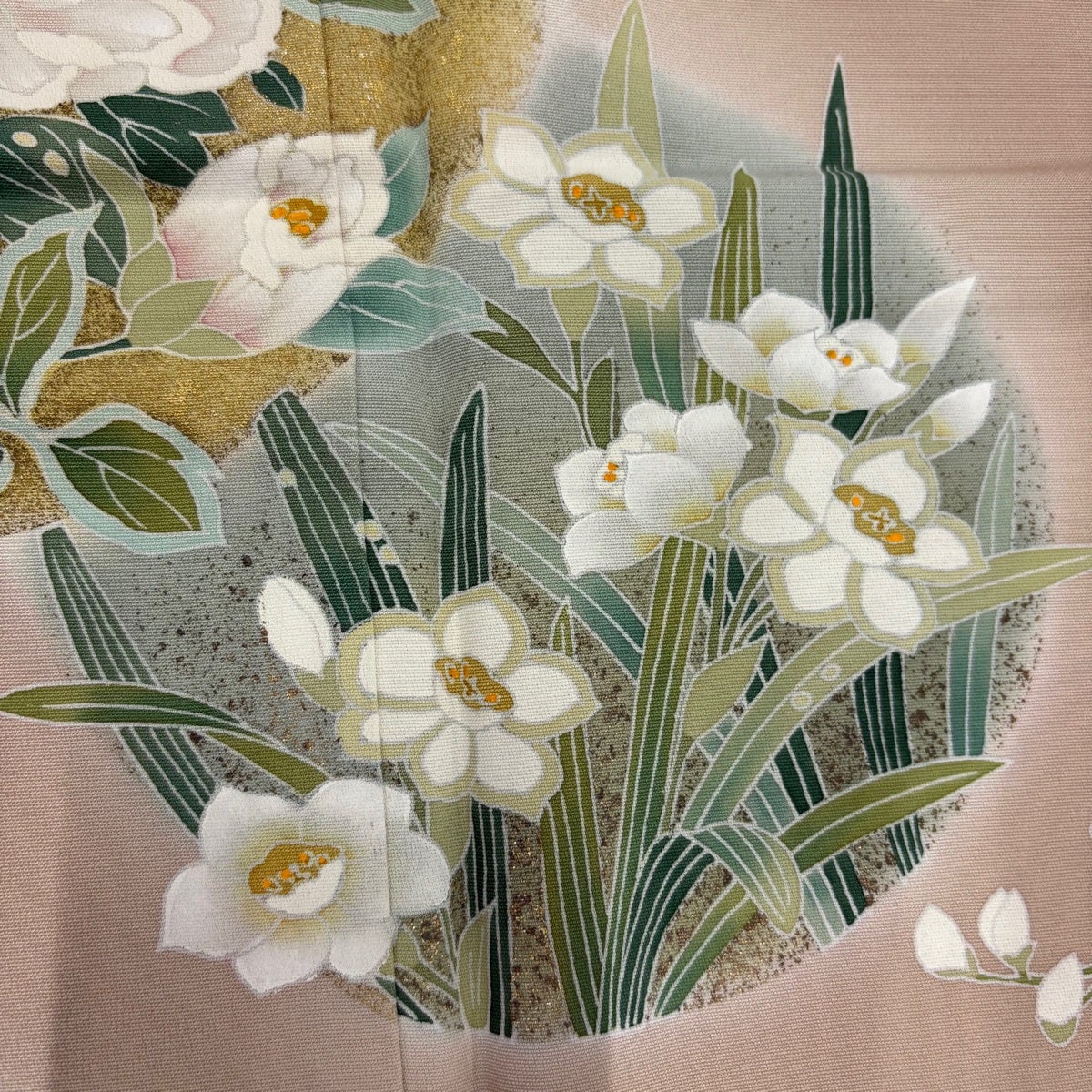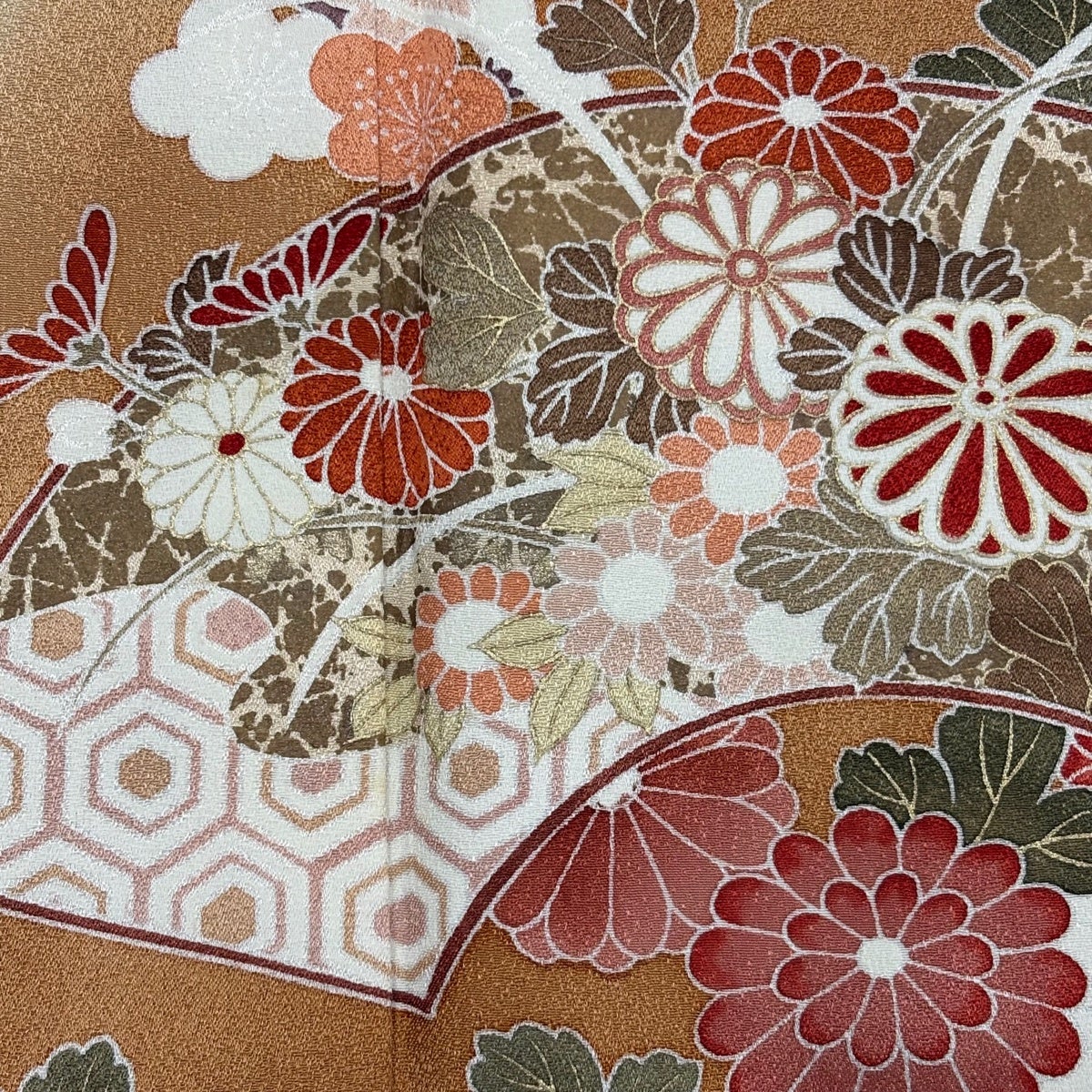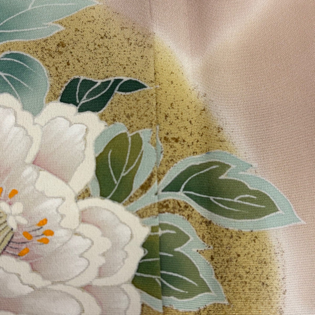訪問着 身丈161.5cm 裄丈65cm M 単衣 草花 金糸 金彩 薄茶色 正絹 秀品