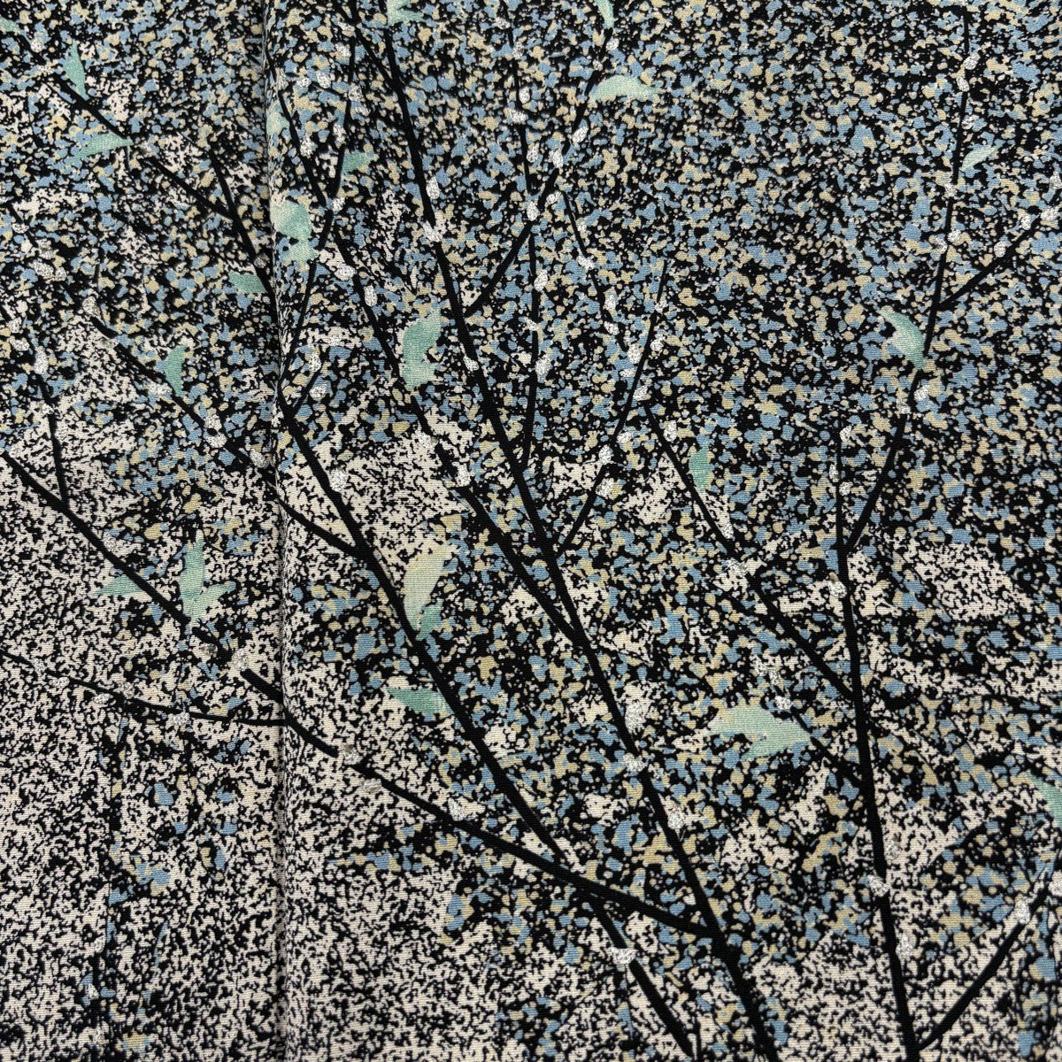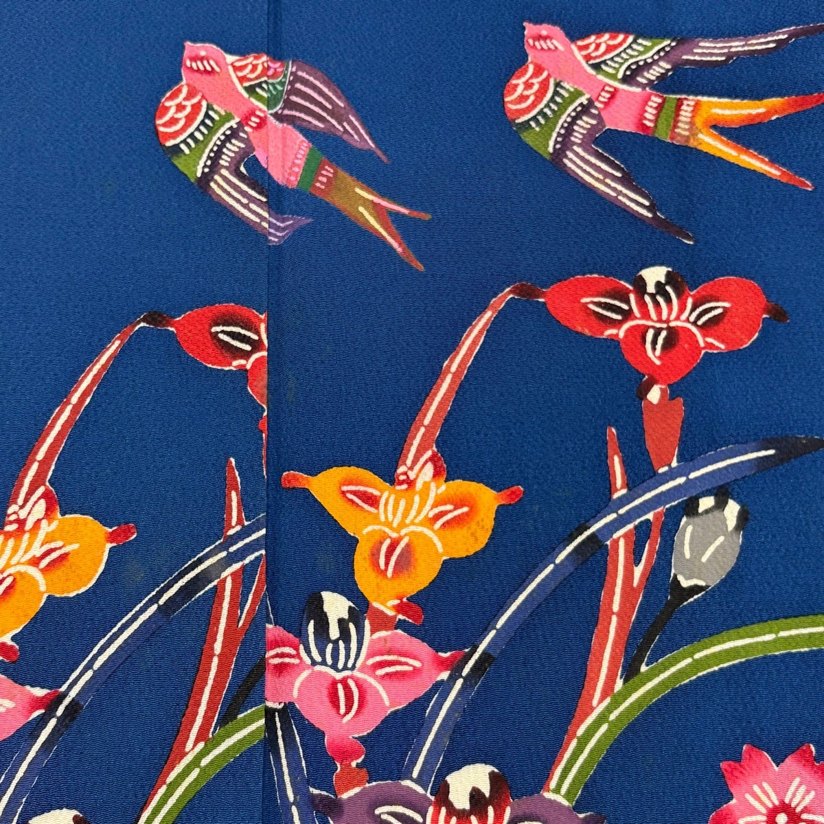 振袖 身丈160cm 裄丈64.5cm M 袷 鳥 草花 縮緬 青 正絹 秀品