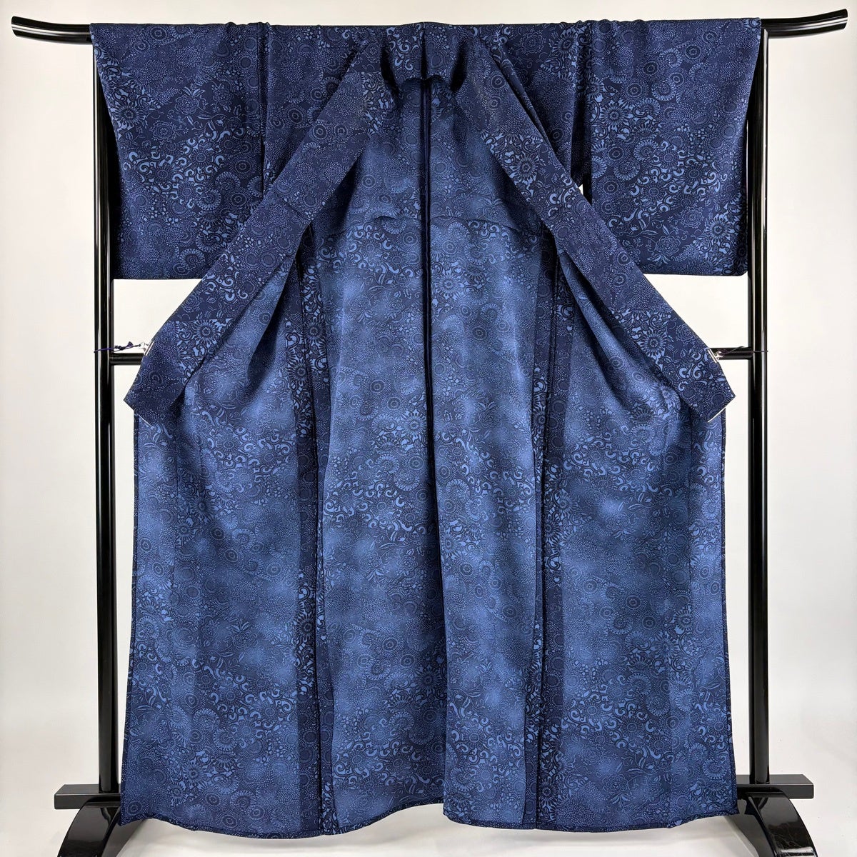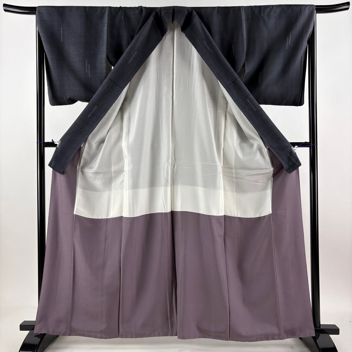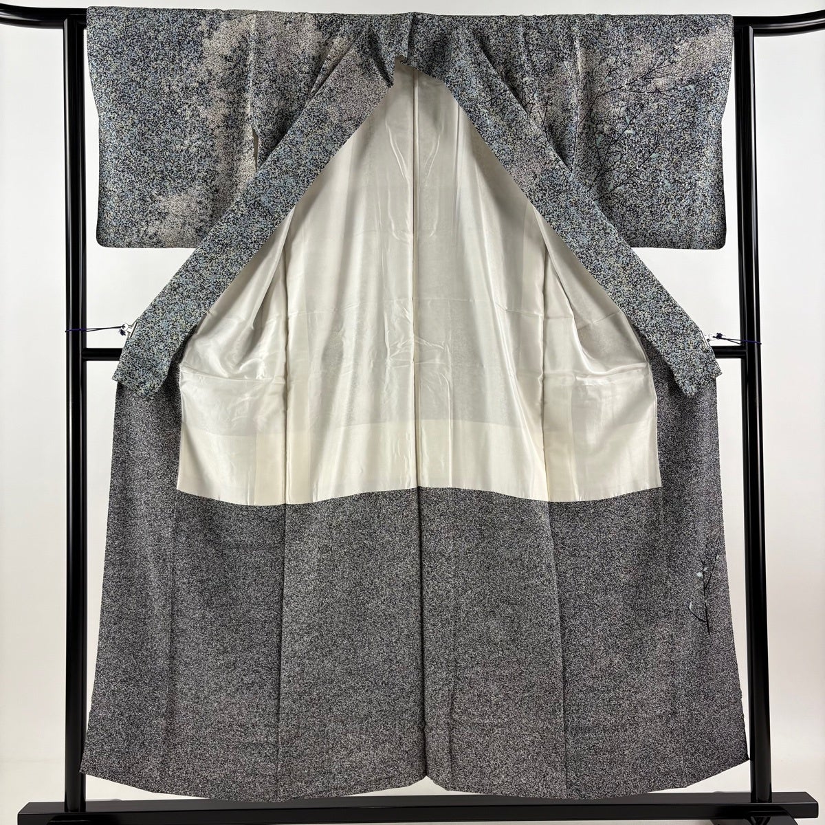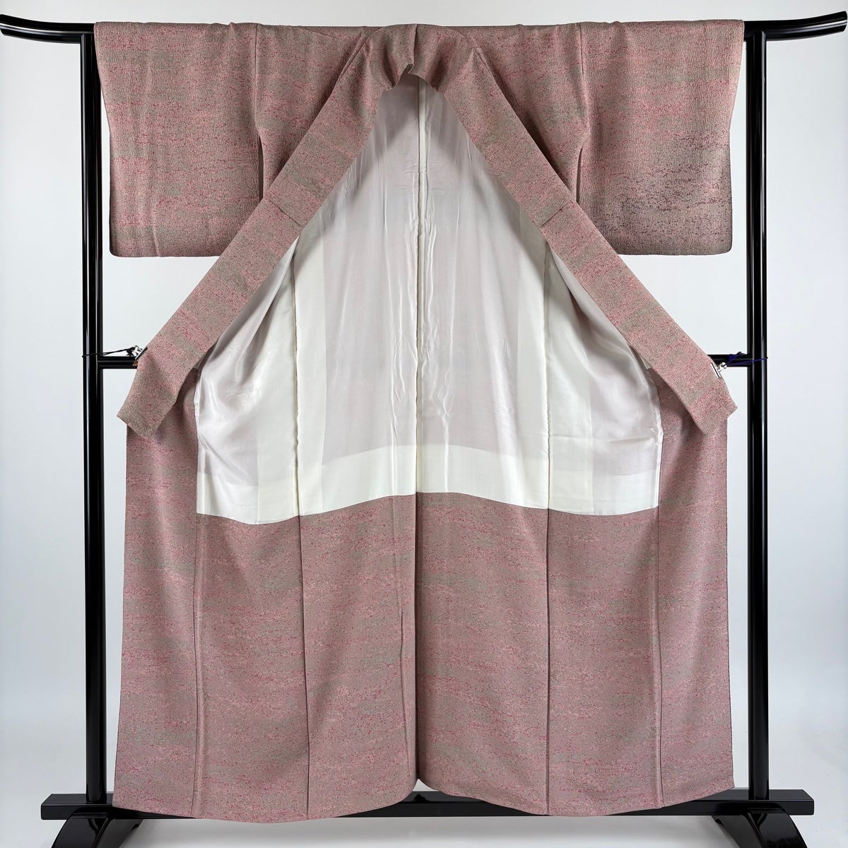 【美品】 小紋 身丈166cm 裄丈68.5cm L 薄物 紗 地紋 灰紫 正絹 秀品