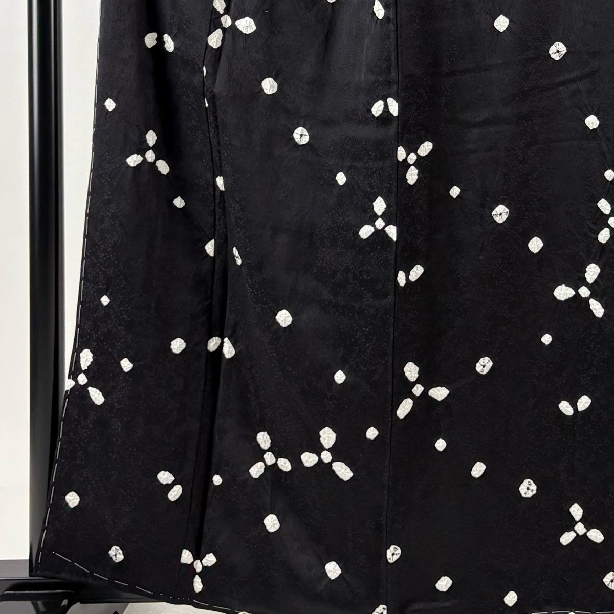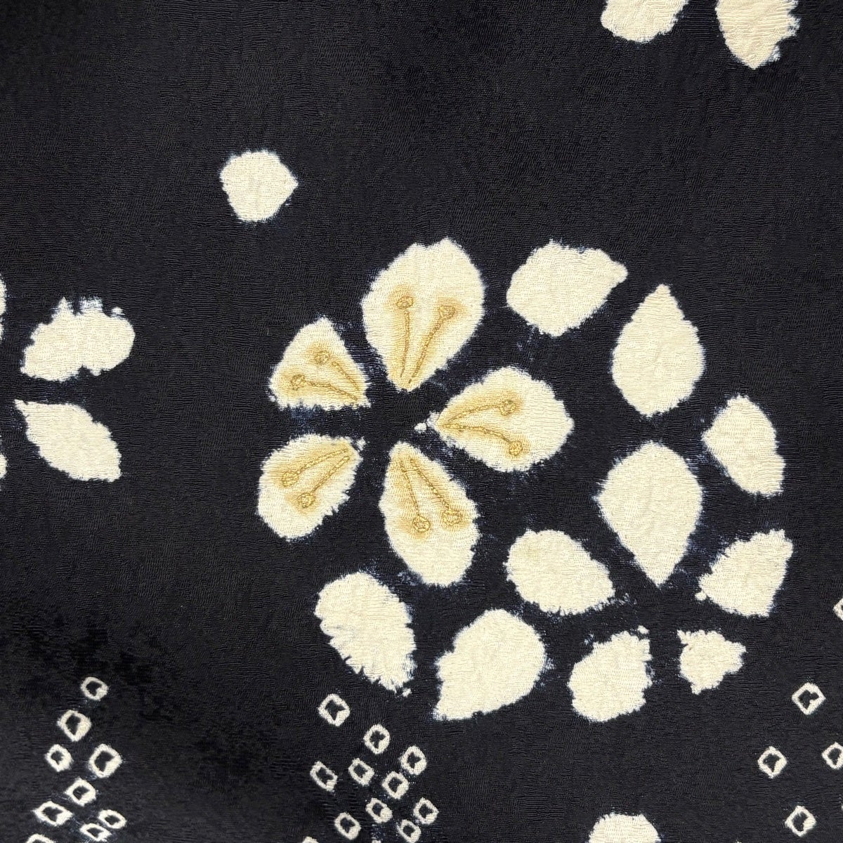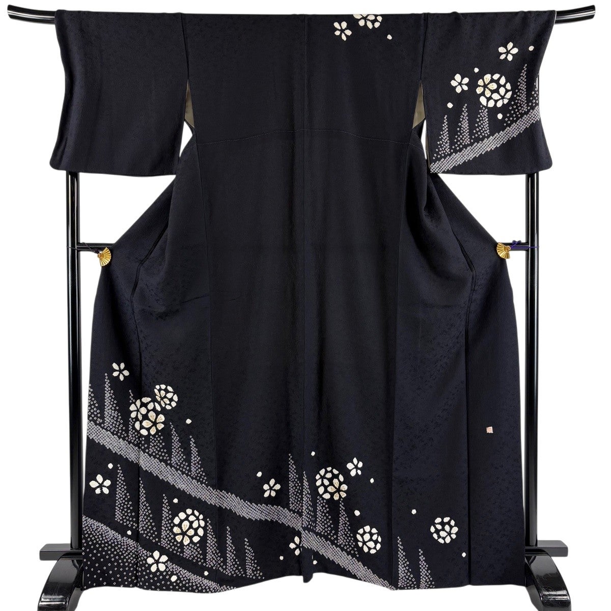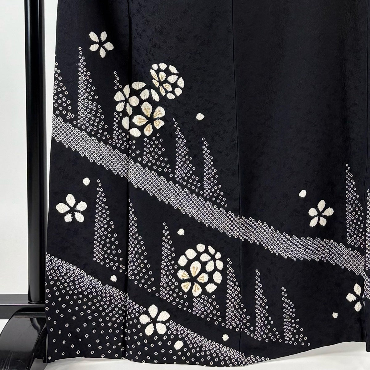 訪問着 身丈166.5cm 裄丈71cm L 袷 落款あり 花 幾何学 絞り 金彩 黒 正絹 秀品