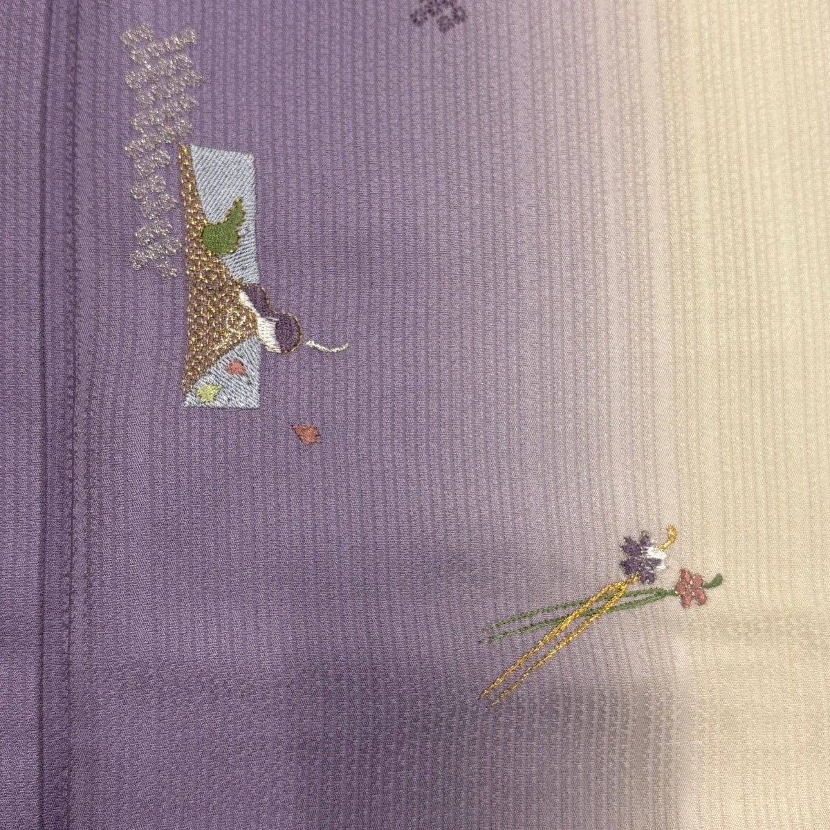【美品】 付下げ 身丈171cm 裄丈67.5cm L 単衣 短冊 簪 刺繍 金銀糸 薄紫 正絹 秀品
