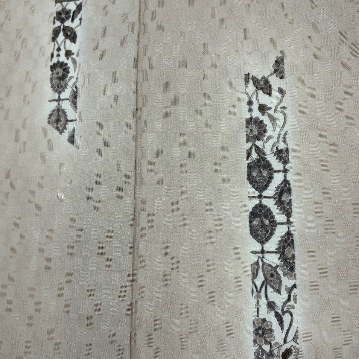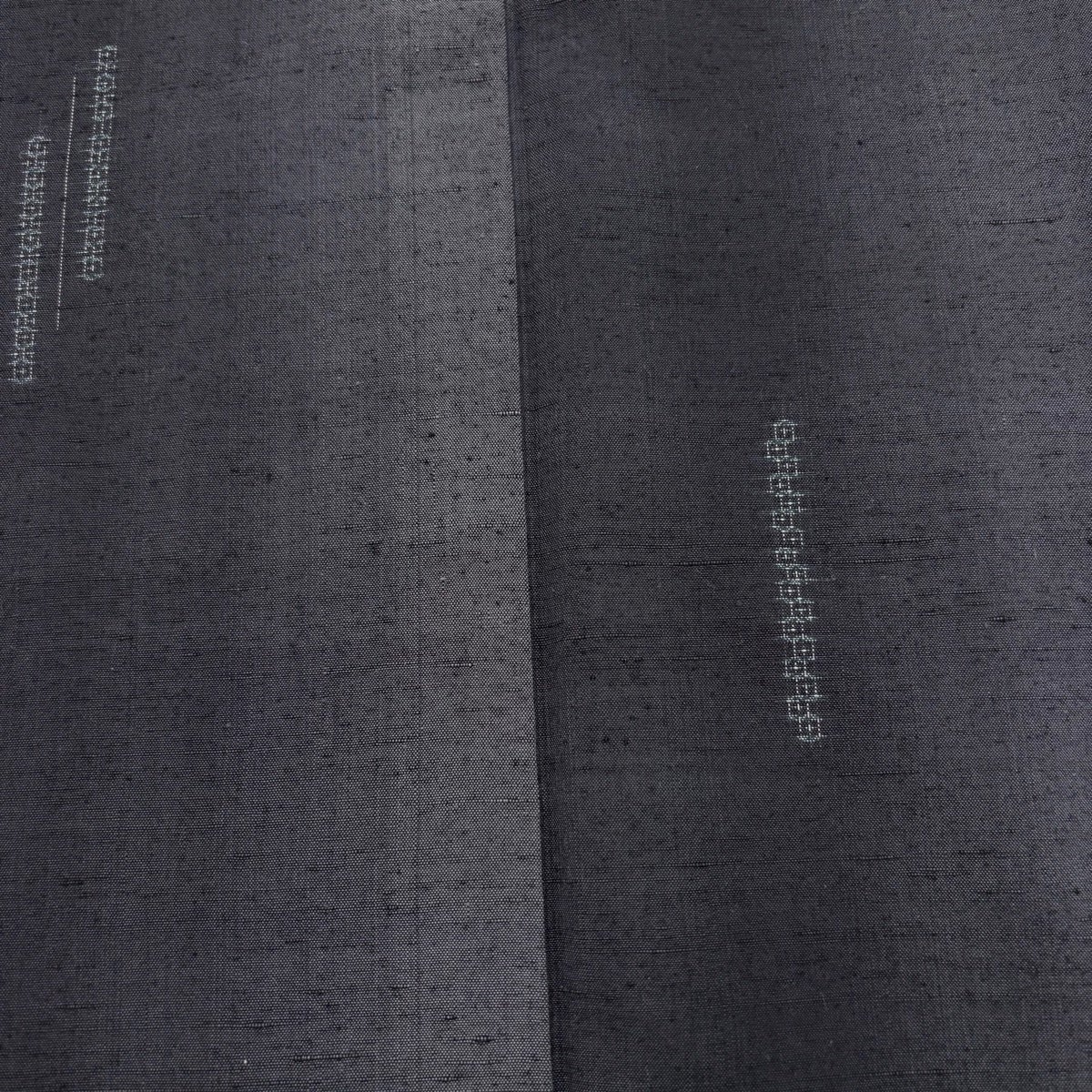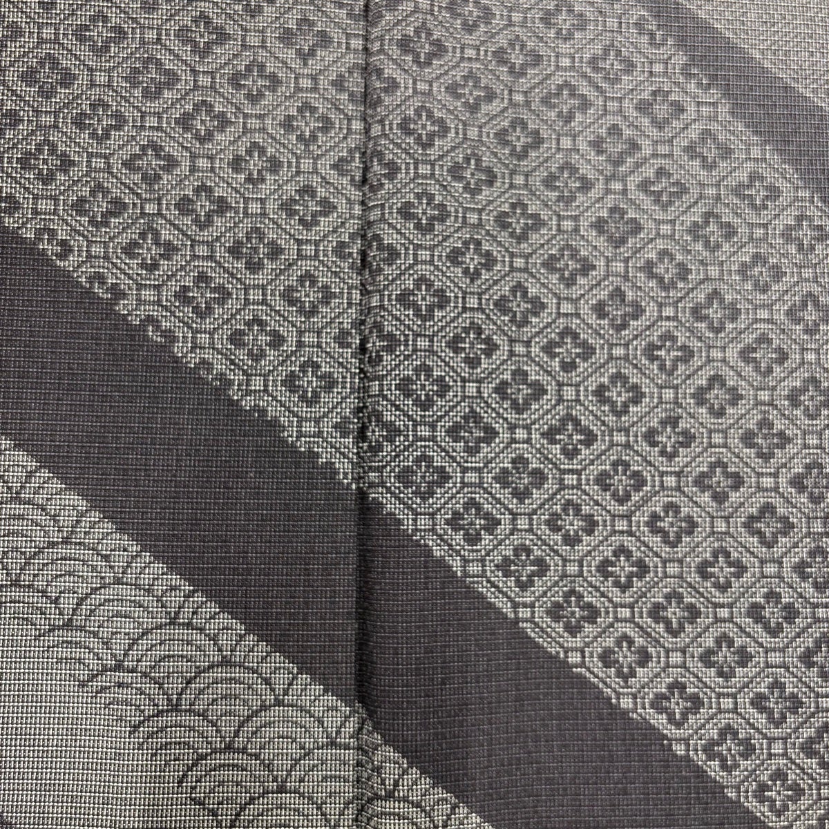 【美品】 小紋 身丈161cm 裄丈65cm M 単衣 紬地 変わり市松 縞 灰色 正絹 秀品