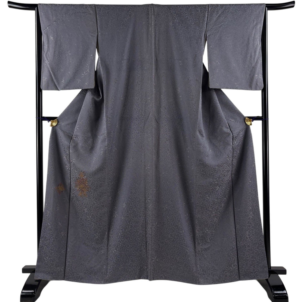 小紋 身丈155.5cm 裄丈64.5cm M 単衣 紬地 葉柄 絞り 灰紫 正絹 秀品