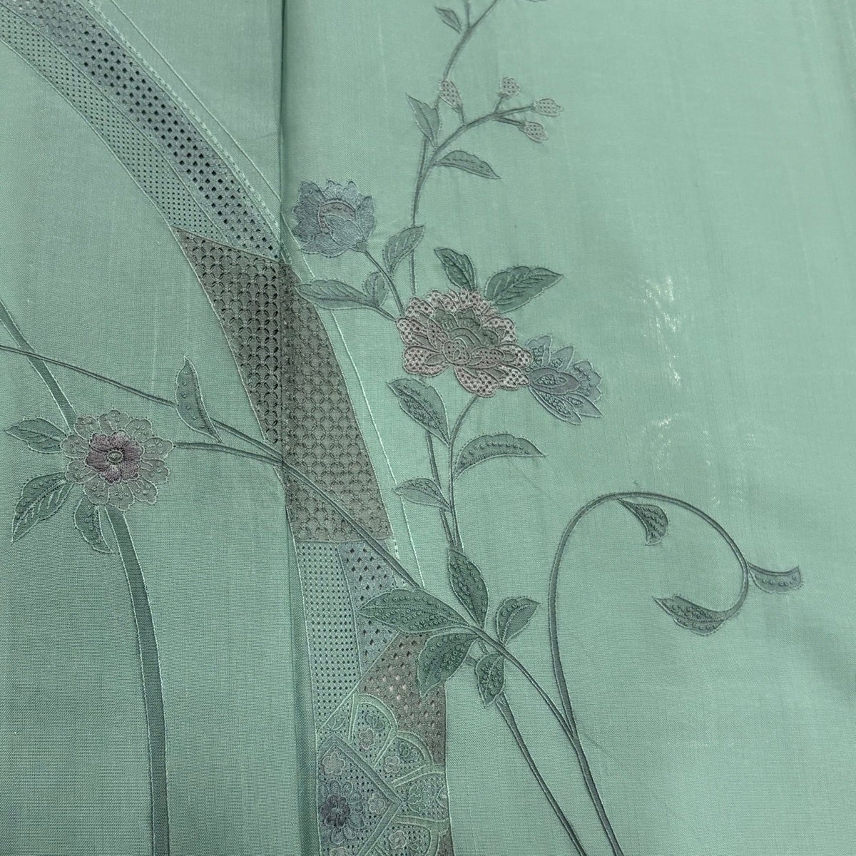 【美品】 小紋 身丈162cm 裄丈67cm M 薄物 絽 草花 薄緑 正絹 秀品