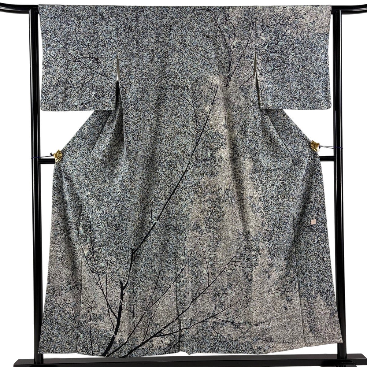 訪問着 身丈158cm 裄丈65.5cm M 単衣 辻が花柄 銀通し 金彩 青灰色 正絹 秀品