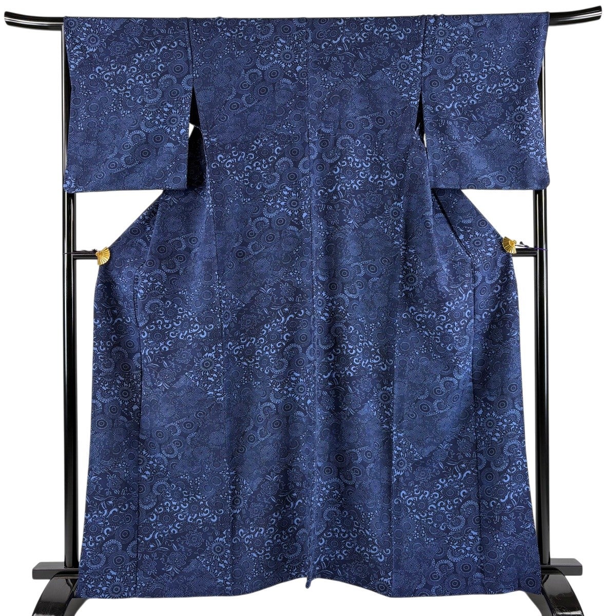 男着物 身丈156.5cm 裄丈73cm L 袷 アンサンブル 大島紬地 証紙あり 亀甲絣 紺色 正絹 秀品