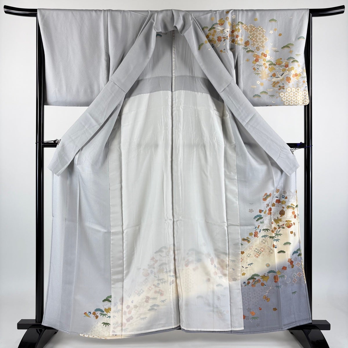 付下げ 身丈155cm 裄丈62.5cm S 単衣 鳳凰 華文 刺繍 ぼかし 灰紫 正絹 秀品