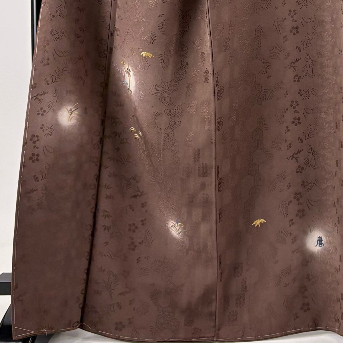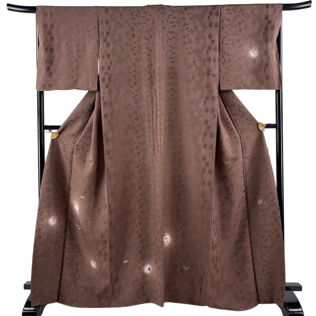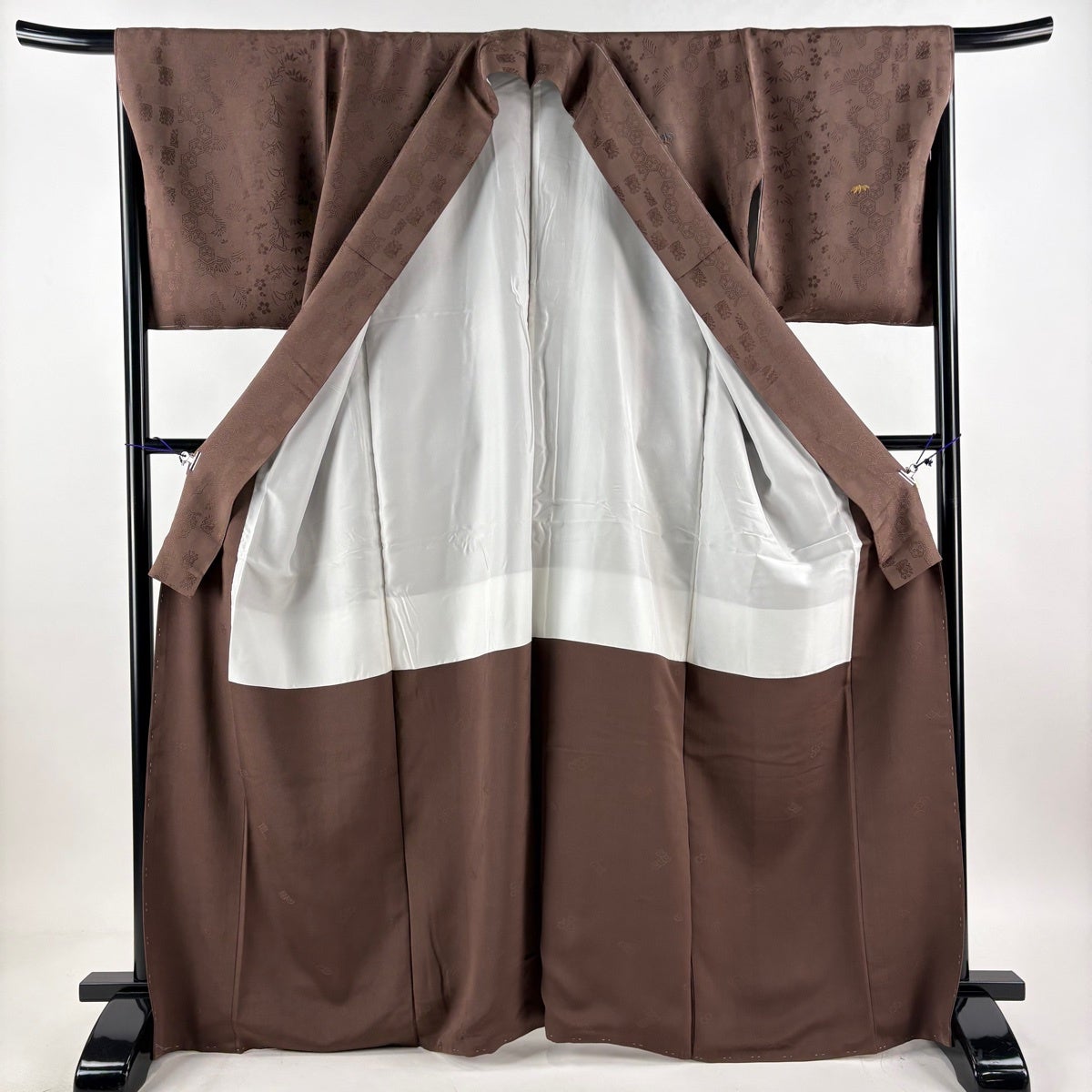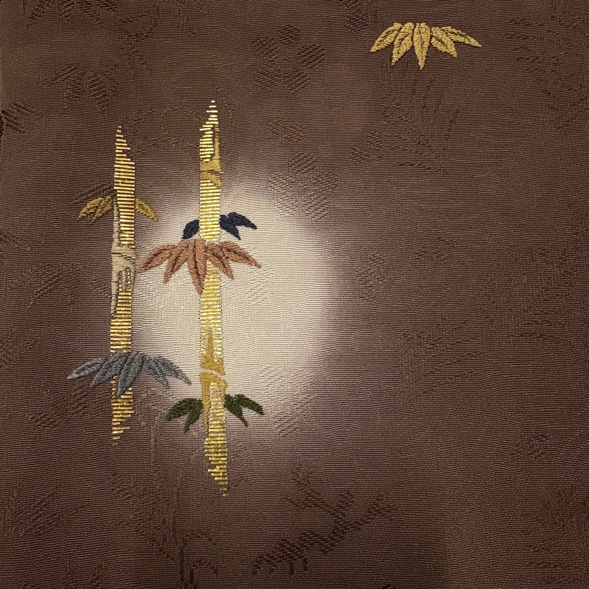 30%OFF 付下げ 身丈167cm 裄丈67cm M 袷 落款あり 竹 草花 刺繍 箔 焦茶色 正絹 秀品 K30