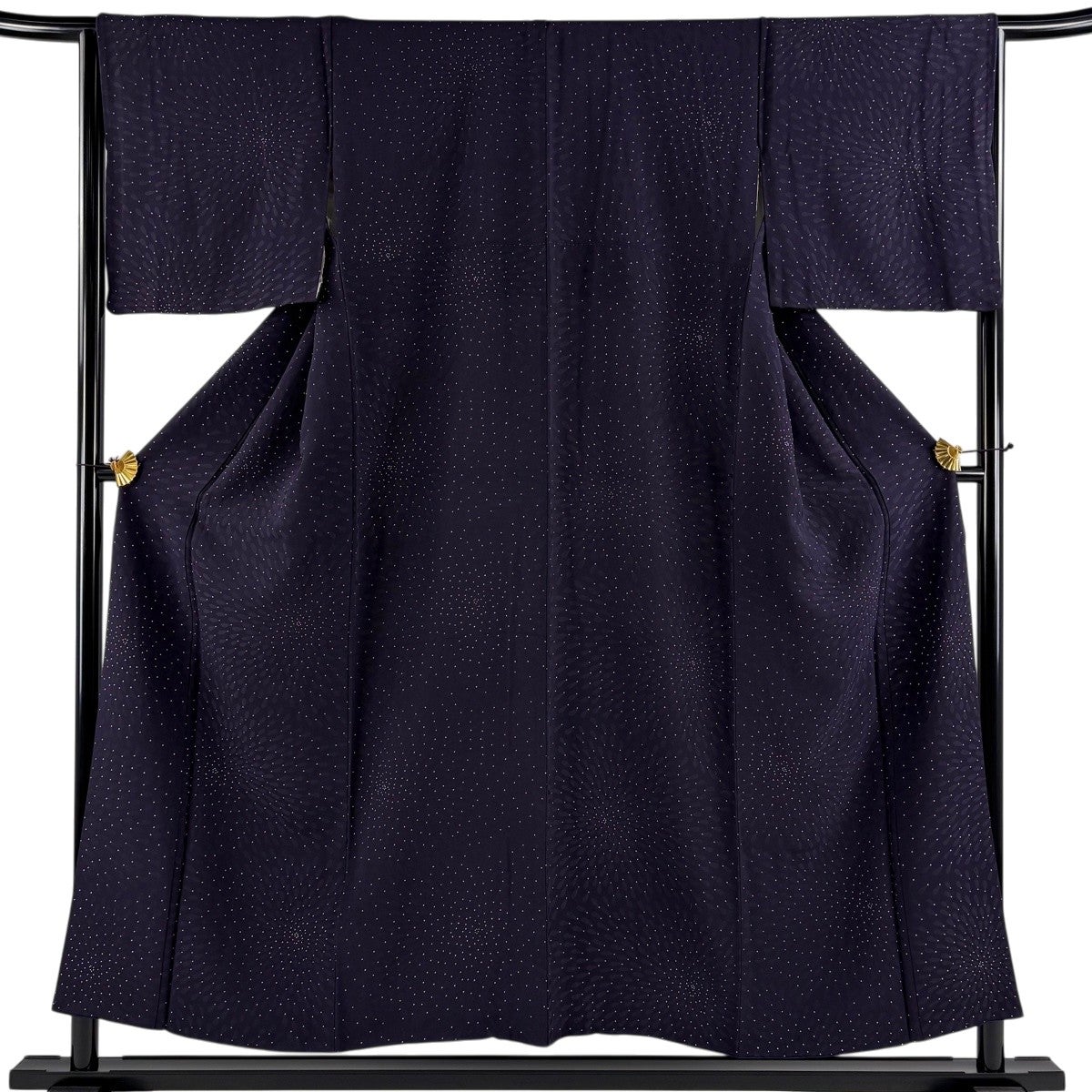 30%OFF 小紋 身丈151cm 裄丈65.5cm M 袷 地紋 菊 濃紫 正絹 秀品 K30