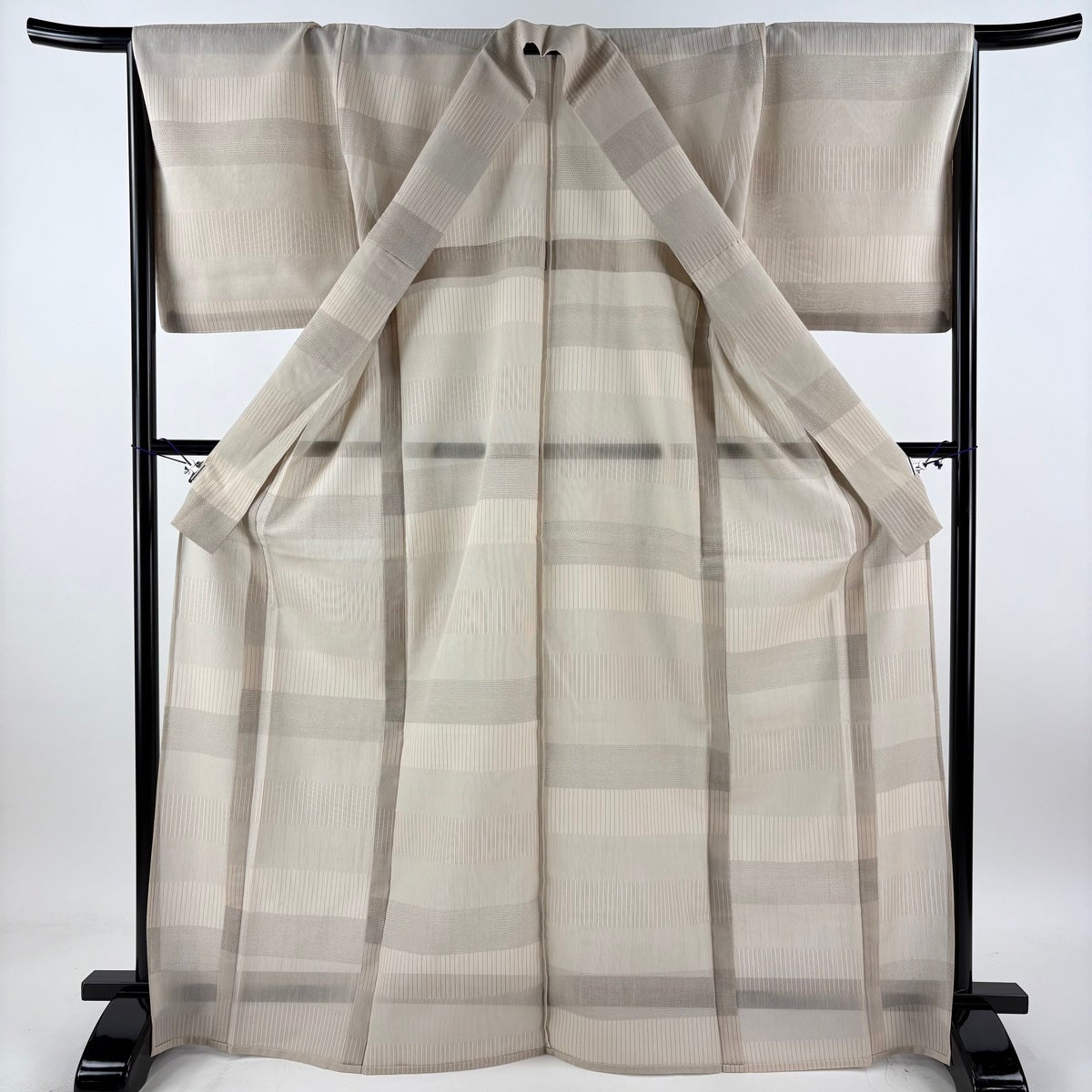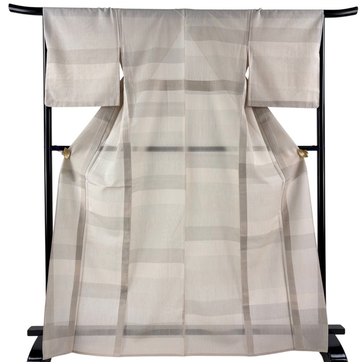 小紋 身丈160cm 裄丈66cm M 薄物 蝶 縦縞 灰白 化繊 秀品