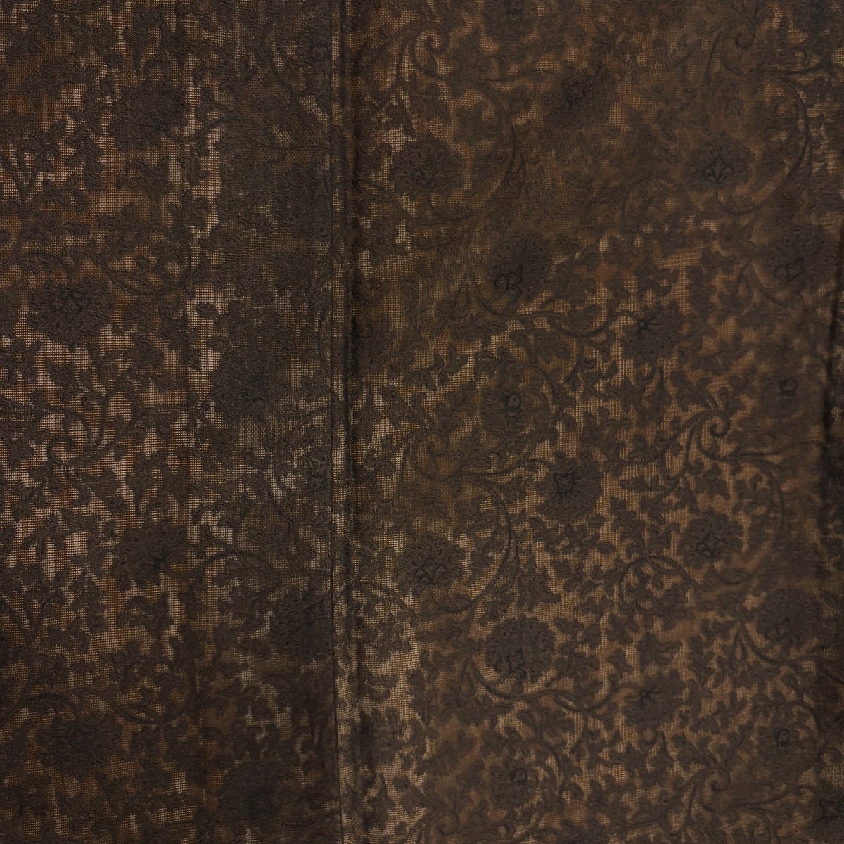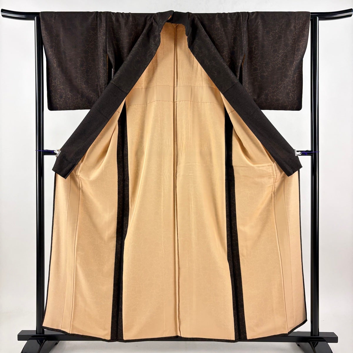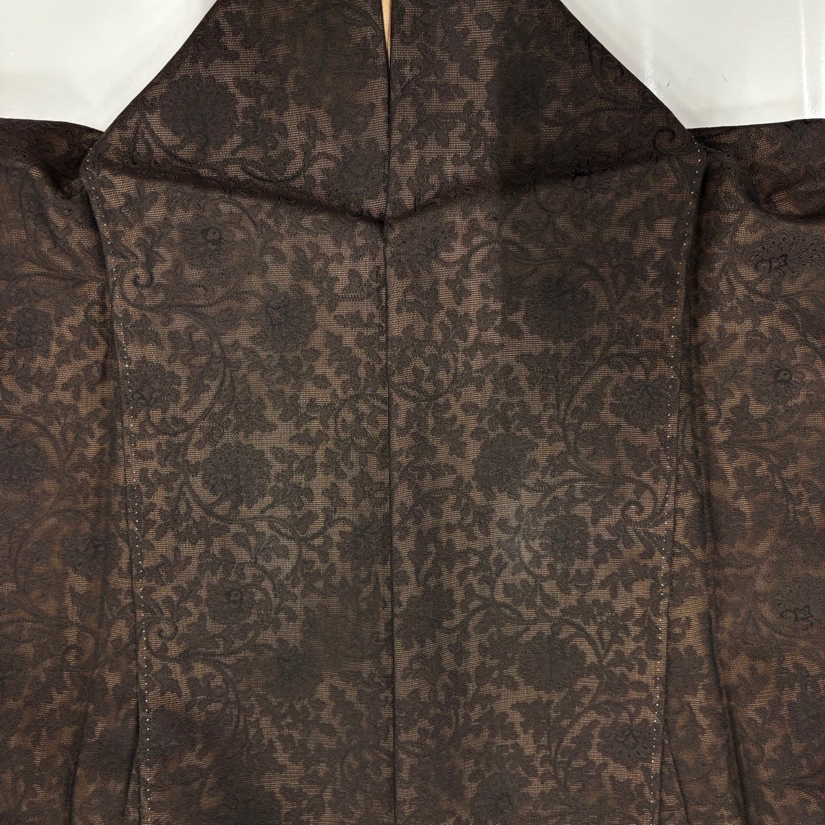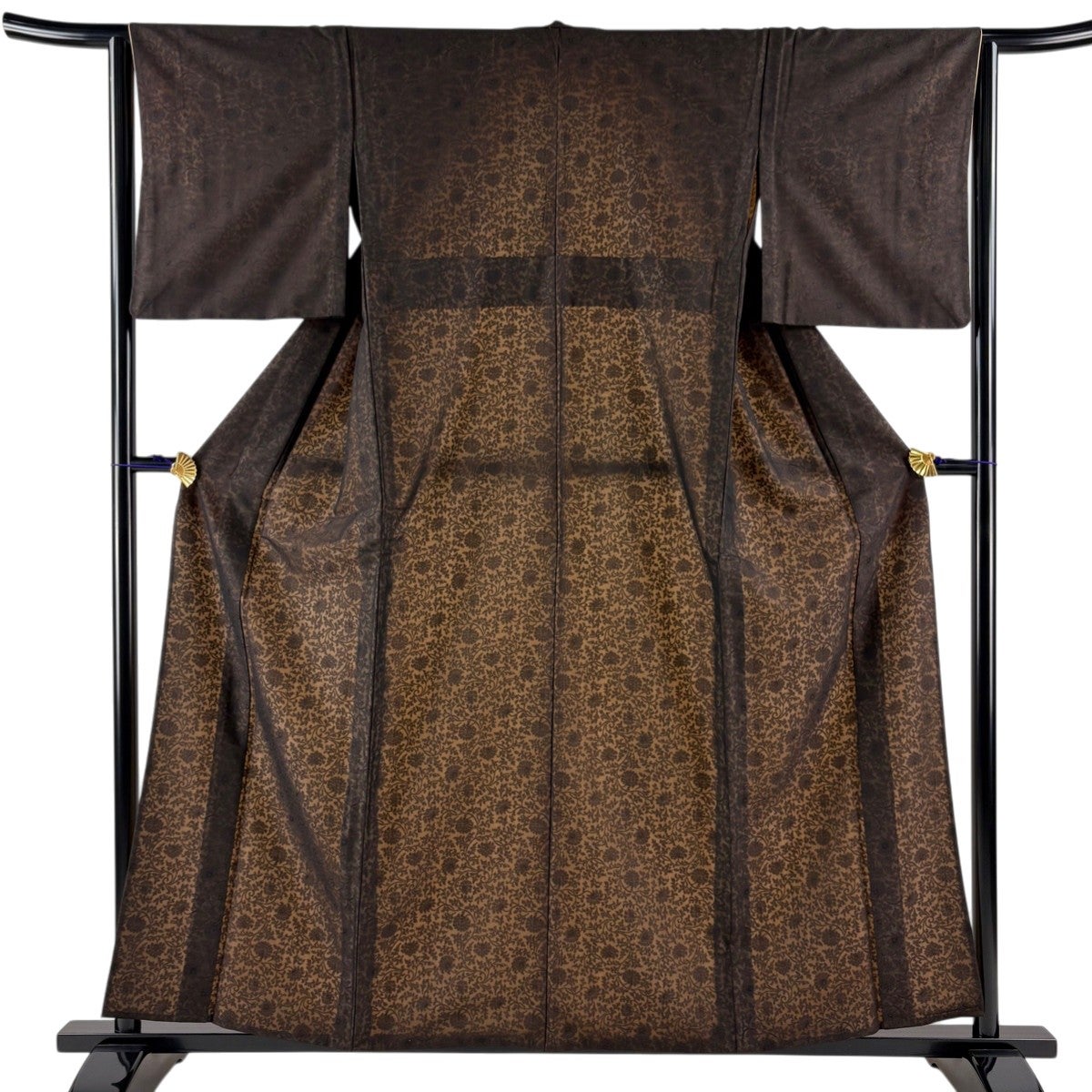 【美品】 小紋 身丈159cm 裄丈63cm S 袷 紋紗 花唐草 焦茶色 正絹 名品