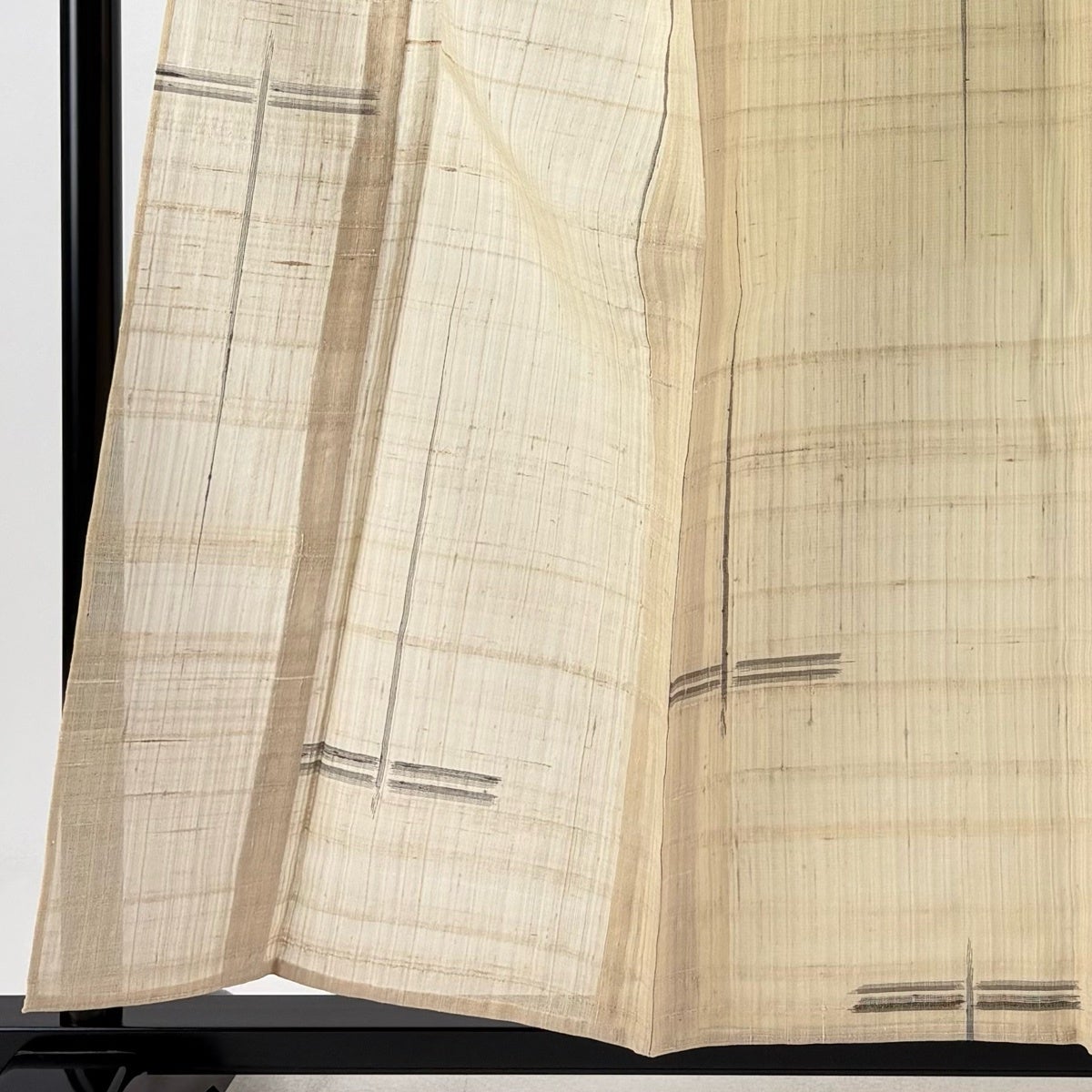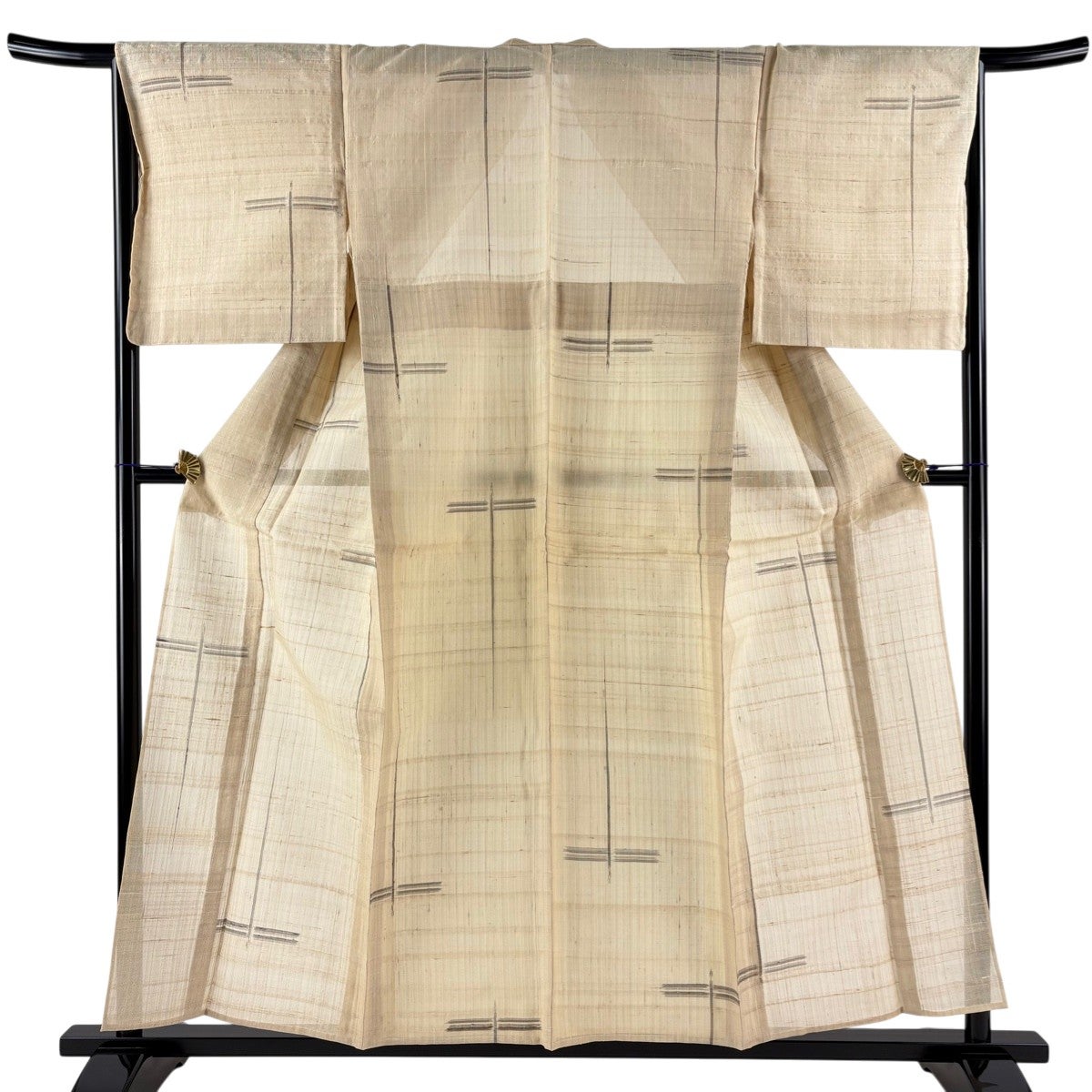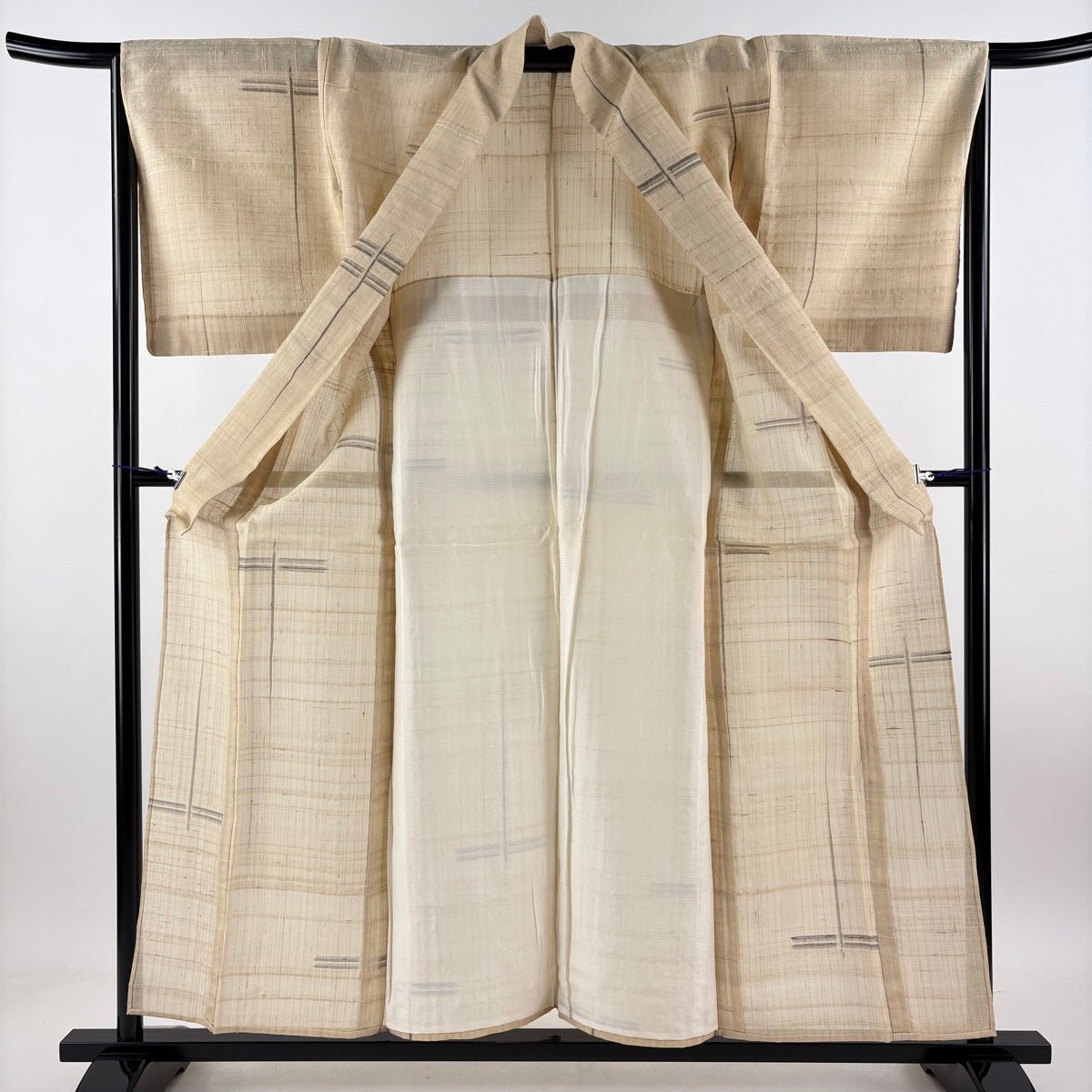 【美品】 紬 身丈156.5cm 裄丈65.5cm M 薄物 夏紬 幾何学 ベージュ 正絹 名品