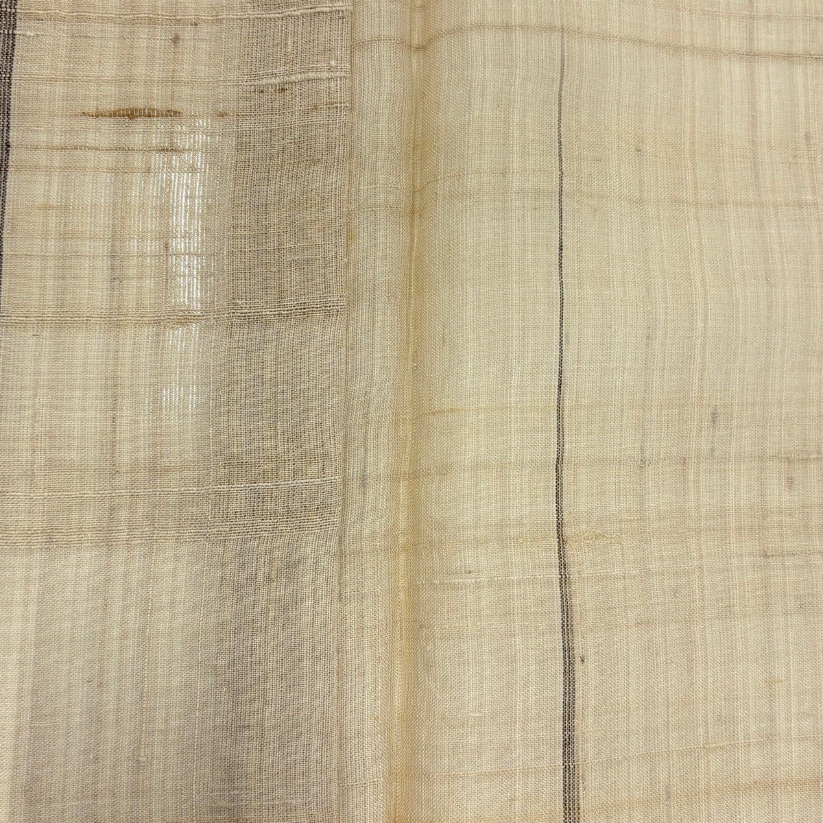 【美品】 紬 身丈169cm 裄丈67cm M 薄物 夏紬 亀甲絣 縞 薄茶色 正絹 名品