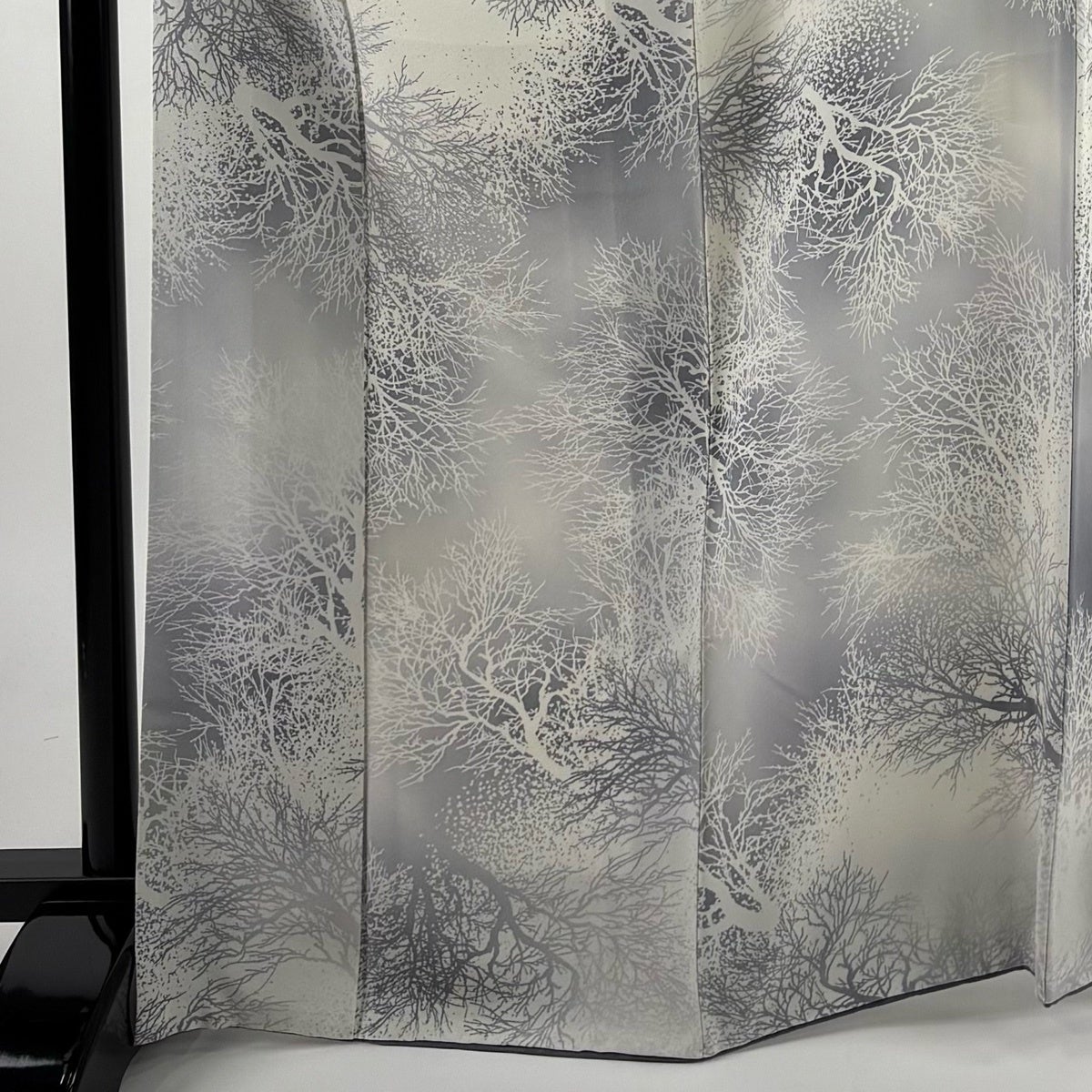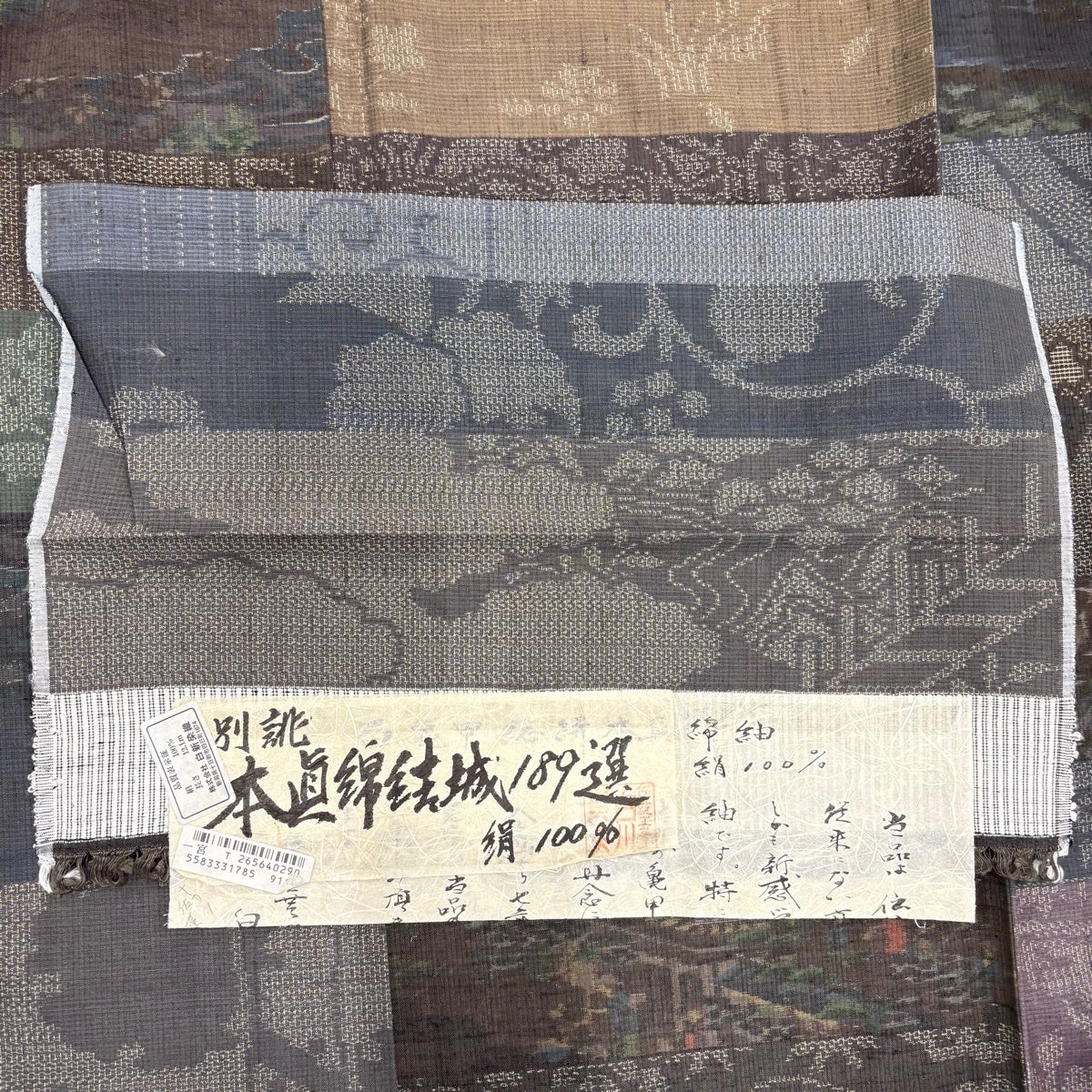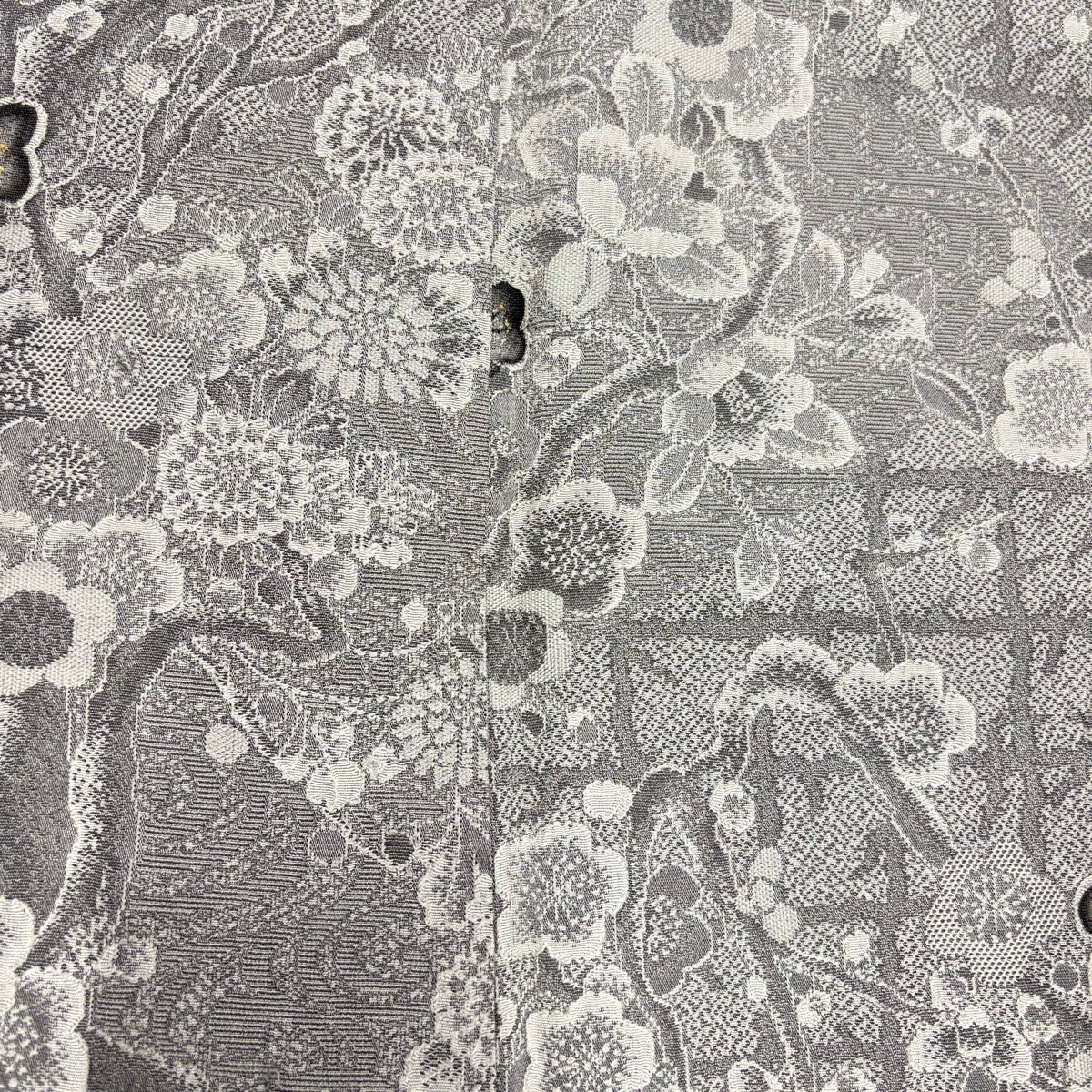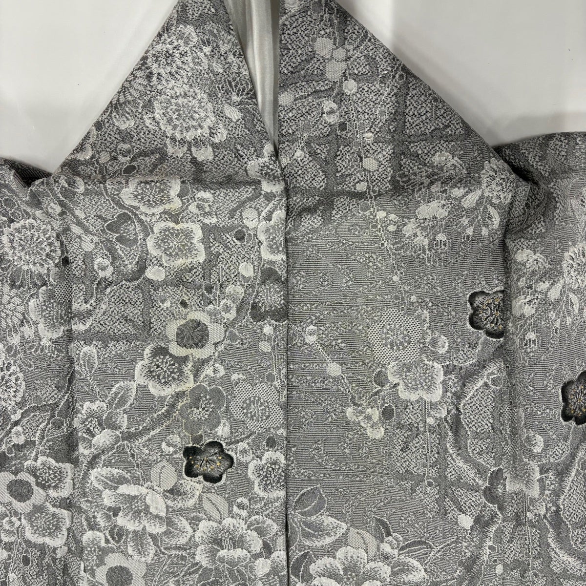 小紋 身丈153cm 裄丈64cm M 袷 梅 格子 金彩 紋意匠 灰色 正絹 名品