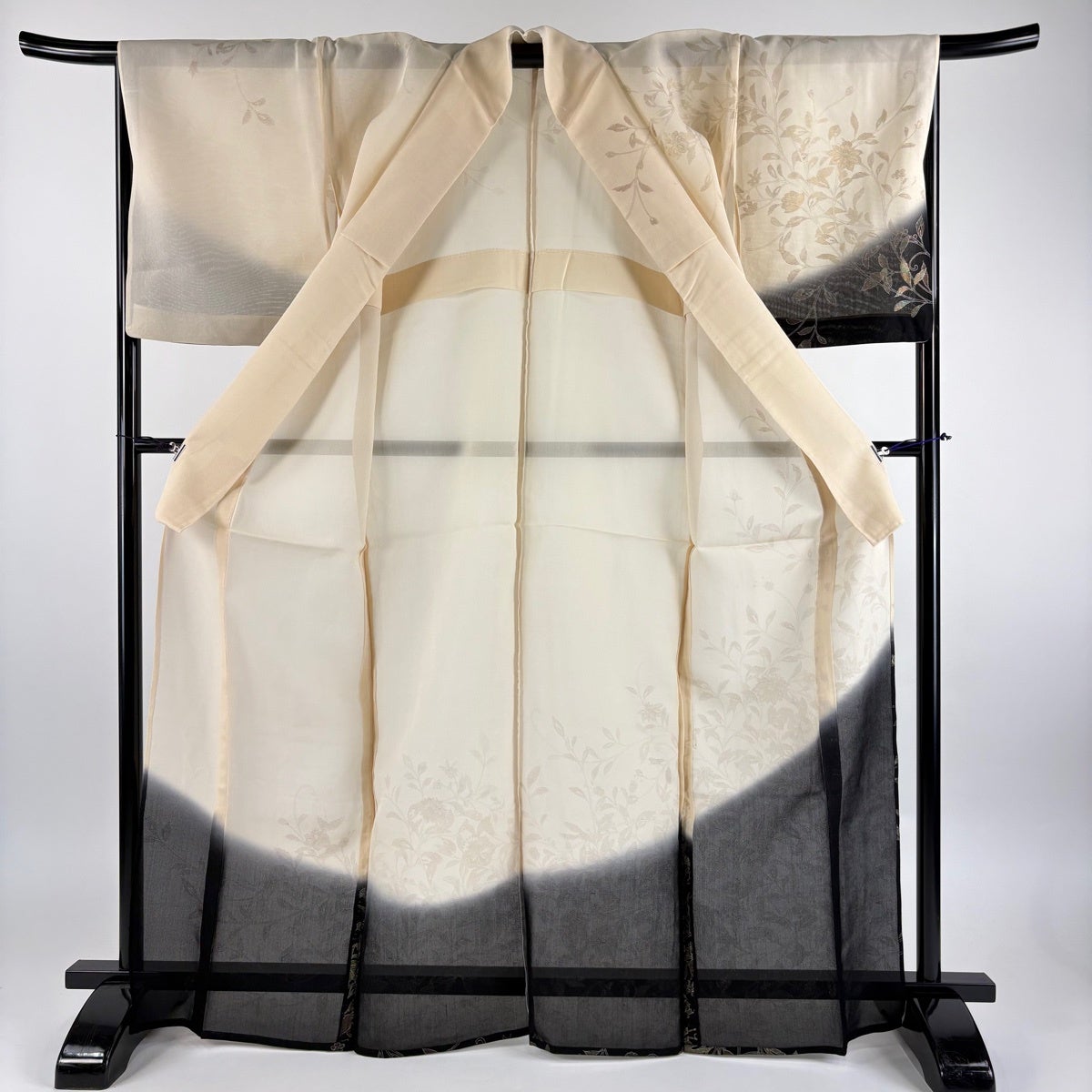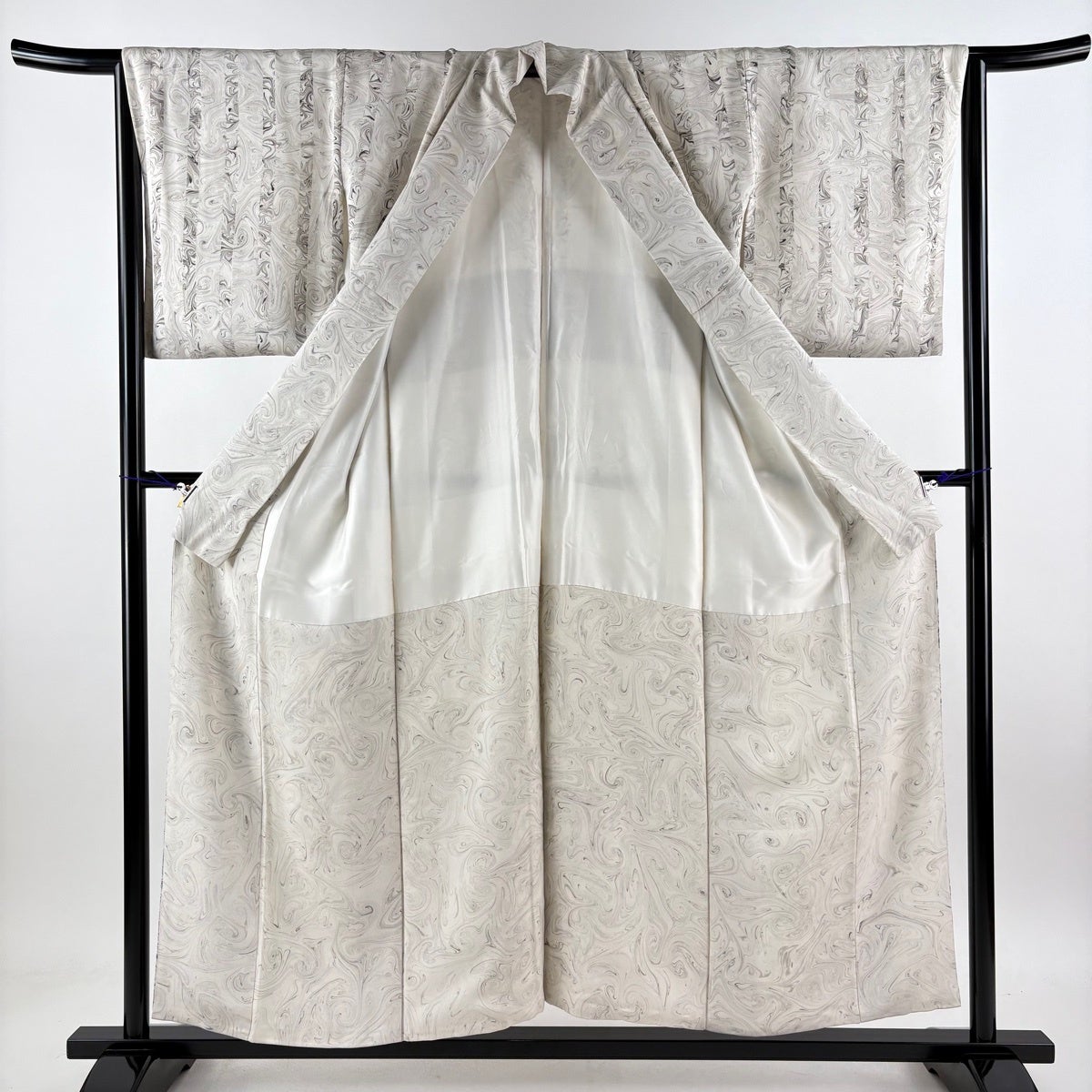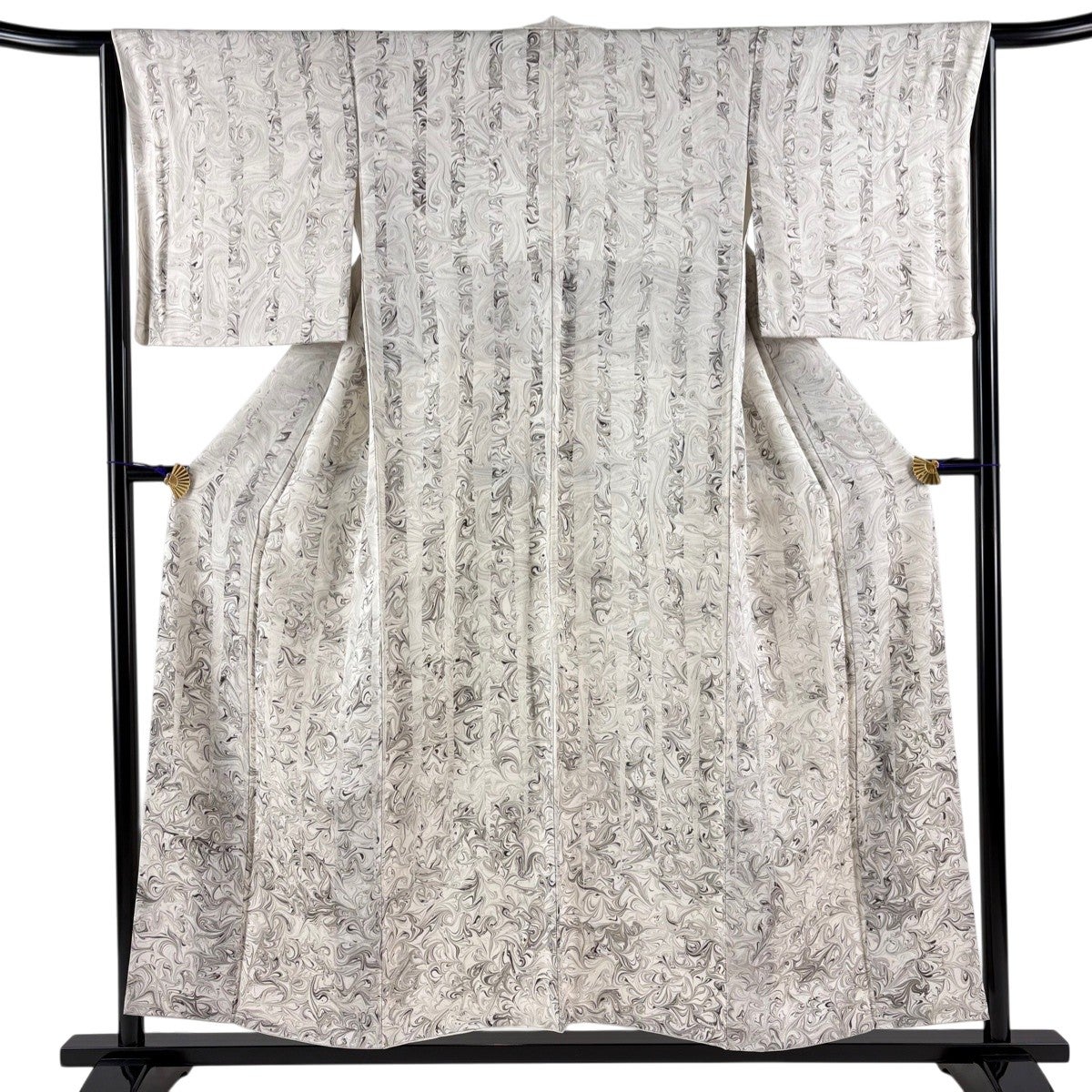 付下げ 身丈154.5cm 裄丈63.5cm S 袷 縦縞 墨流し クリーム 正絹 名品