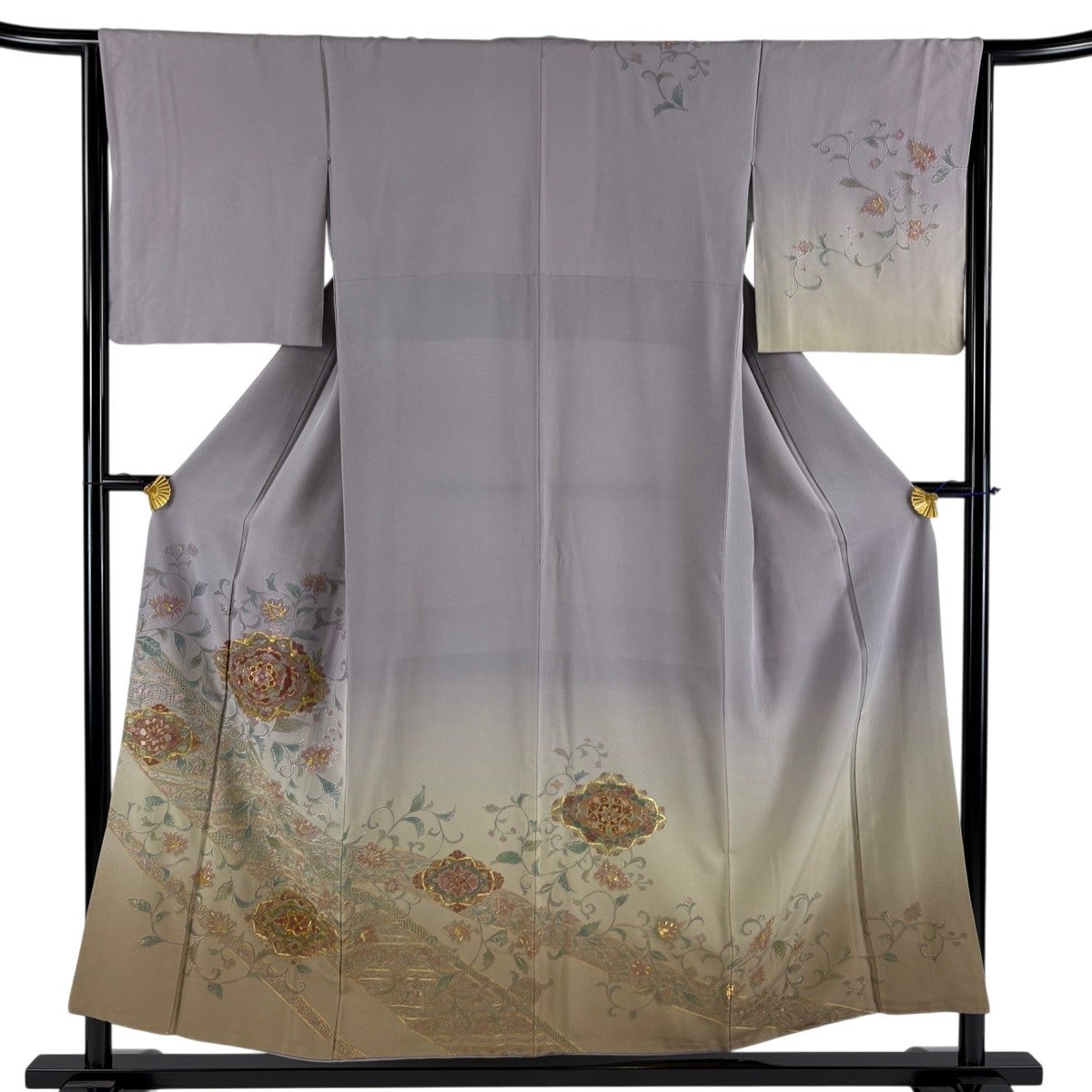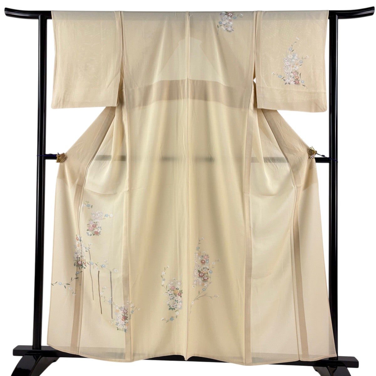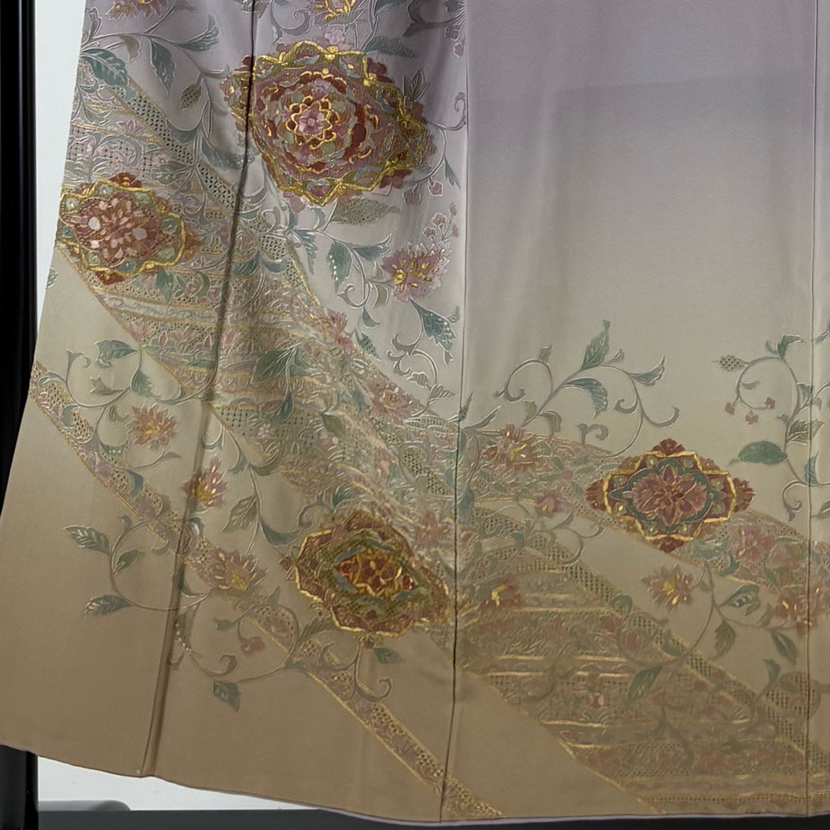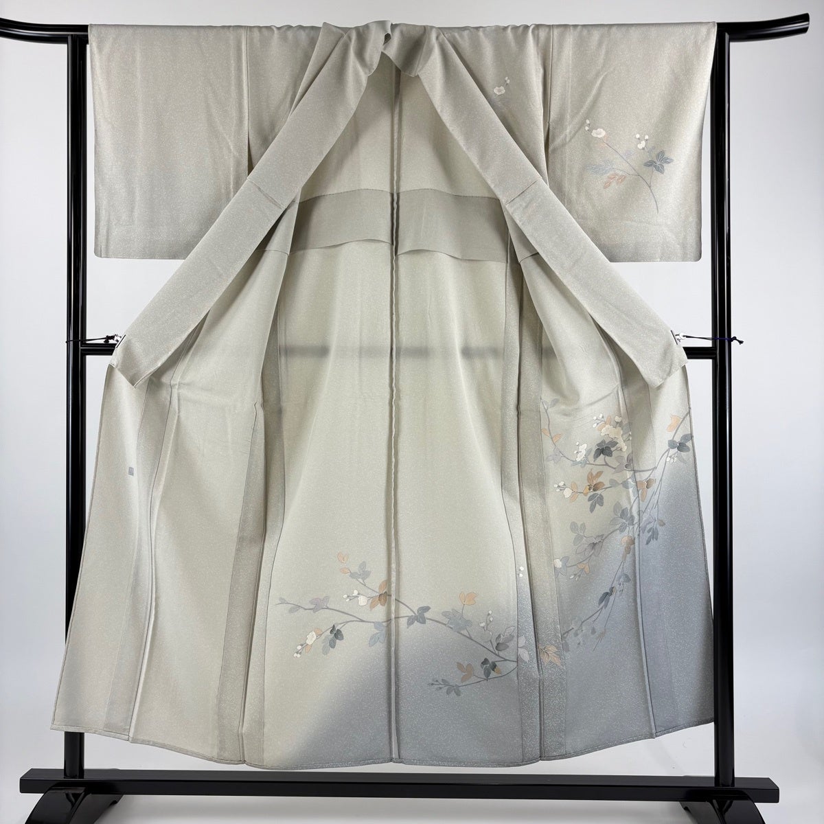 付下げ 身丈153cm 裄丈63cm S 単衣 鳳凰 草花 金銀彩 ベージュ 正絹 秀品