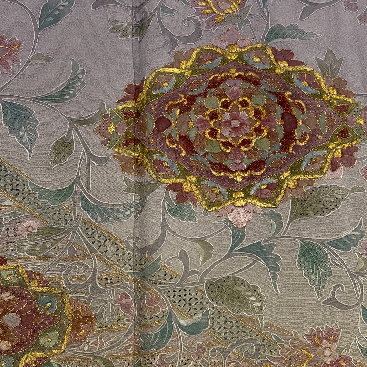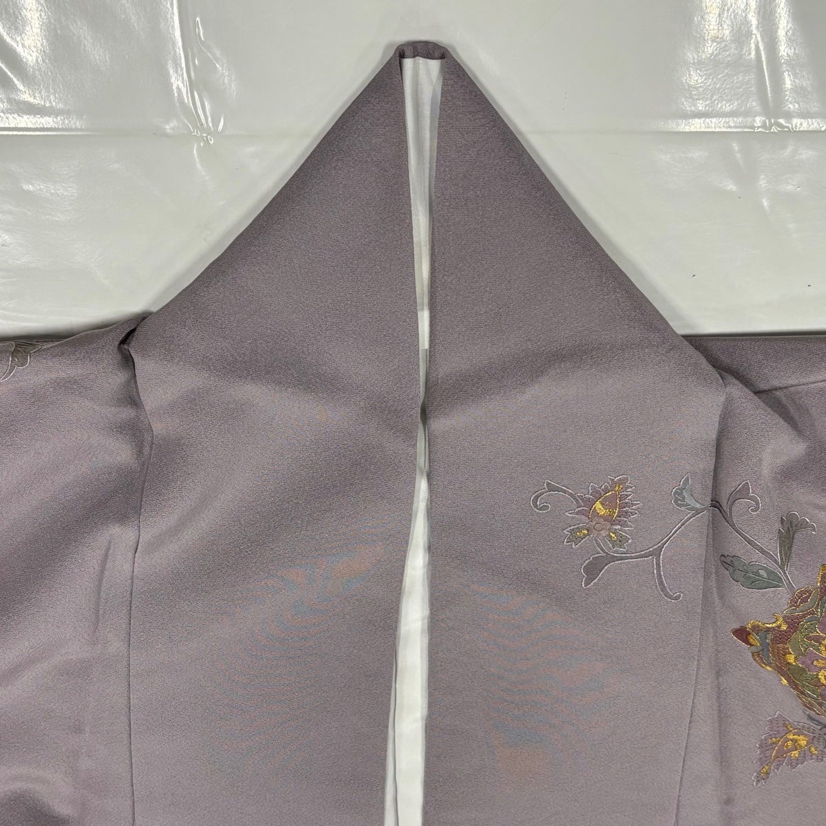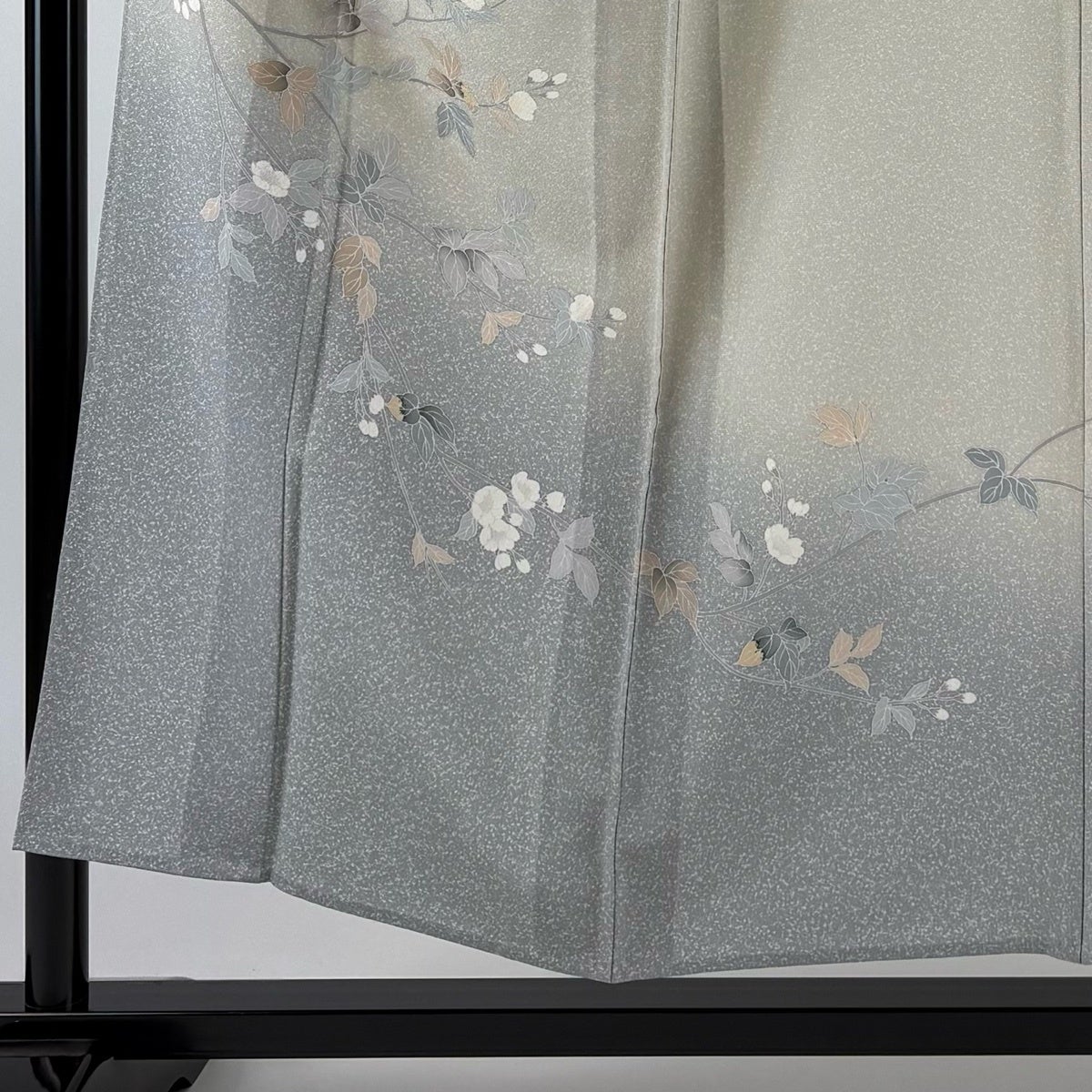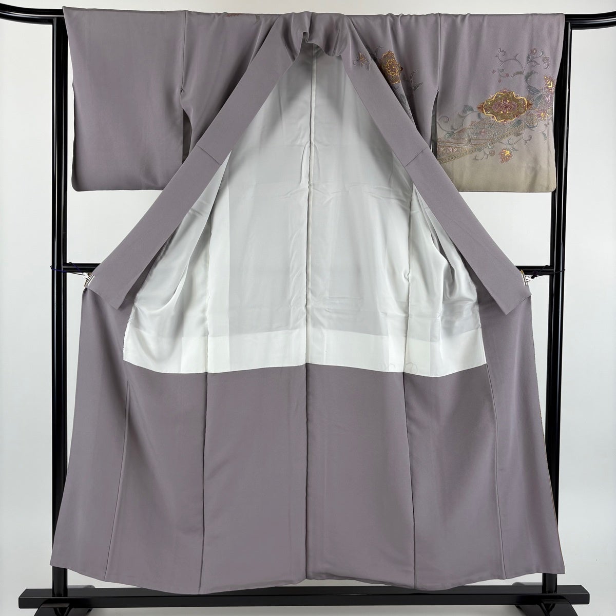 付下げ 身丈153cm 裄丈63cm S 単衣 鳳凰 草花 金銀彩 ベージュ 正絹 秀品