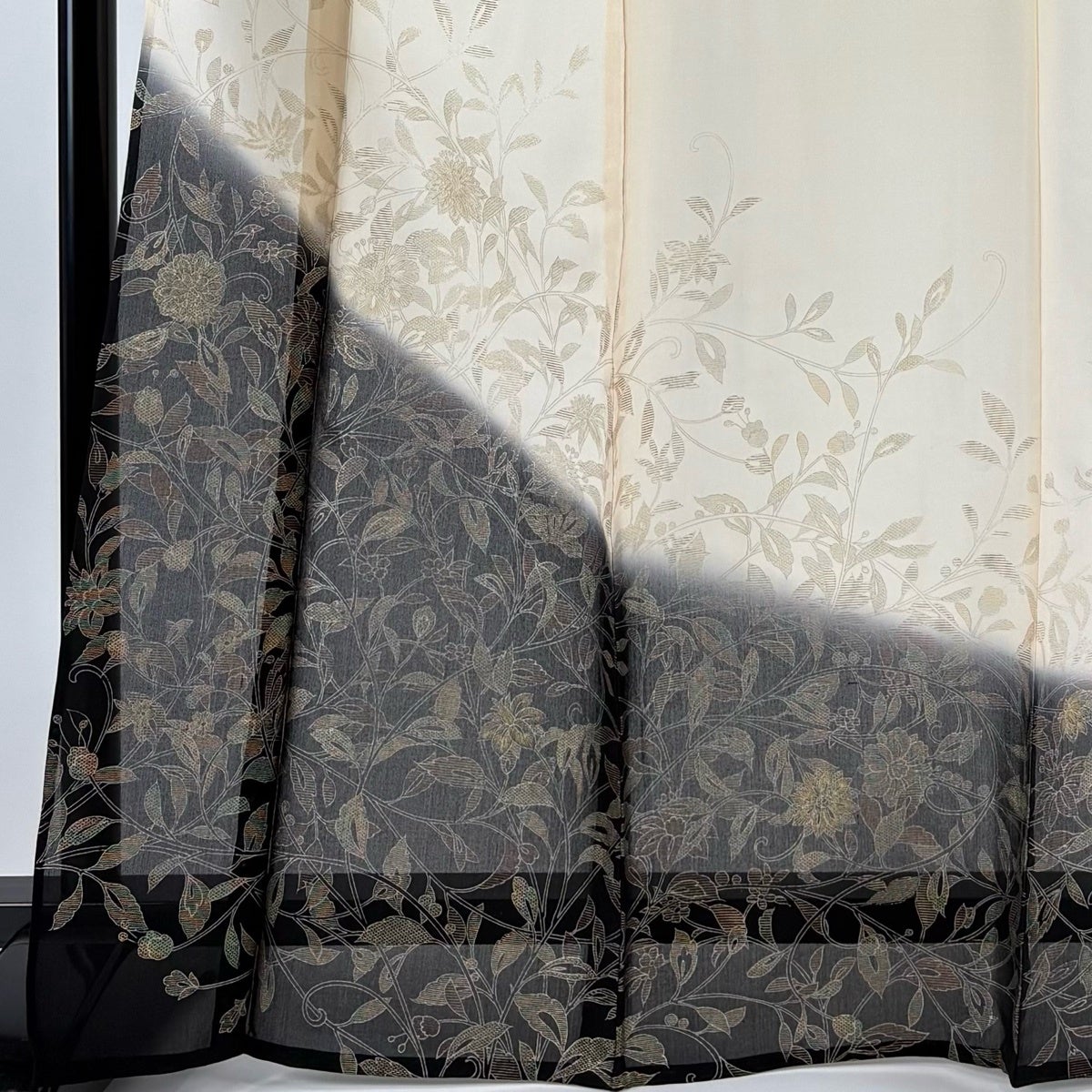 小紋 身丈169cm 裄丈69.5cm L 単衣 花唐草 華文 クリーム 正絹 秀品