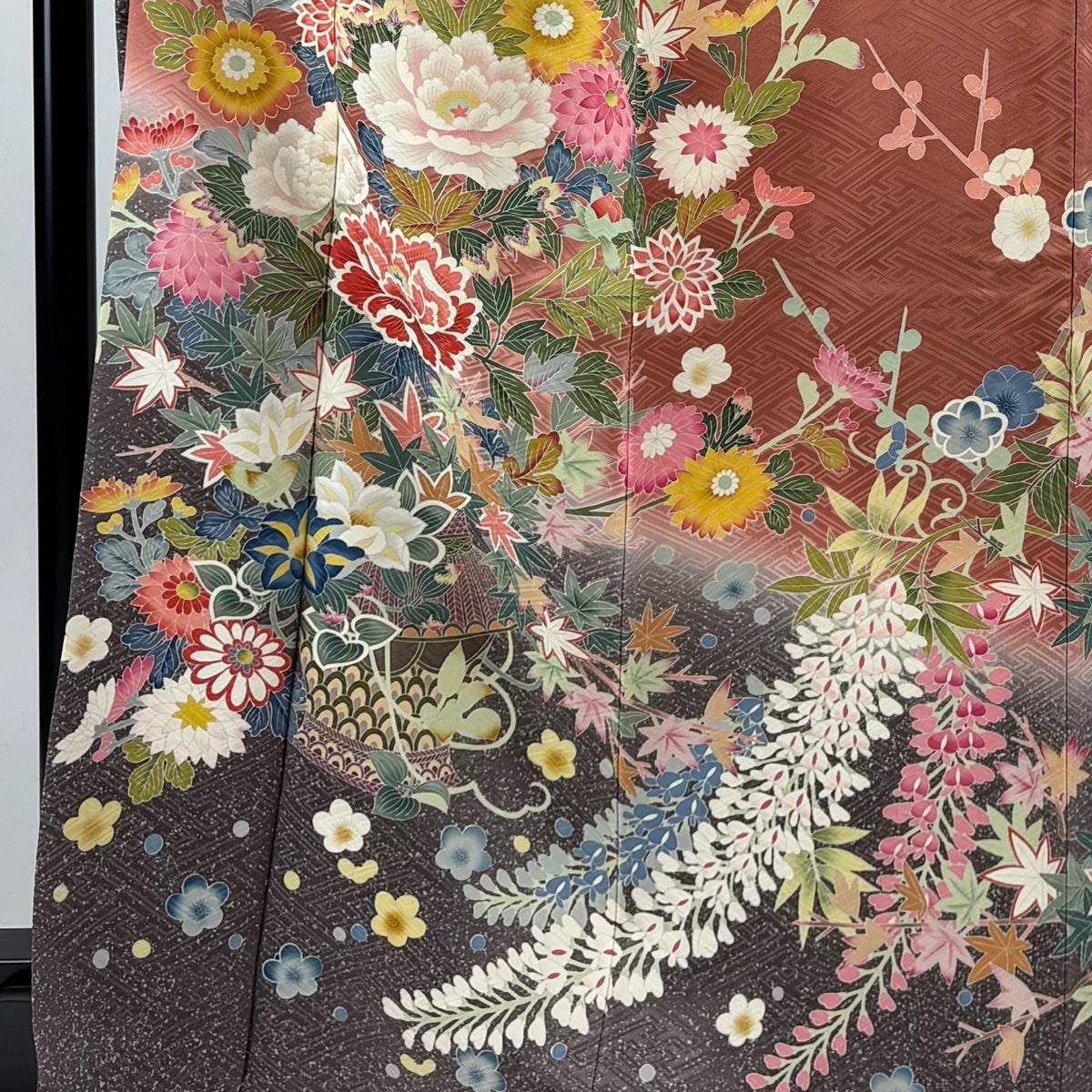 振袖 身丈161.5cm 裄丈65cm M 袷 辻が花柄 ぼかし 紫 正絹 名品