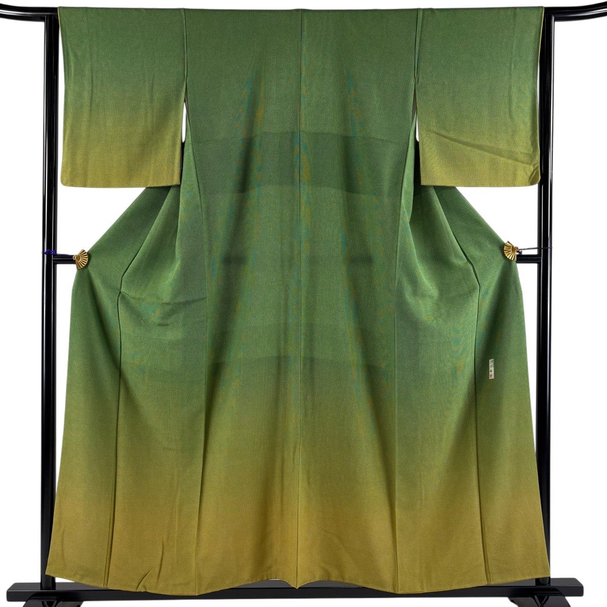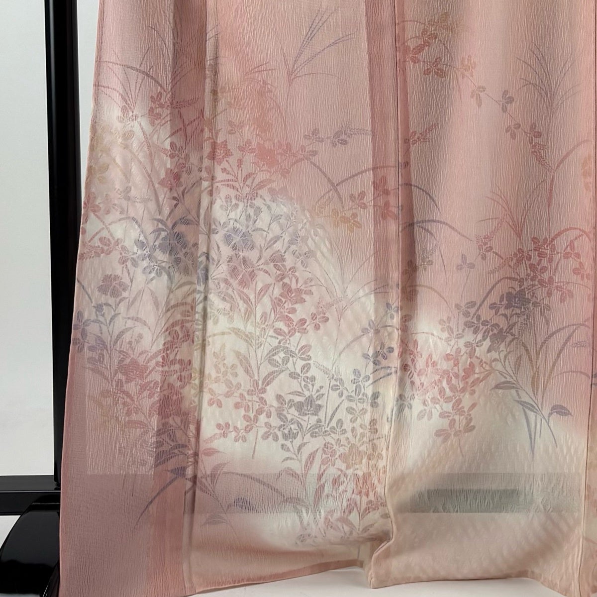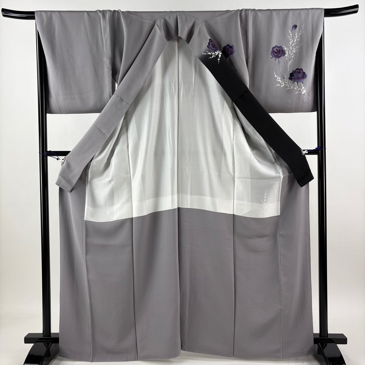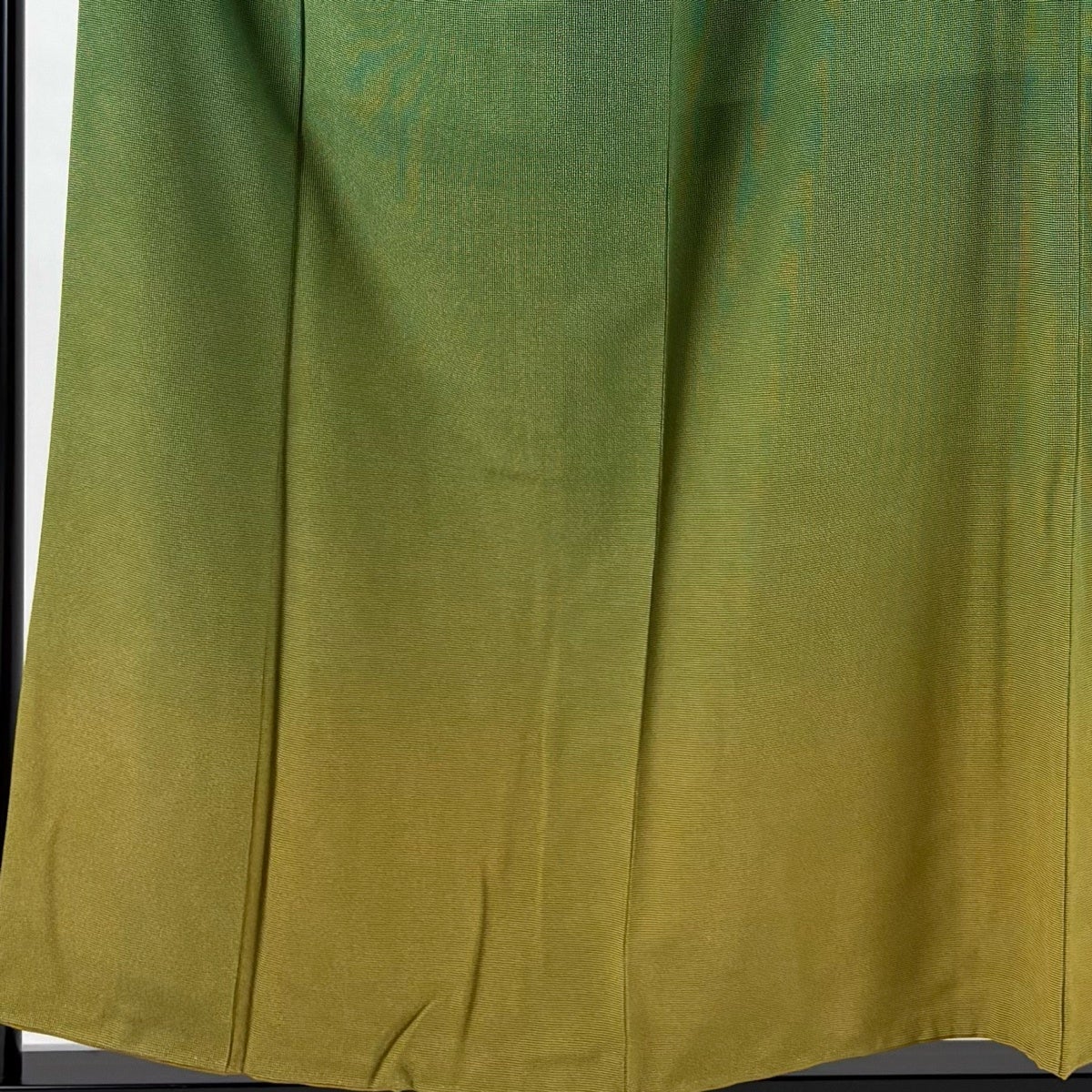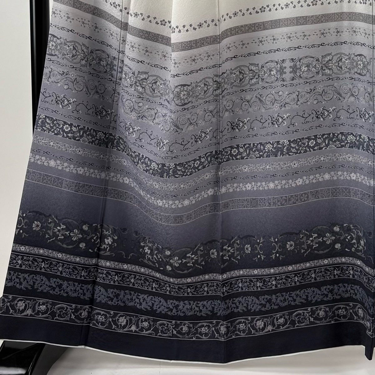 訪問着 身丈160cm 裄丈66cm M 薄物 紬地 枝葉 草花 染め分け ぼかし 墨色 正絹 秀品