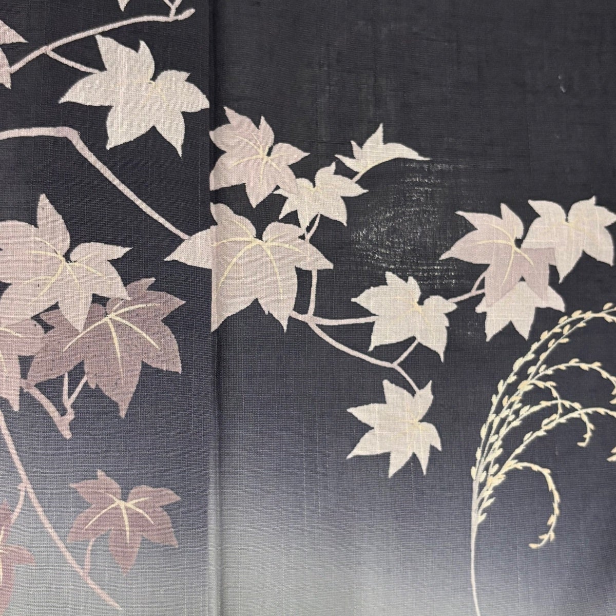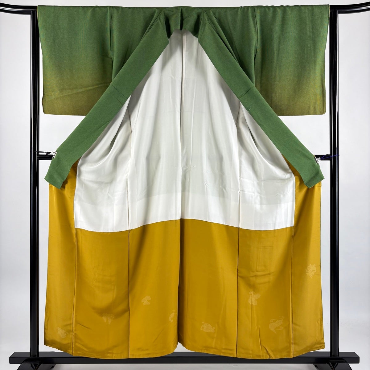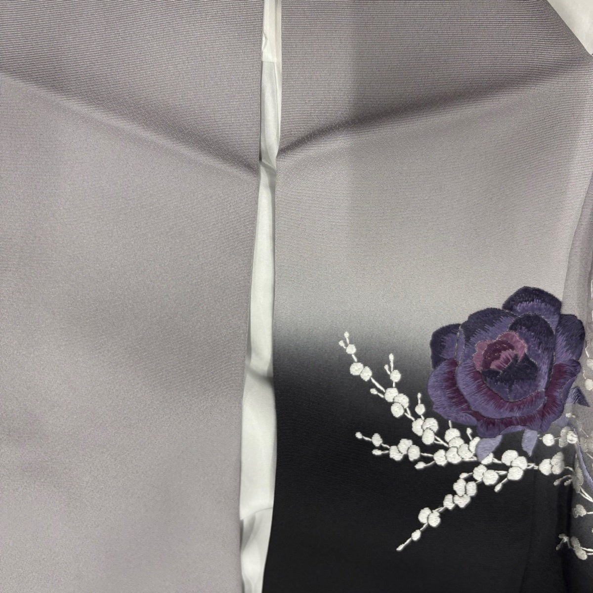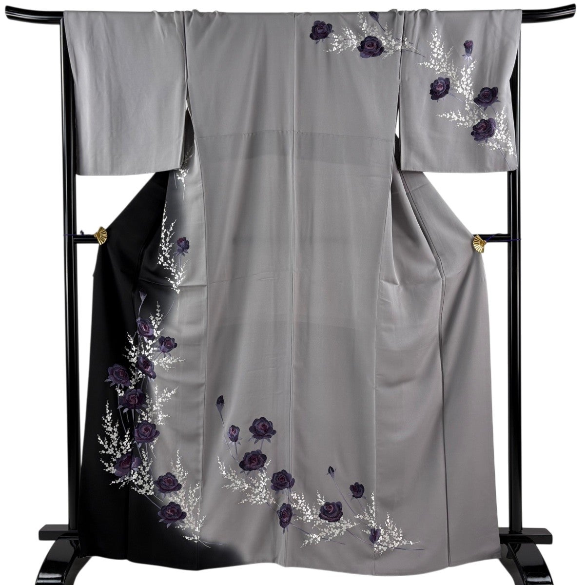 訪問着 身丈160cm 裄丈66cm M 薄物 紬地 枝葉 草花 染め分け ぼかし 墨色 正絹 秀品