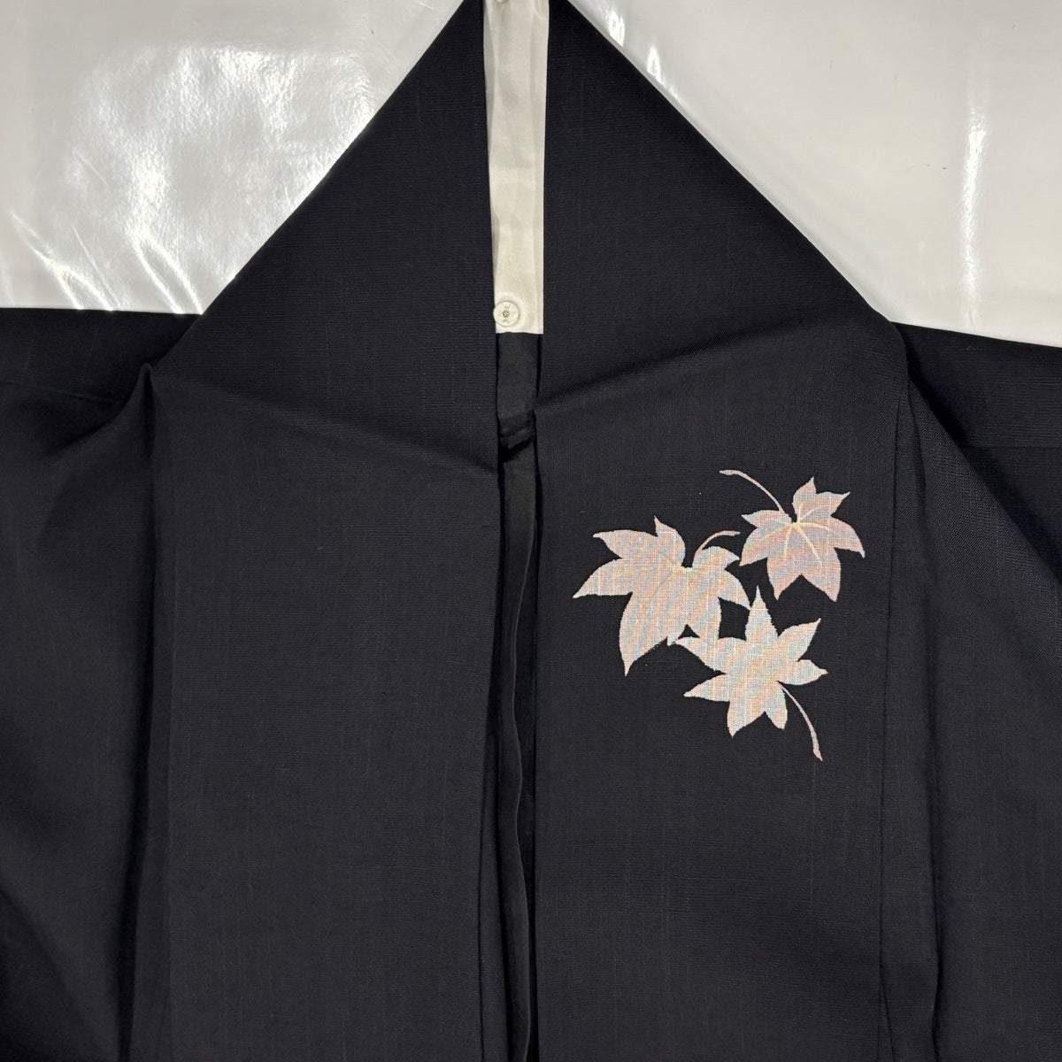 【美品】 小紋 身丈165.5cm 裄丈67.5cm L 薄物 夏紬地 洗える着物 草花 紗綾形 黒 化繊 秀品