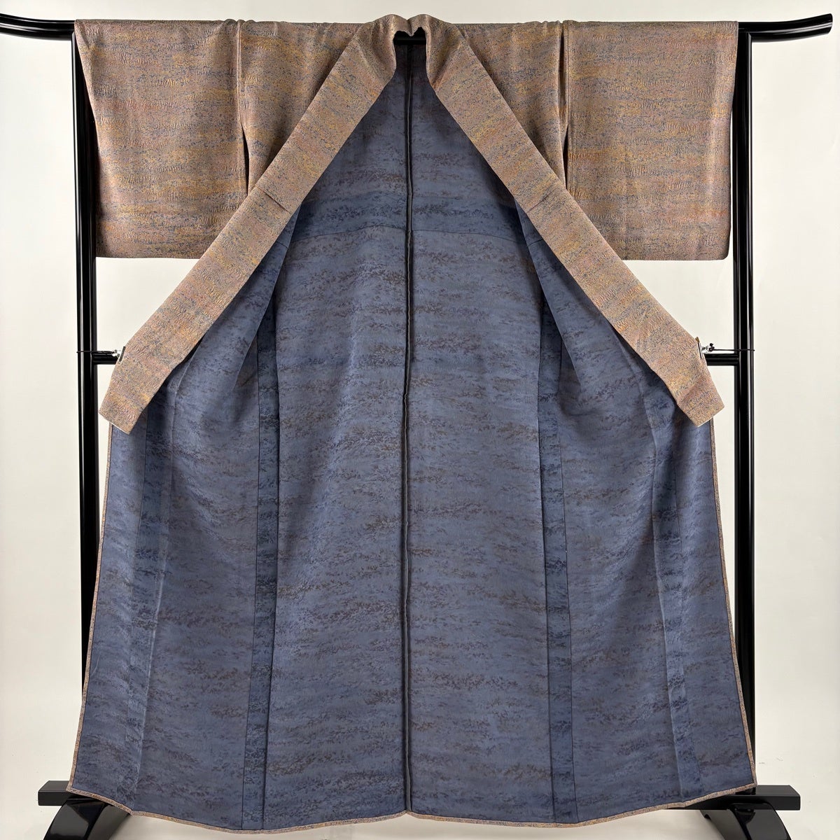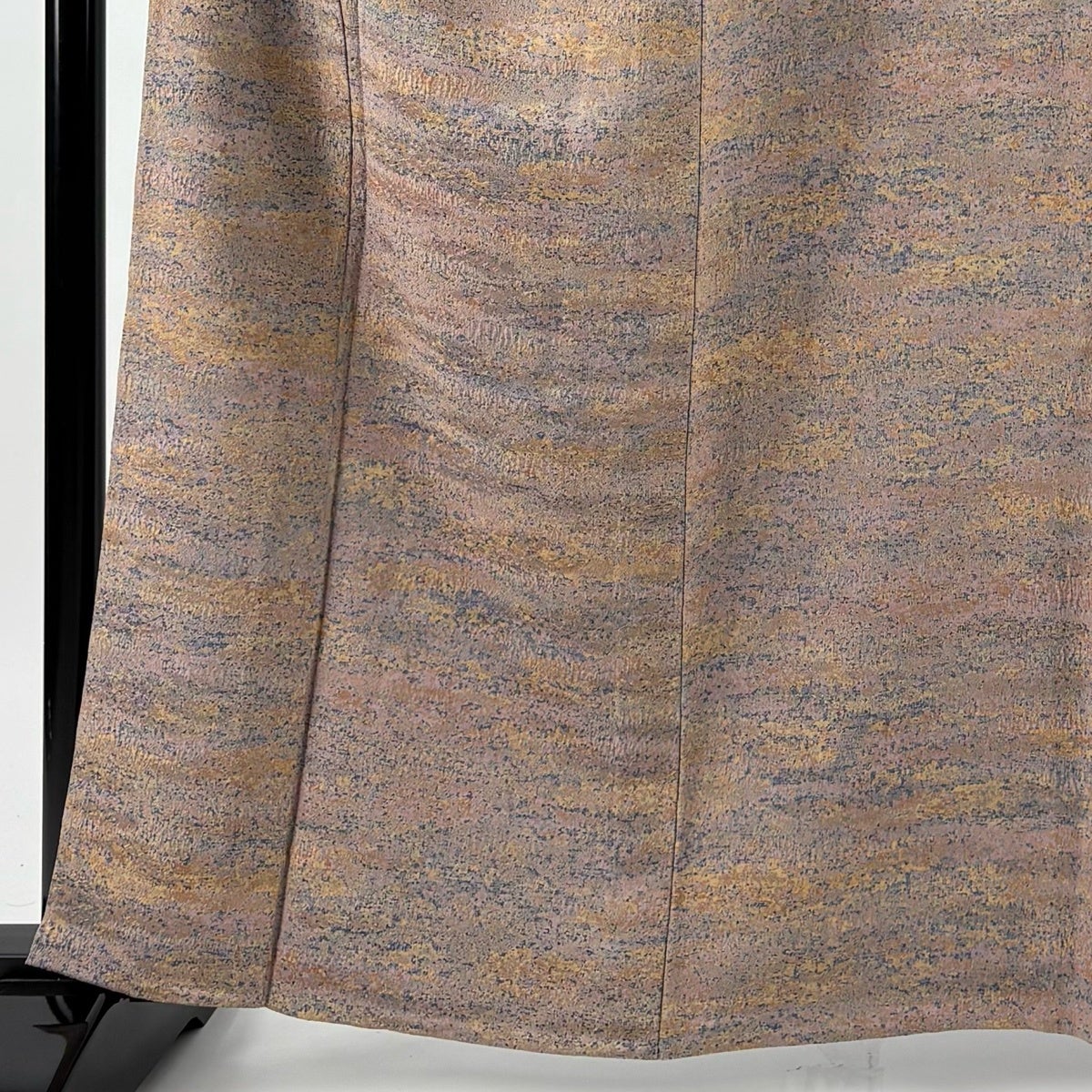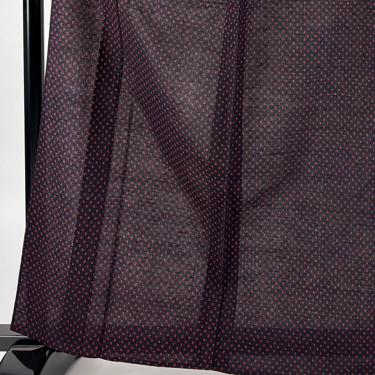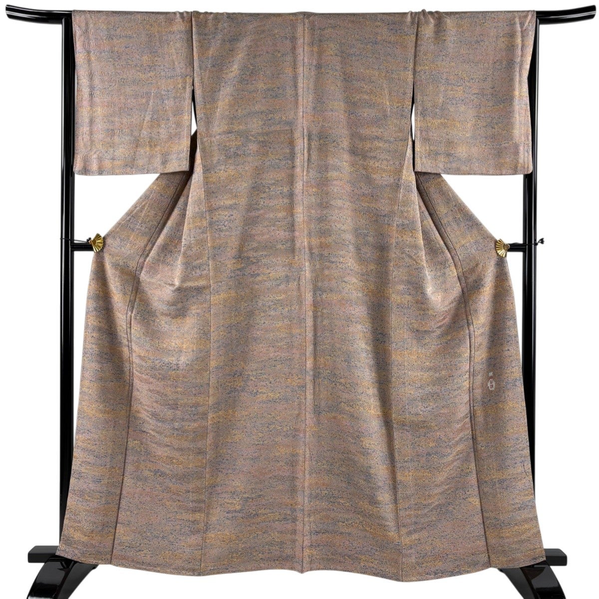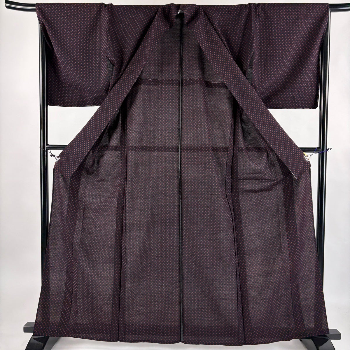 【美品】 小紋 身丈161.5cm 裄丈66cm M 単衣 霞 幾何学 陶彩染 薄小豆 正絹 秀品