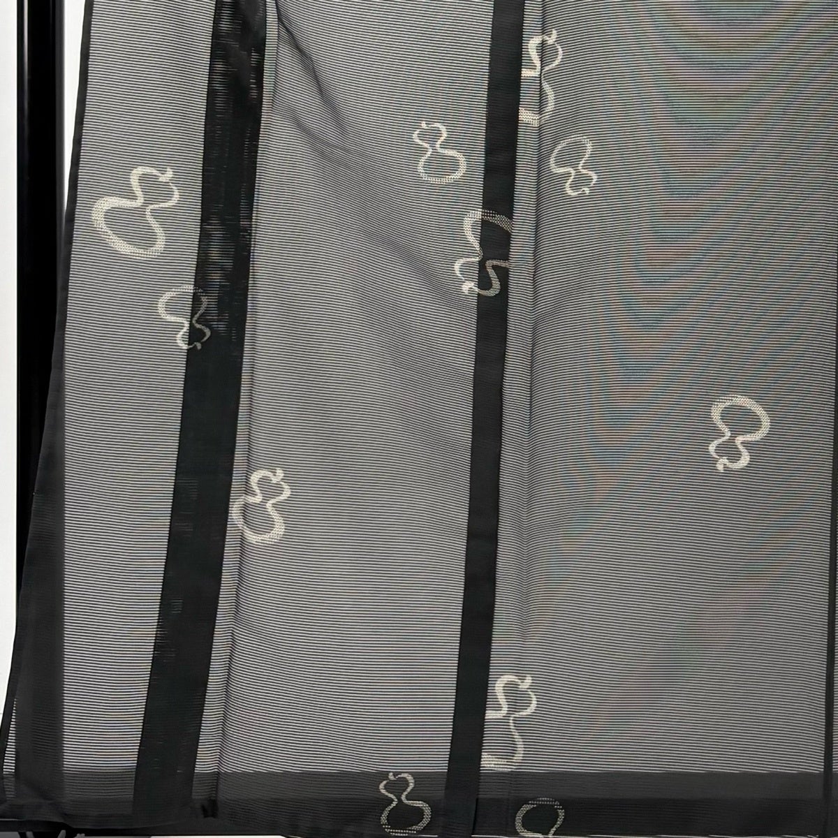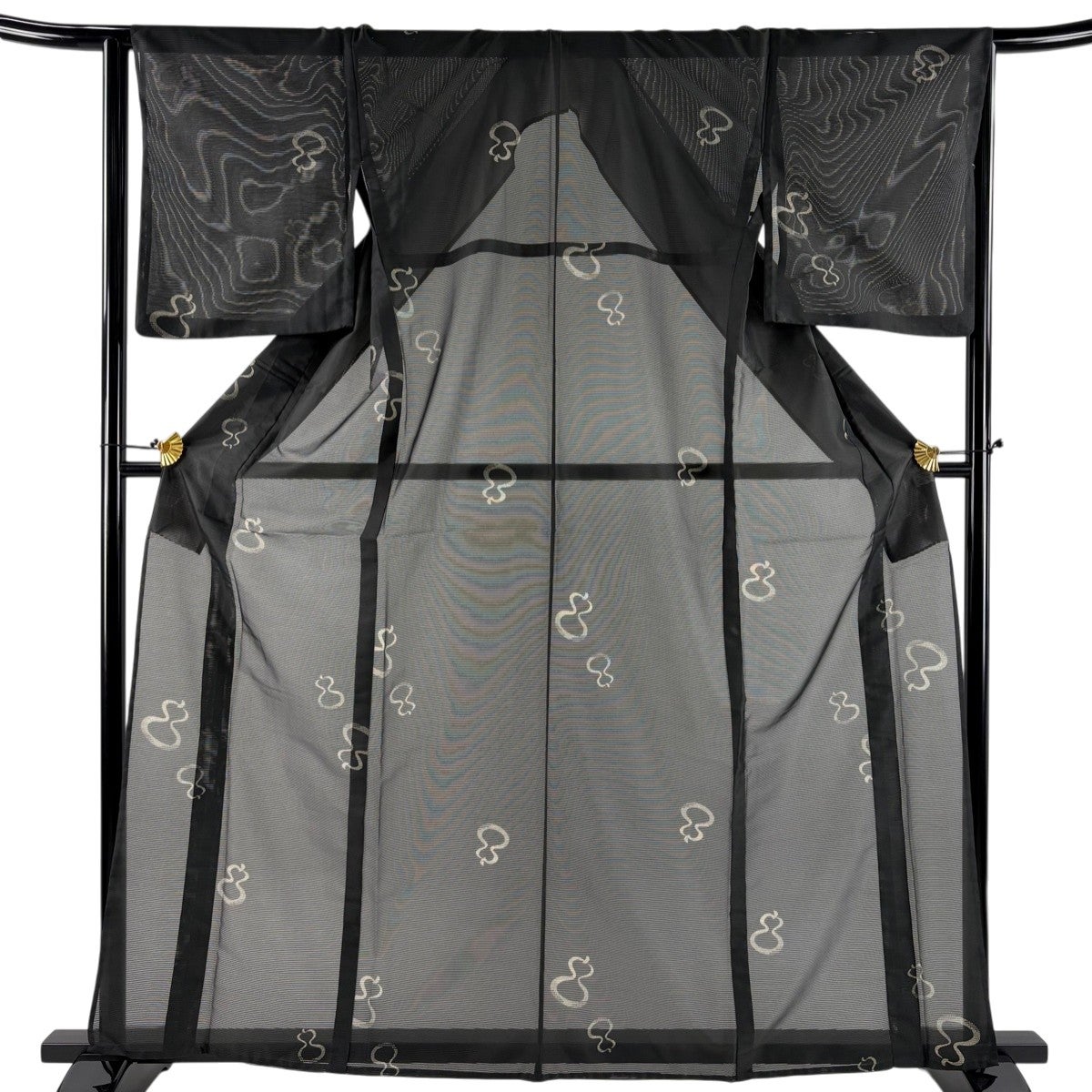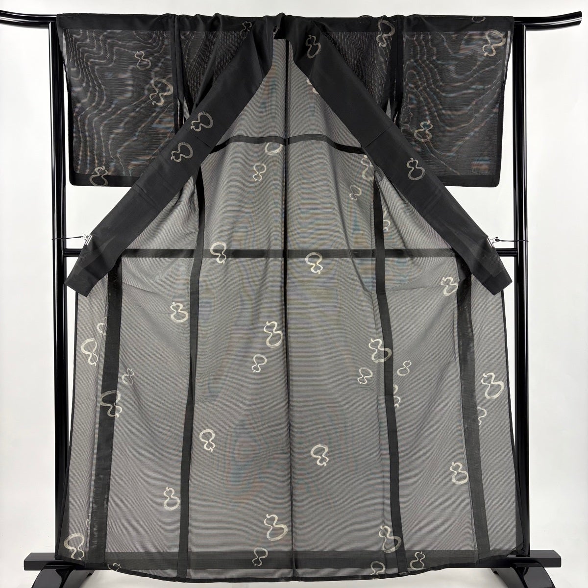 【美品】 小紋 身丈162cm 裄丈65.5cm M 薄物 絽 洗える着物 瓢箪 黒 化繊 秀品